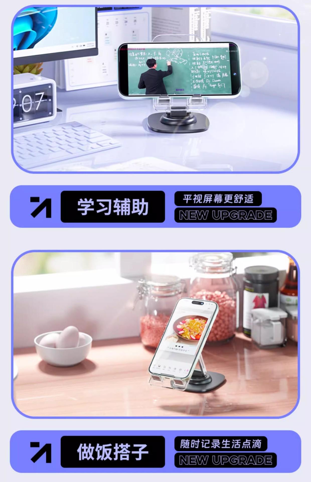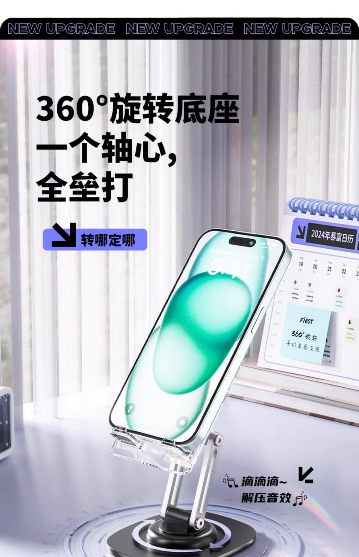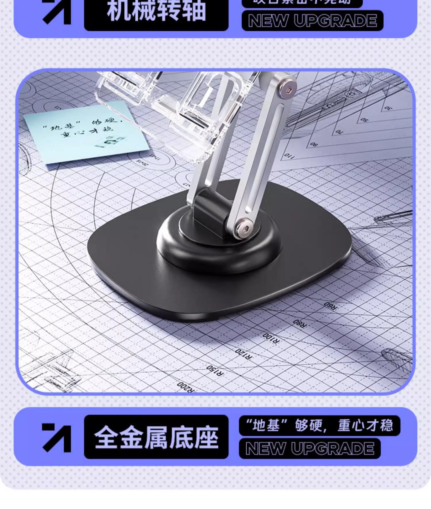 Suporte de telefone móvel giratório de 360 graus Suporte plano de mesa Acrílico Metal ponderado Preguiçoso Levantamento Portátil Drama