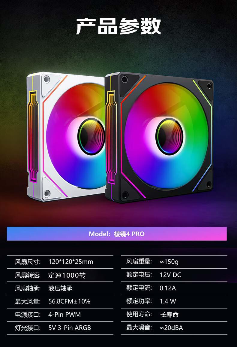 Prism 4th generation pro black reverse fan (5v three-pin interface)