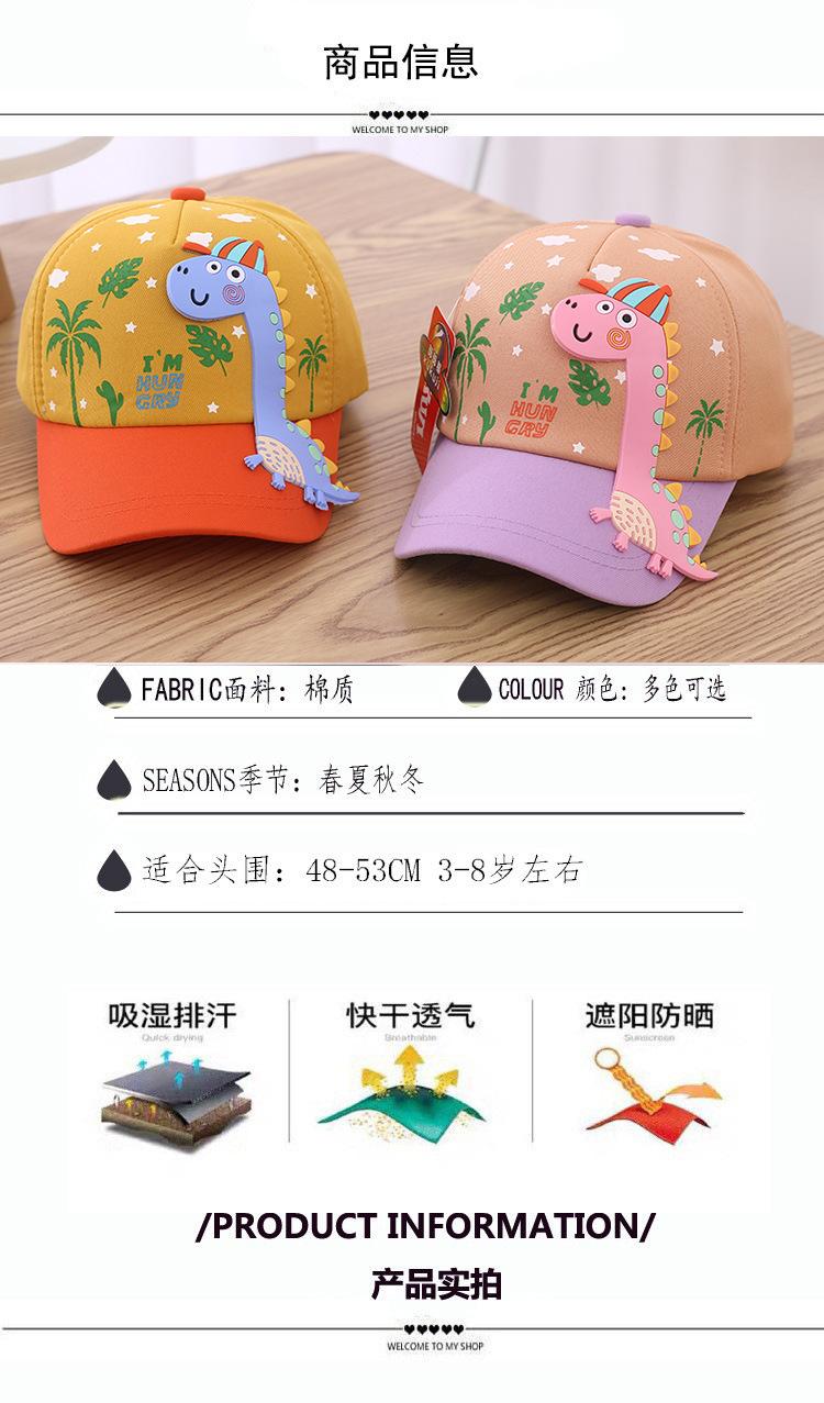 Compre Boné de beisebol dos desenhos animados tridimensional pequeno dinossauro chapéu infantil 3-10 anos de idade menino hip-hop cap menina cap verão guarda-sol no atacado no Joom.pro