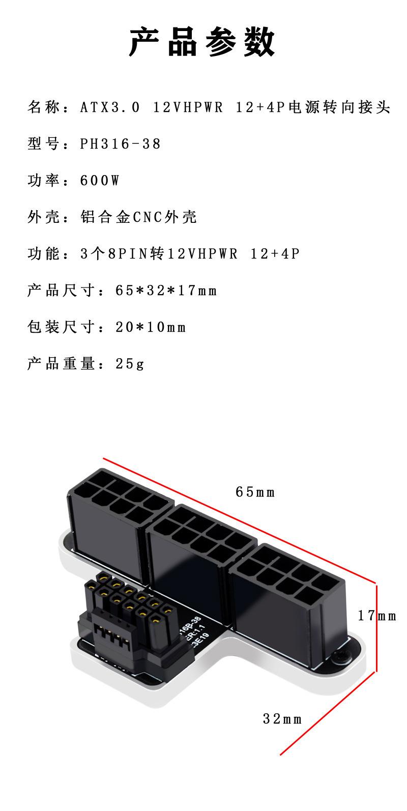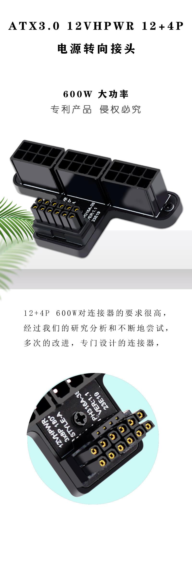 3x8P a 40 série placa gráfica ATX3.0 12VHPWR 12 + 4p 180 graus conector de direção hidráulica 600W