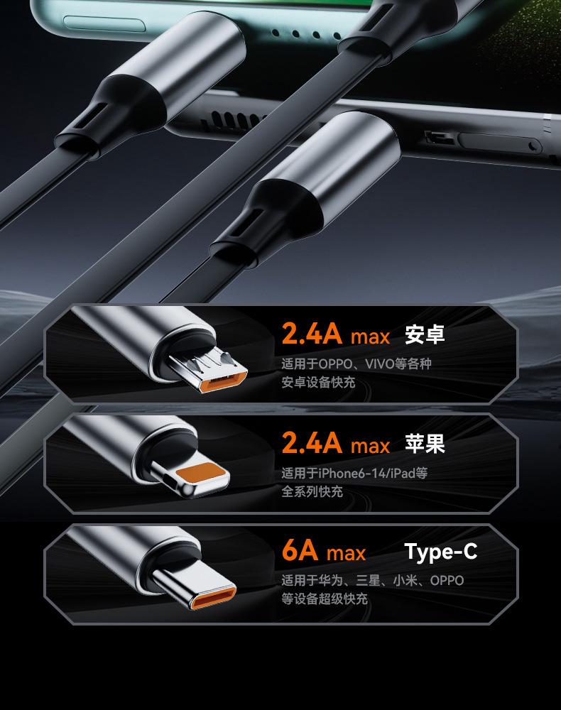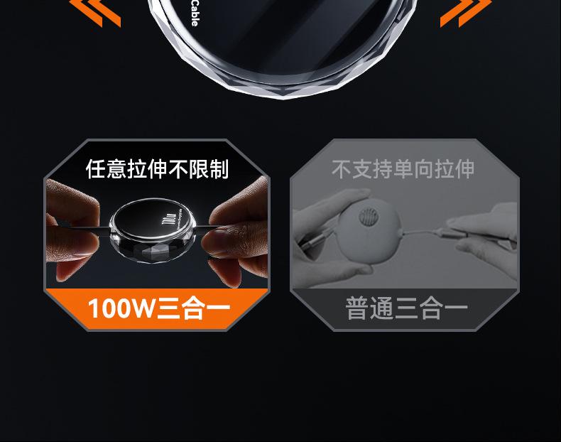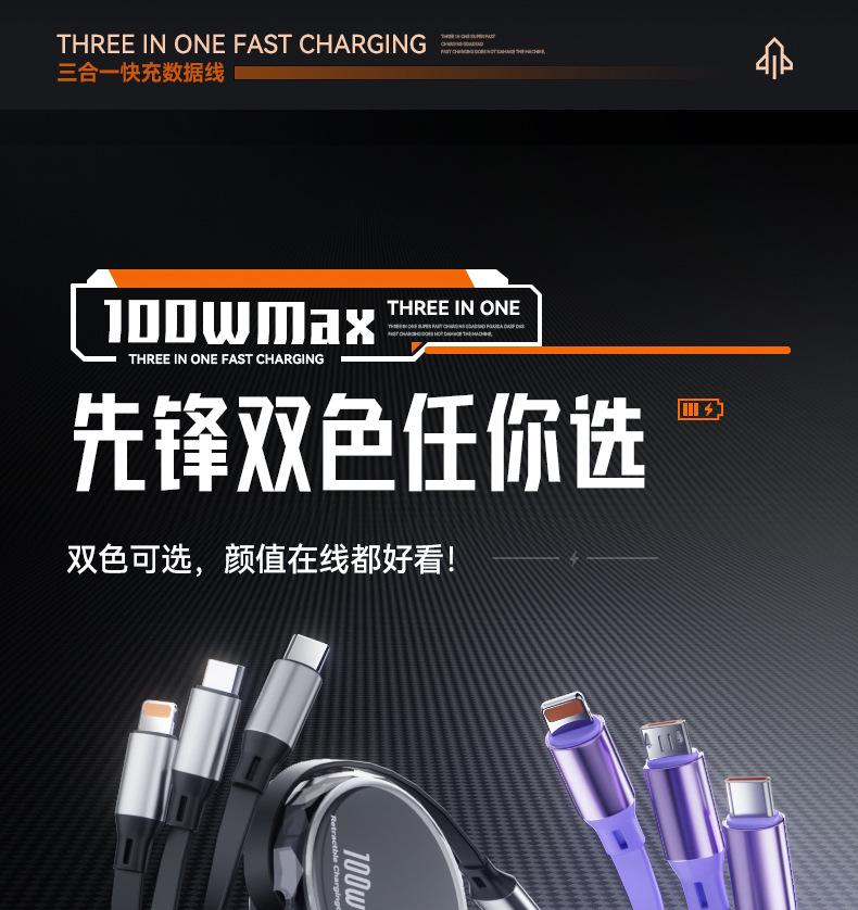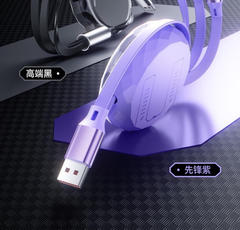Cool black [100w super fast charge] telescopic three-in-one, Lavender purple [100w super fast charge] telescopic three-in-one