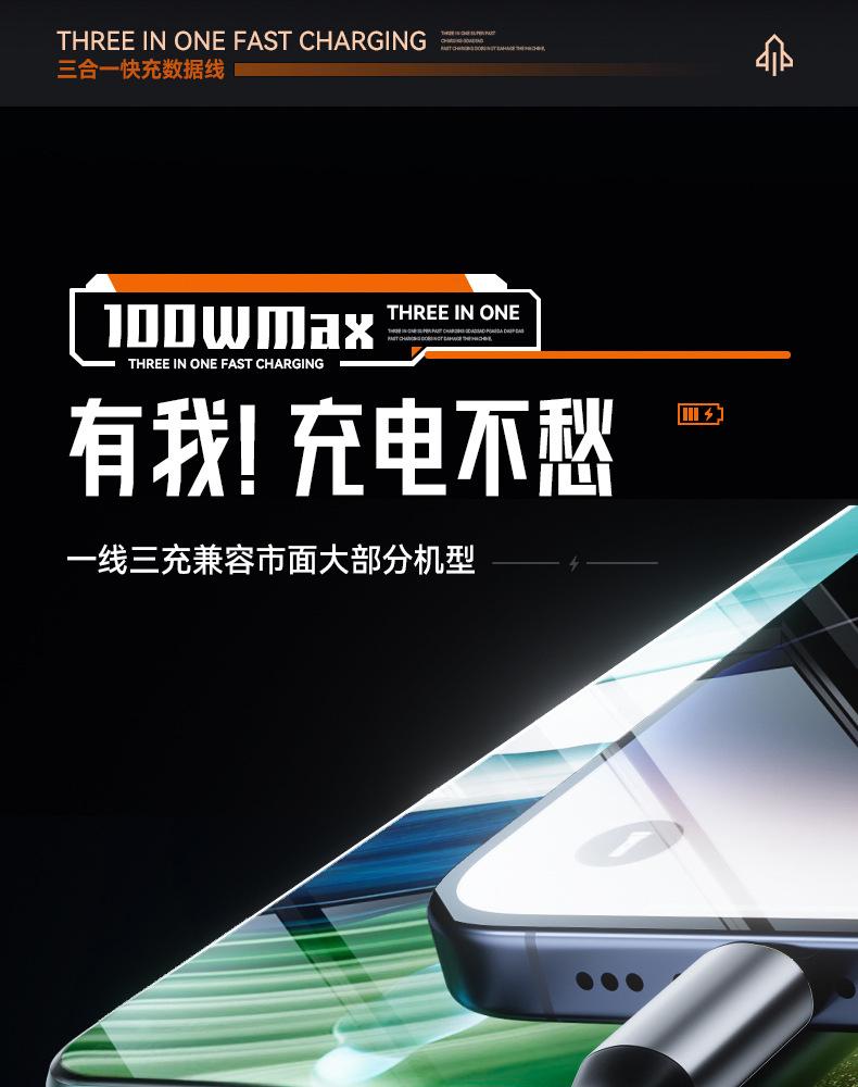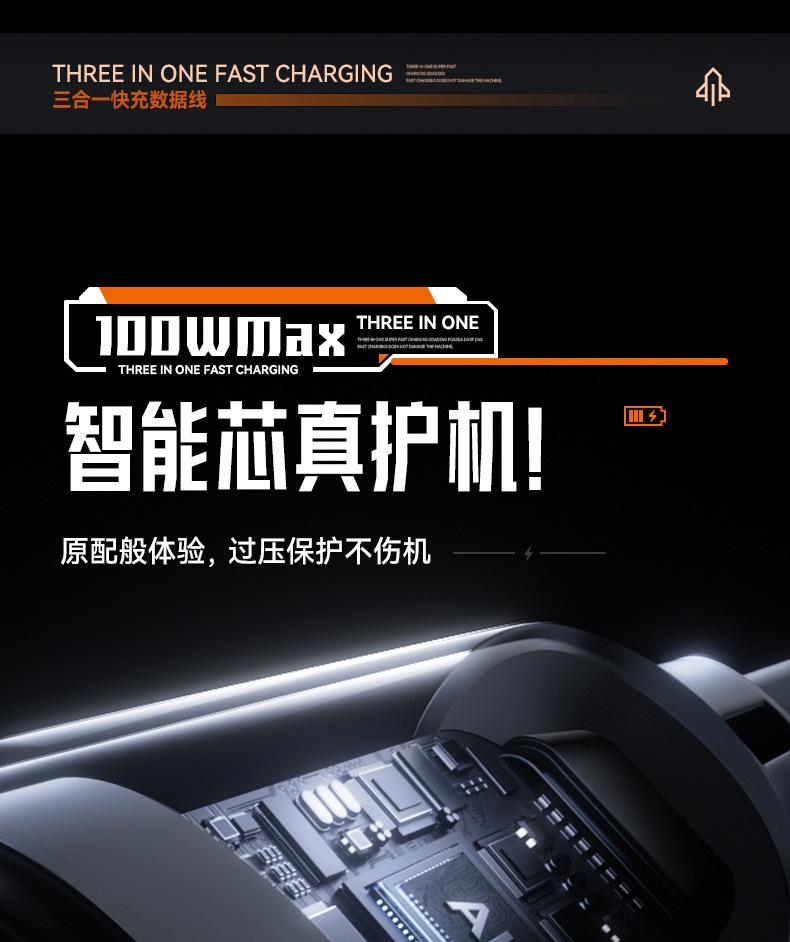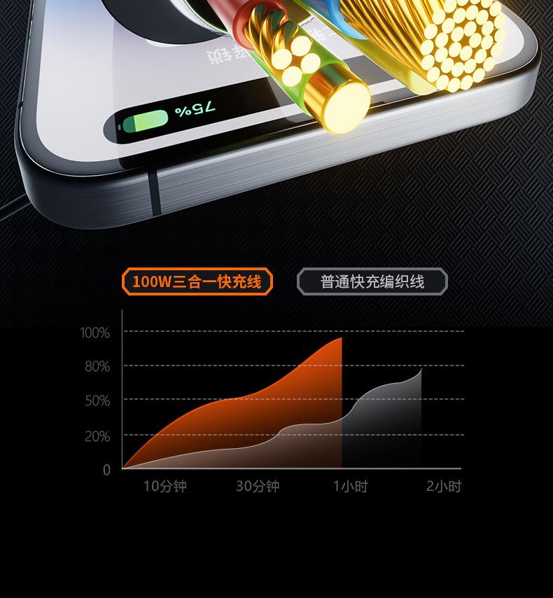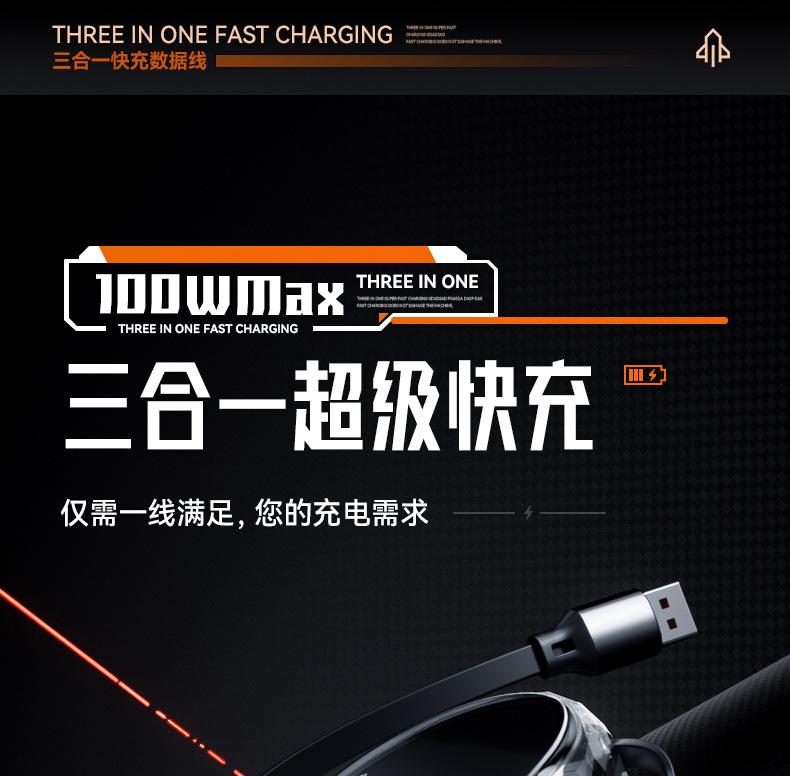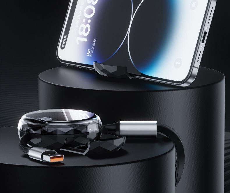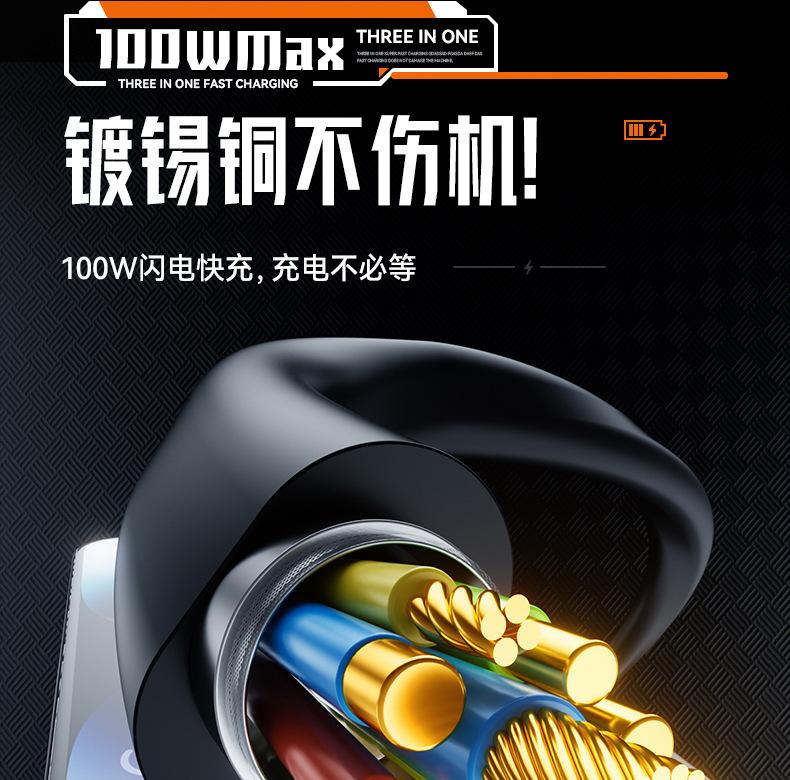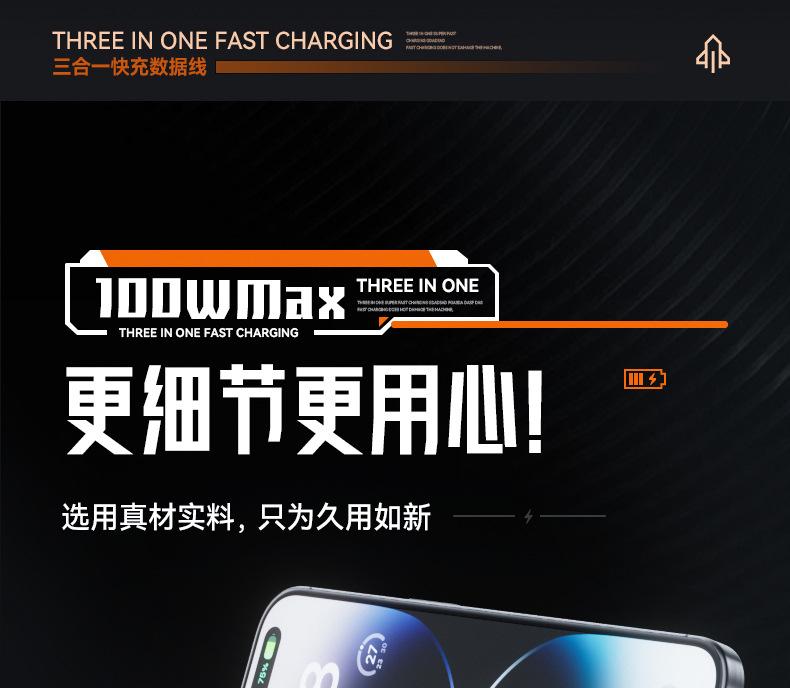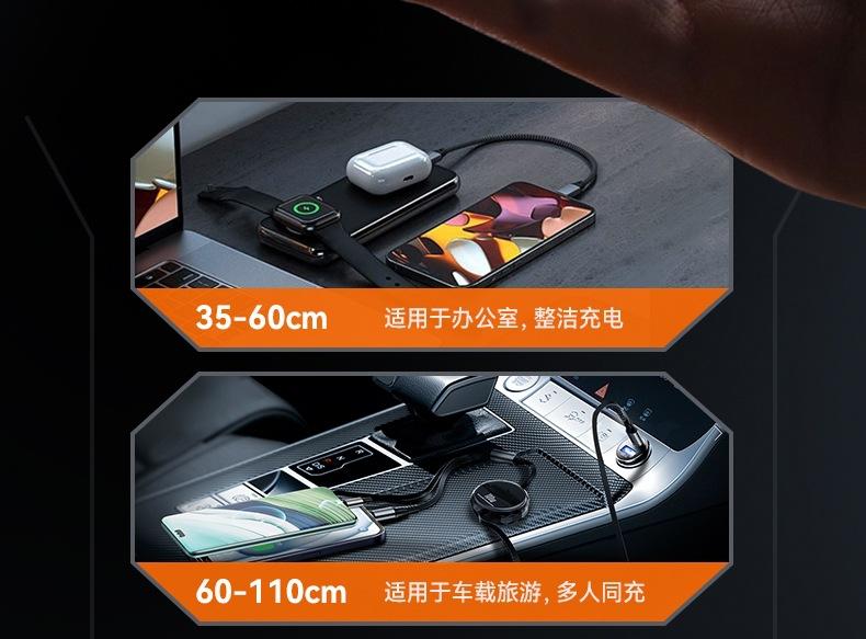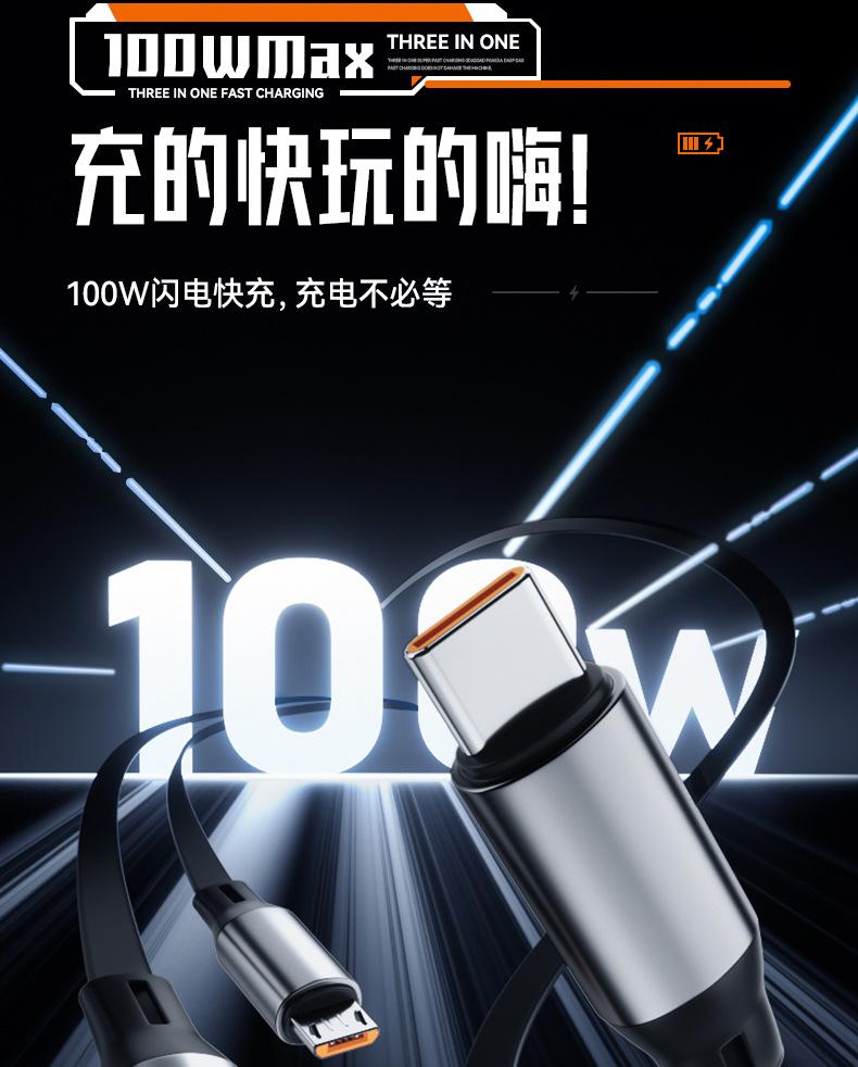 Cabo de dados telescópico de 100 W três em um cabo de carregamento rápido de um a três três cabeças para Apple Huawei Android carro