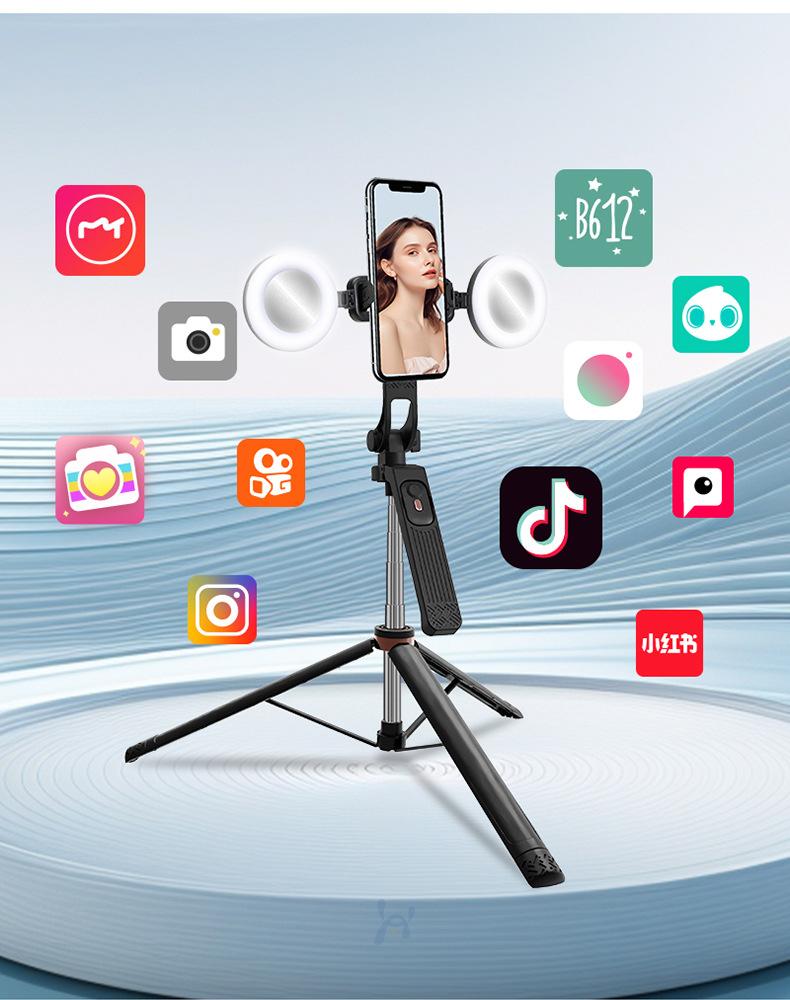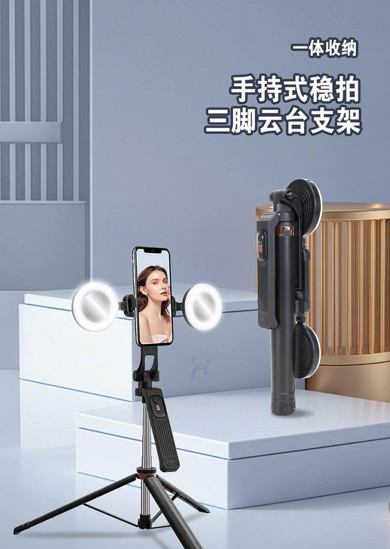 Pau de Selfie de Quatro Eixos com Rotação de 360 Graus para Fotografia, Gravação de Vlogs, Transmissão ao Vivo Móvel, Tripé, Anti-Shake, Luz de Preenchimento, Gravação Vertical