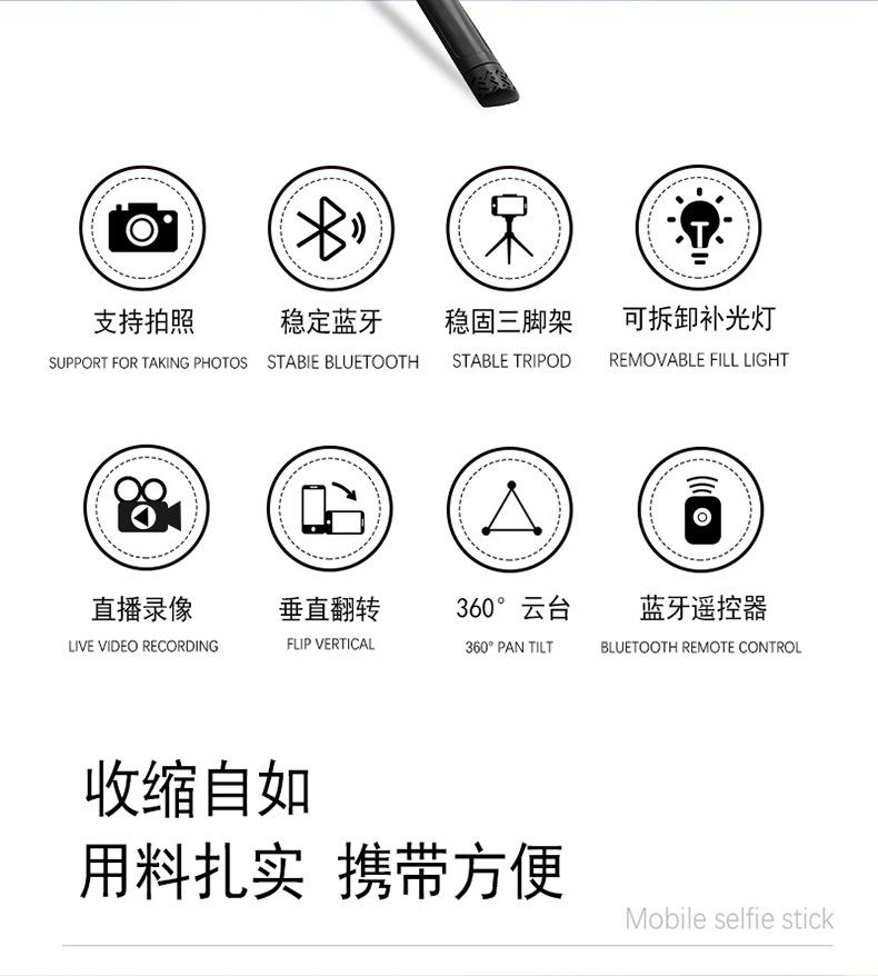 Swing arm selfie stick-[without light] douyin remote control anti-shake model, Swing arm selfie stick-[with si...