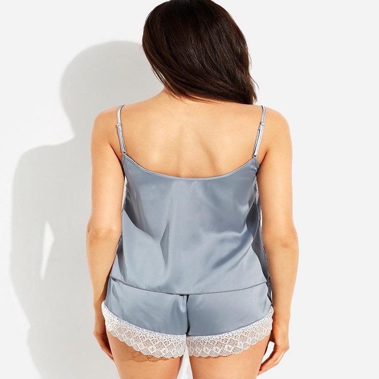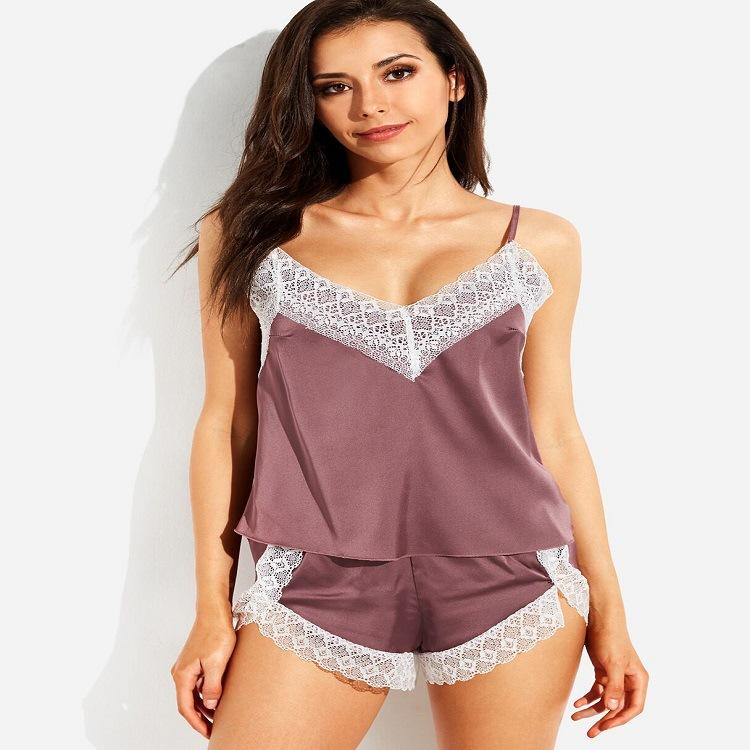 AliExpress Sexy Ice Silk Suspender Pijamas com Peito Pads Renda Shorts Pijamas Camisola Conjunto Roupas Femininas Para Casa