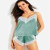 Suspensórios de verão pijamas sensuais de seda fina com almofadas no peito, shorts de renda, pijamas, camisolas, roupas femininas para casa