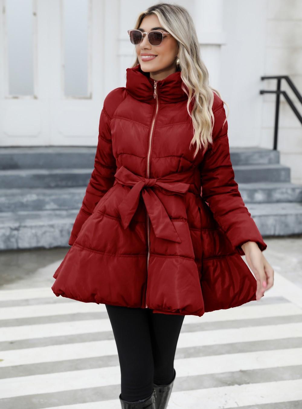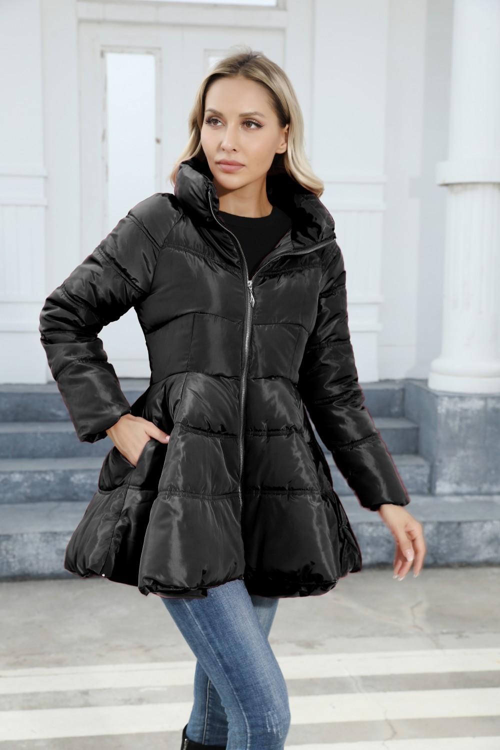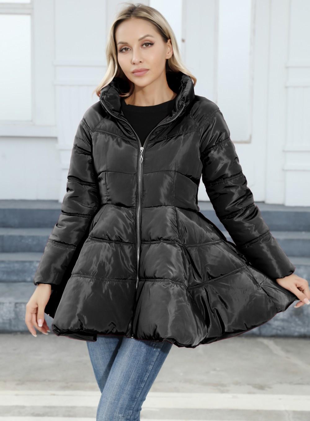 Design de casaco popular feminino saia jaqueta acolchoada de algodão médio e longo gola alta jaqueta espessada para exportação europeia