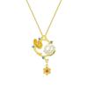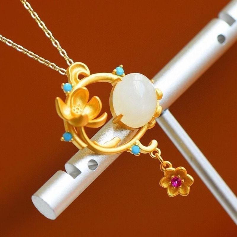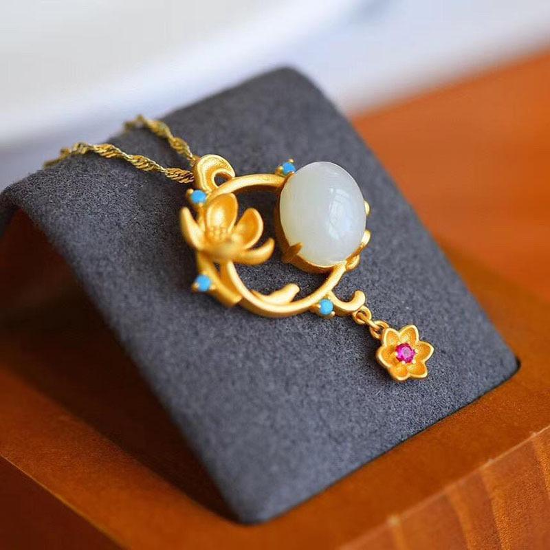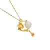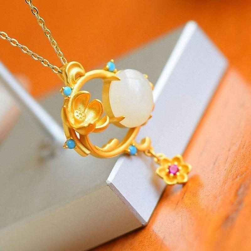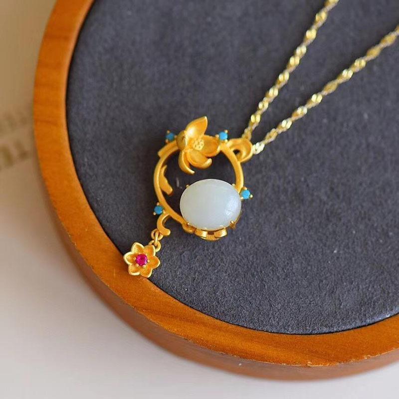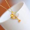 Pingente doce fresco requintado incrustado Hetian jade branco banhado a ouro colar elegante corrente de clavícula geométrica temperamento feminino