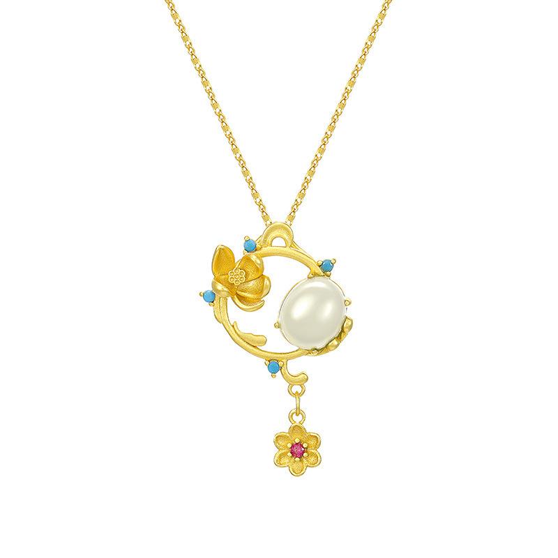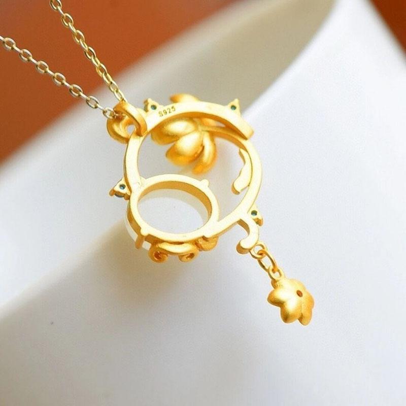 Compre Pingente doce fresco requintado incrustado Hetian jade branco banhado a ouro colar elegante corrente de clavícula geométrica temperamento feminino no atacado no Joom.pro