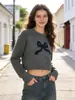 Suéter de Tricô Redondo Color Block com Laço Outono/Inverno Transfronteiriço Novo Solto Versátil Suéter Curto Camisa Base para Mulheres
