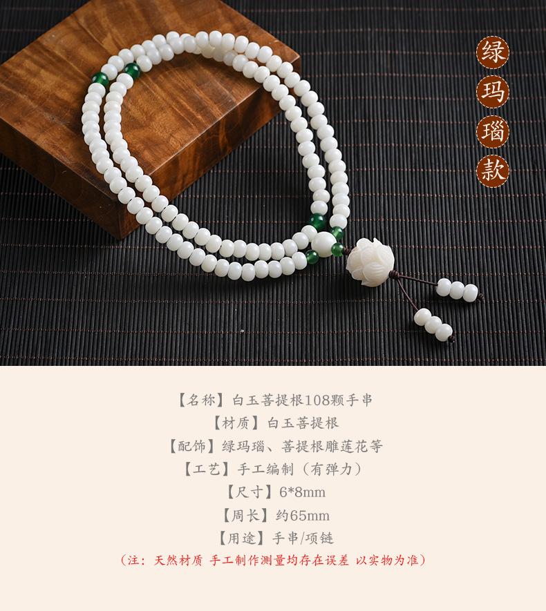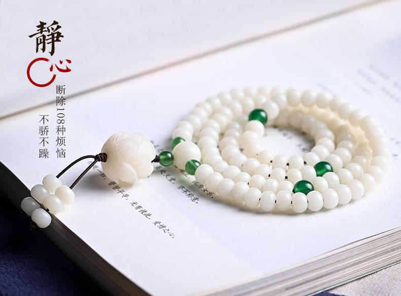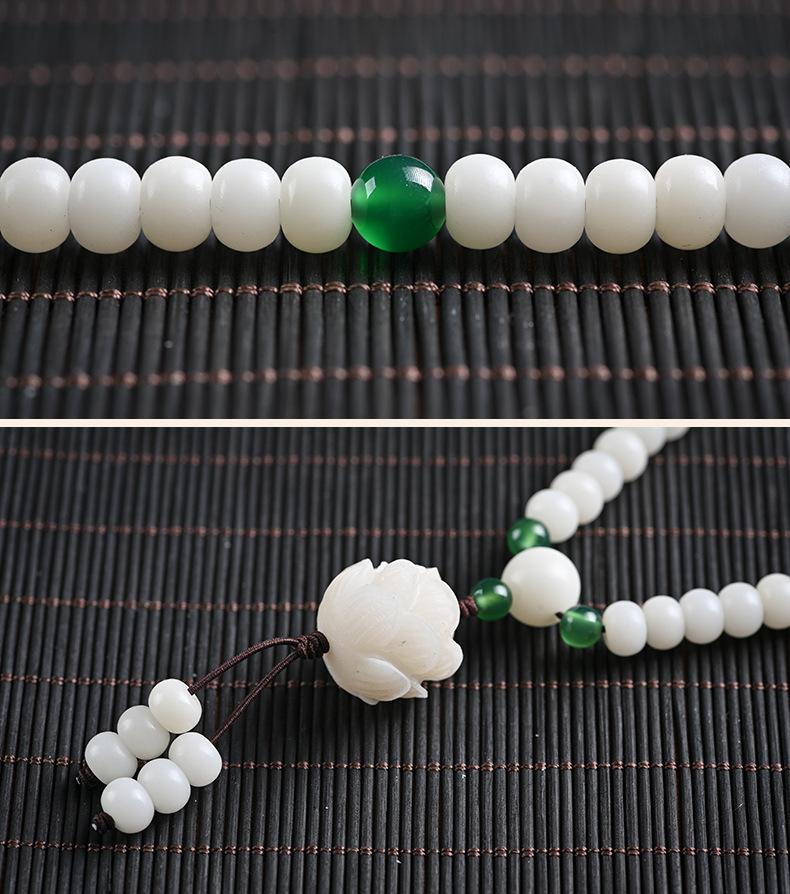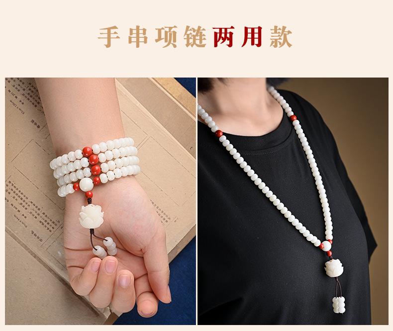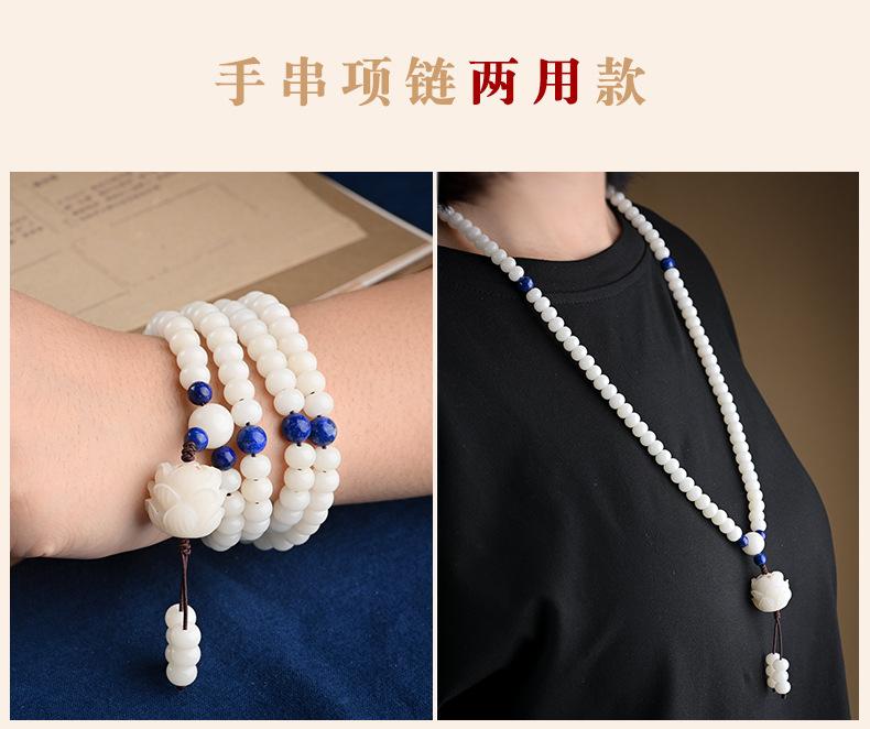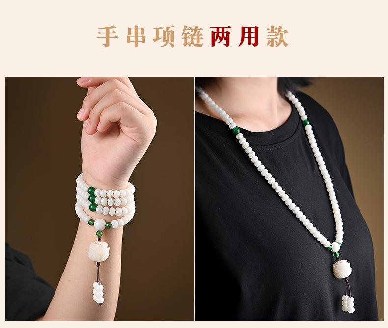 Raiz de bodhi de jade branco 6*8mm 108 contas pulseira colar de dupla finalidade estilo literário retrô combina com tudo