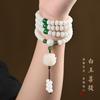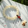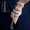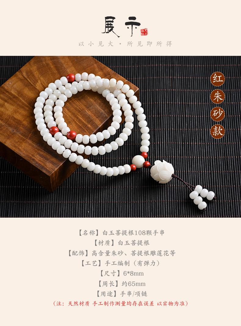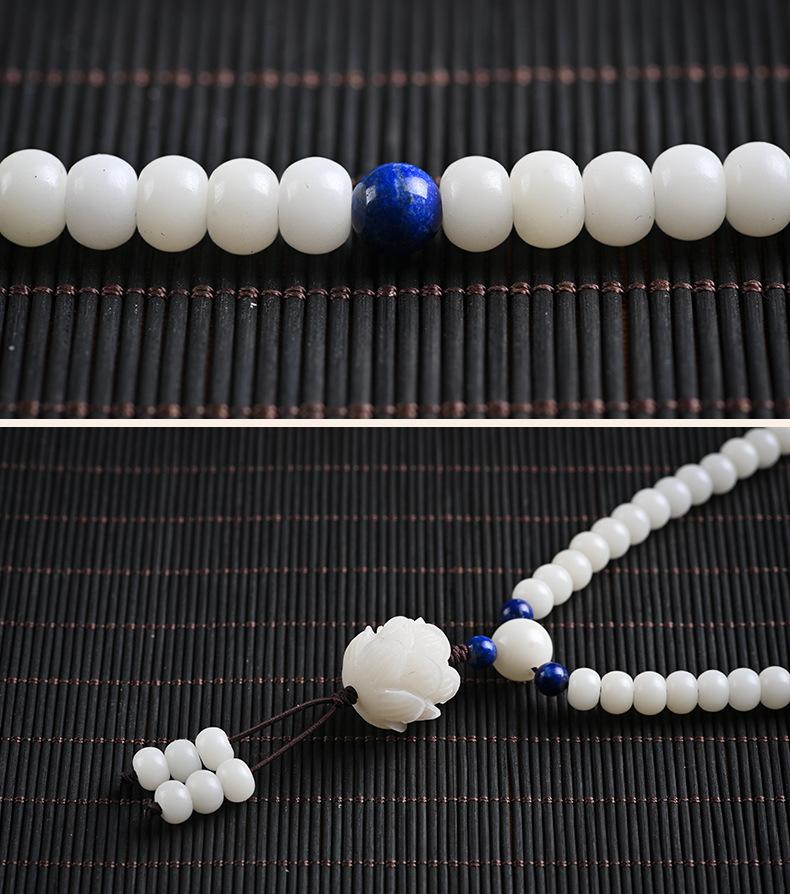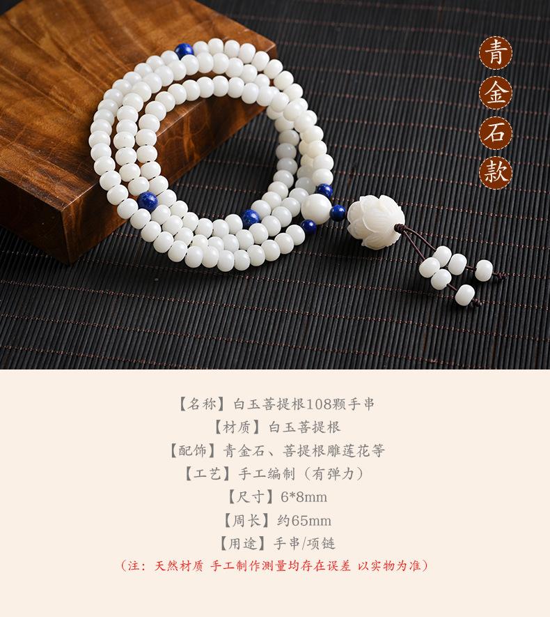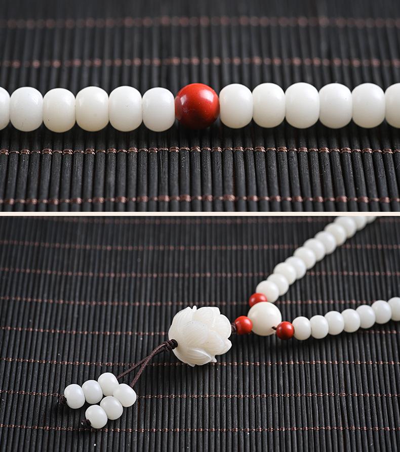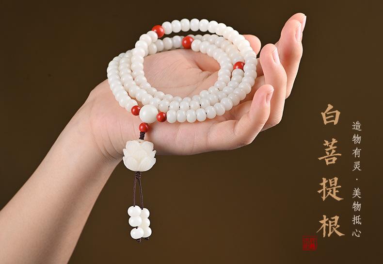 Raiz de bodhi de jade branco 6*8mm 108 contas pulseira colar de dupla finalidade estilo literário retrô combina com tudo