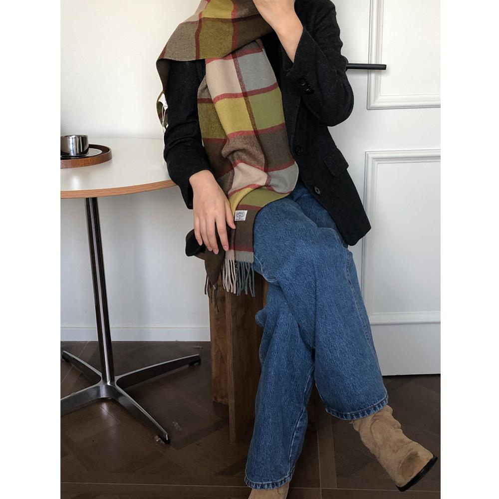 2024 outono e inverno novo lenço xadrez 100% lã estilo chique temperamento unissex britânico presente quente dando