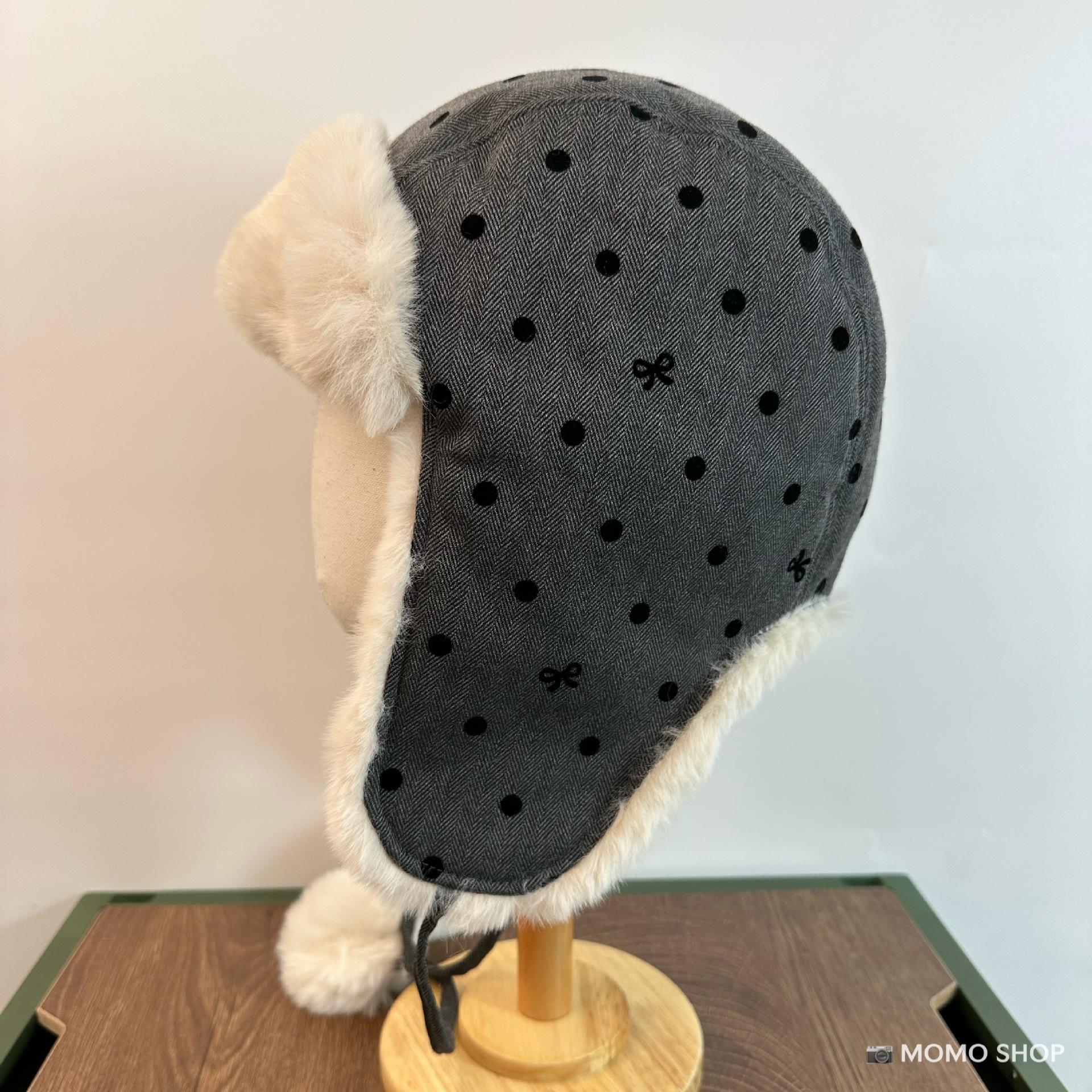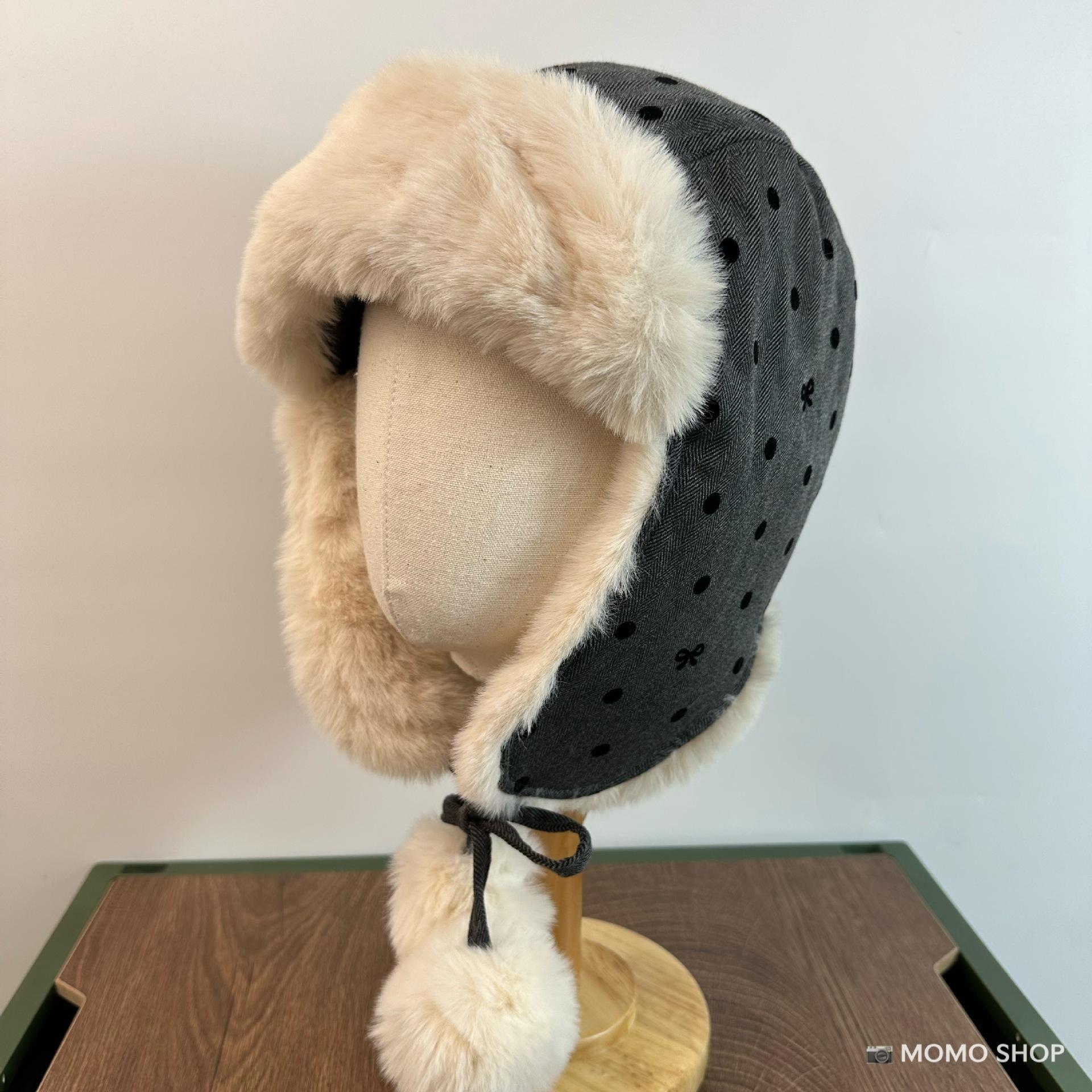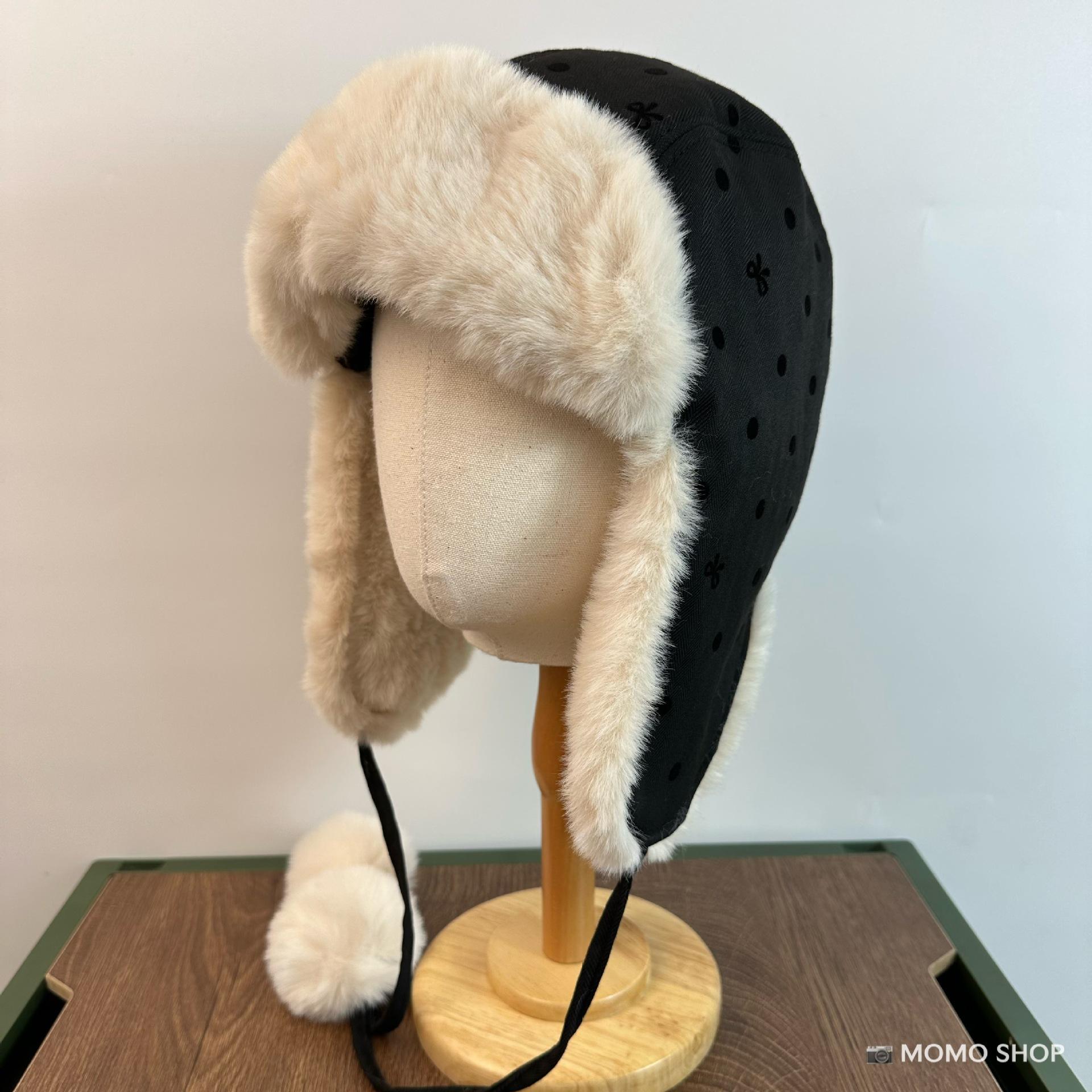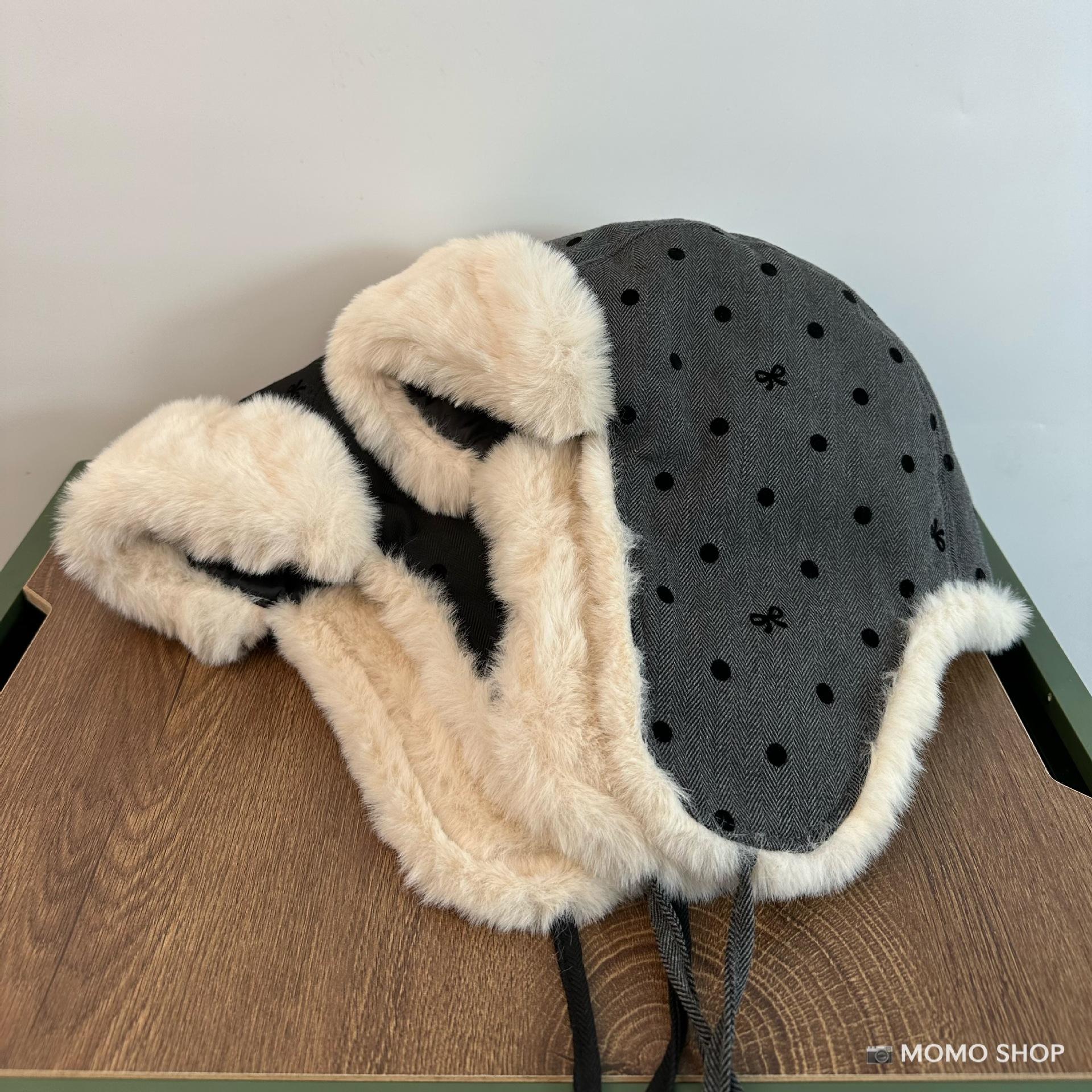Bonito chapéu de lã com laço de polo e bola de pelo Lei Feng para crianças, protetores de ouvido de inverno, chapéu de esqui espesso e à prova de frio