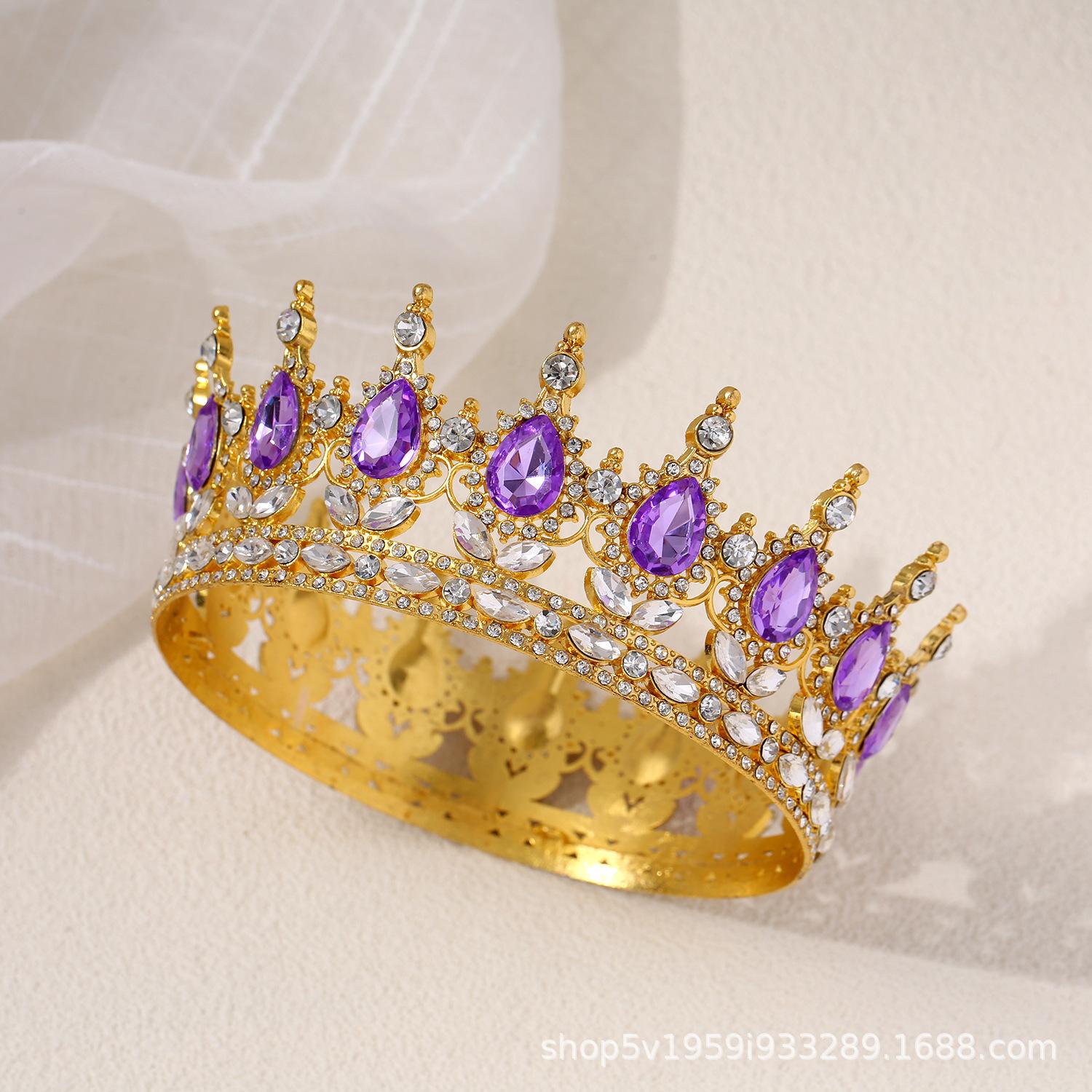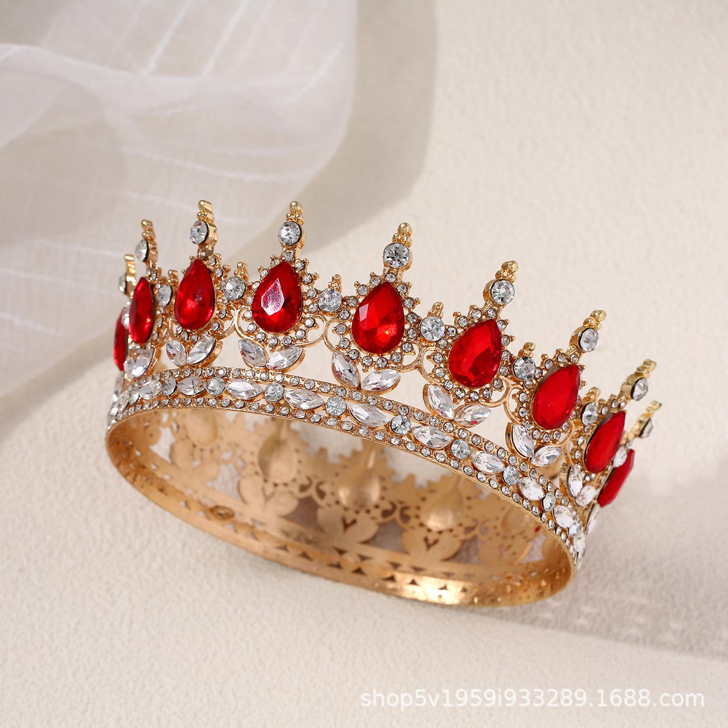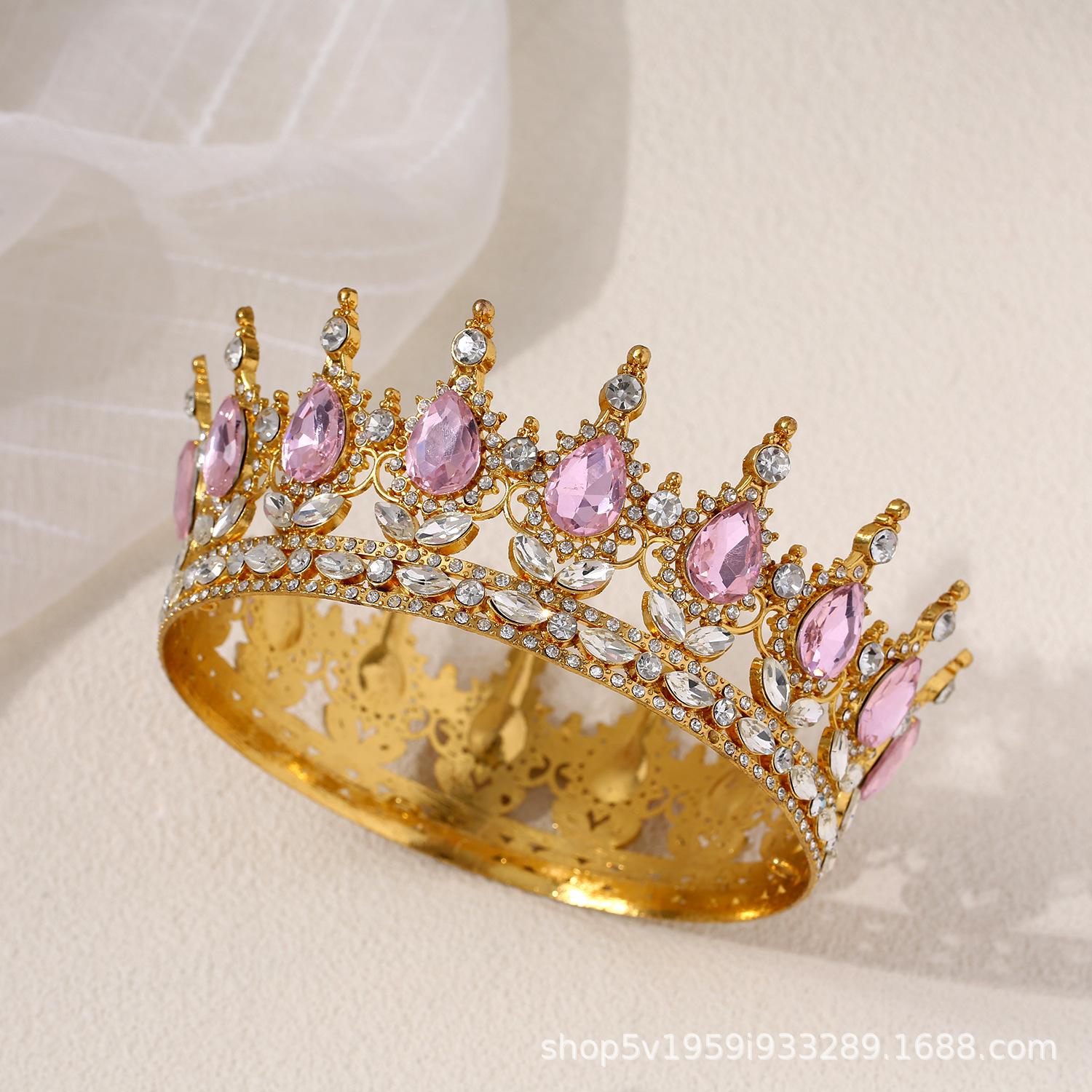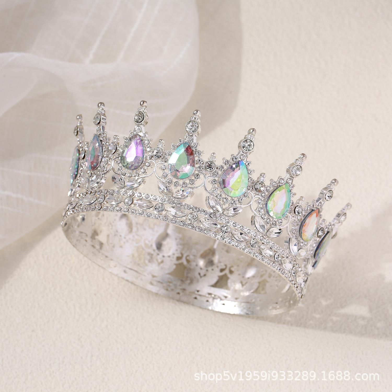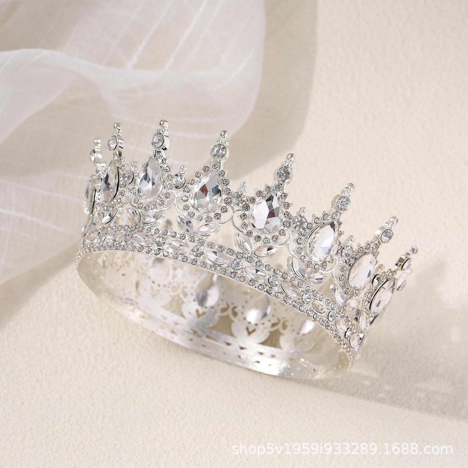 Coroa Noiva Tiara Vestido de Casamento Princesa Luxo Brilhante Coroa Redonda Completa Decoração de Bolo de Flores Ornamentos Coroa