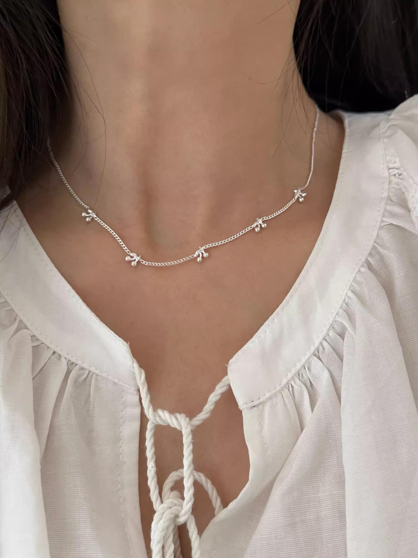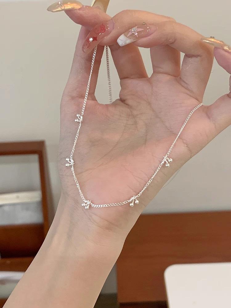Compre S925 Sterling Silver Cherry Colar Doce e Bonito Coração da Menina Verão All-match Requintado High-end Clavícula Cadeia no atacado no Joom.pro