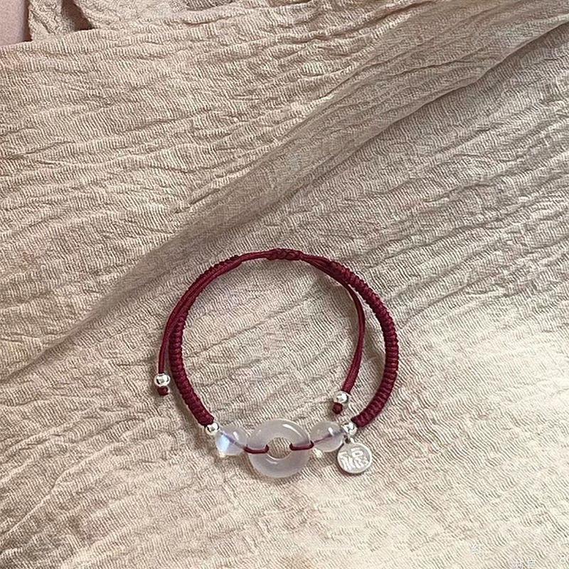 Pulseira feminina de corda vermelha tecida com fivela da paz estilo chinês novo "Era de Ouro" da marca Lucky, joia de mão para amigas de alto nível
