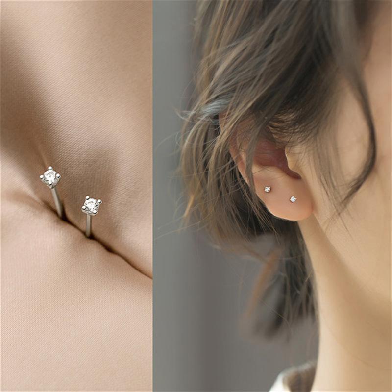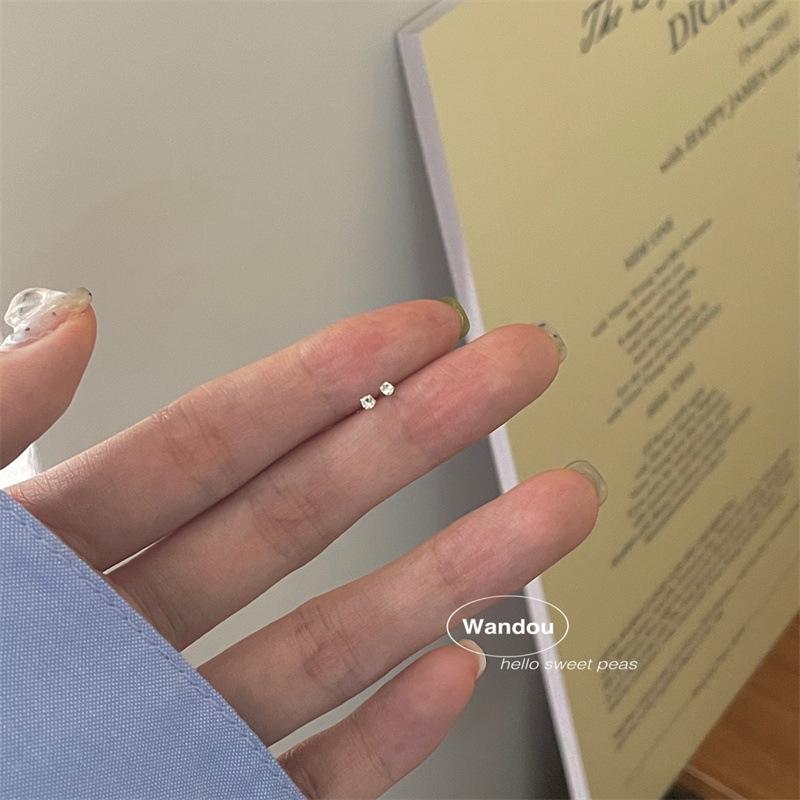 Brincos de prata S925 femininos estilo coreano pequeno fresco simples mini elegante requintado zircão único diamante brincos para estudantes