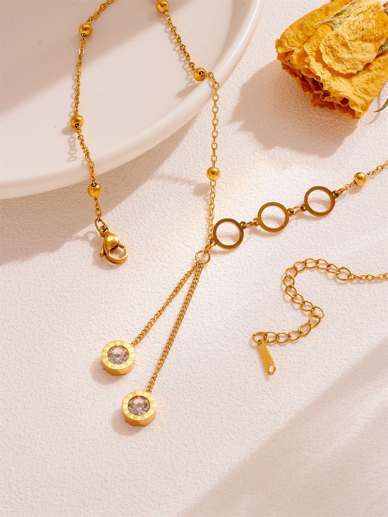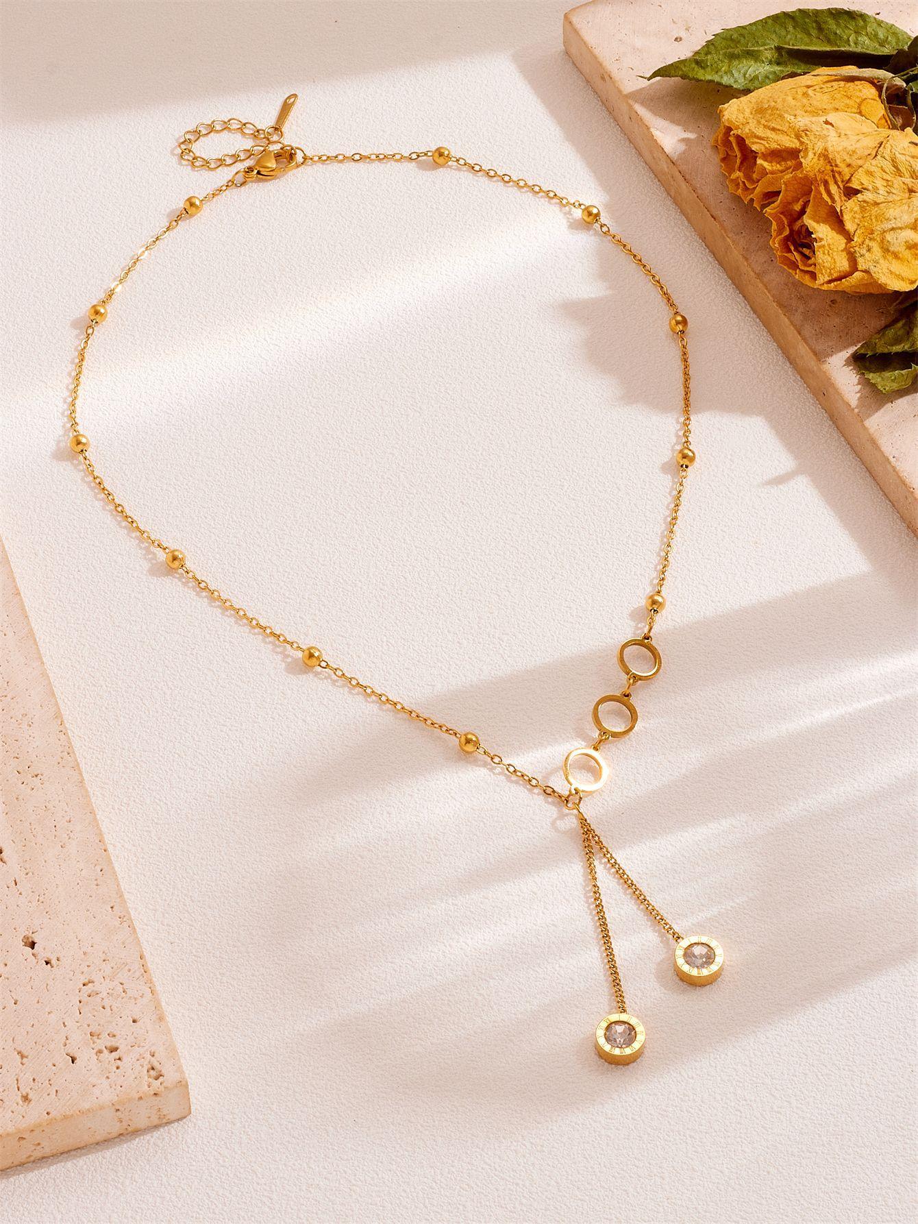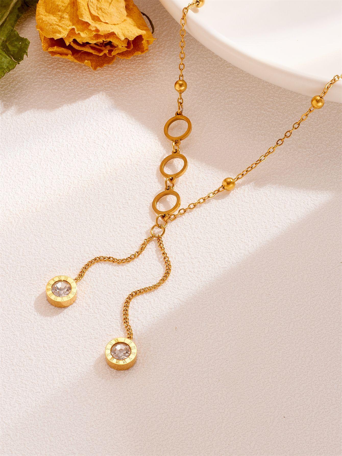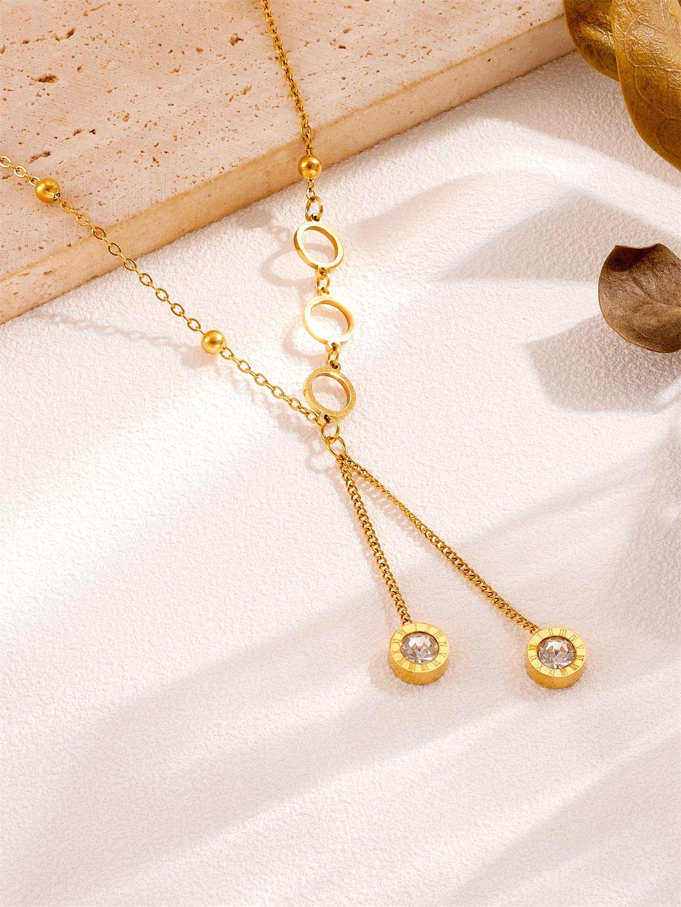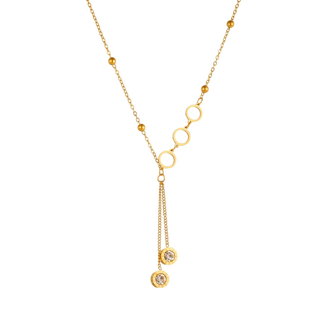 Compre Moda jóias romano redondo branco zircão borla pingente temperamento titânio aço clavícula corrente oco redondo colar no atacado no Joom.pro