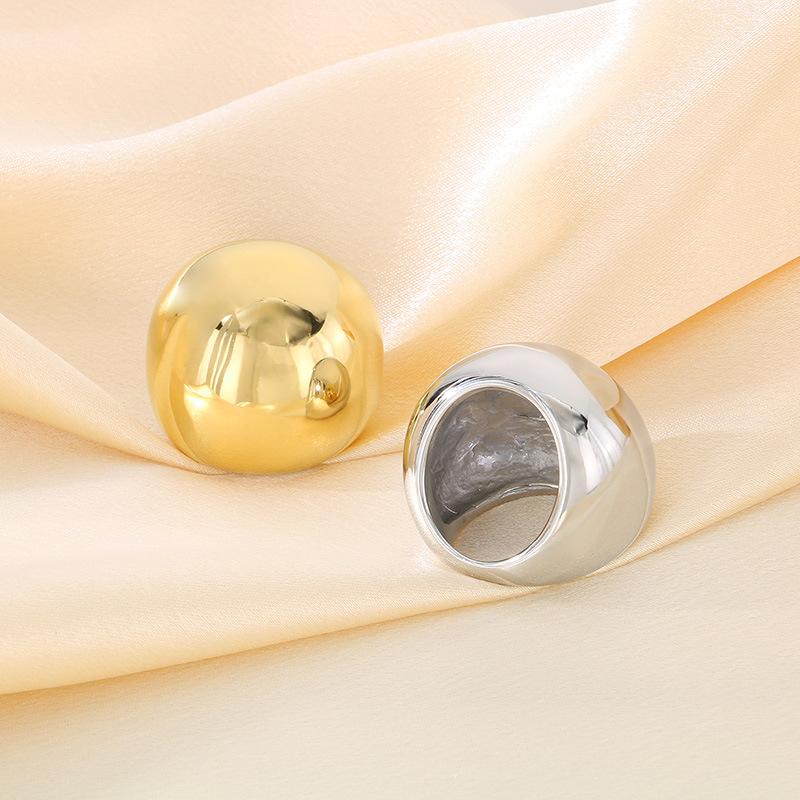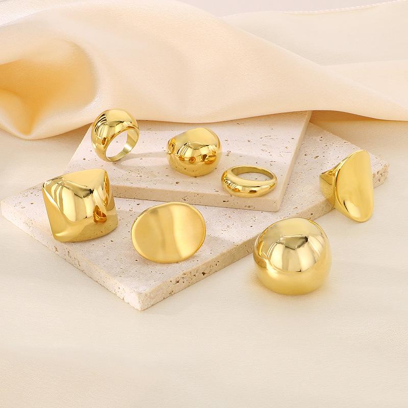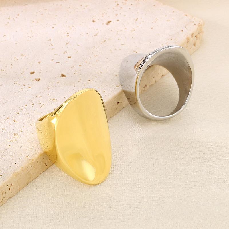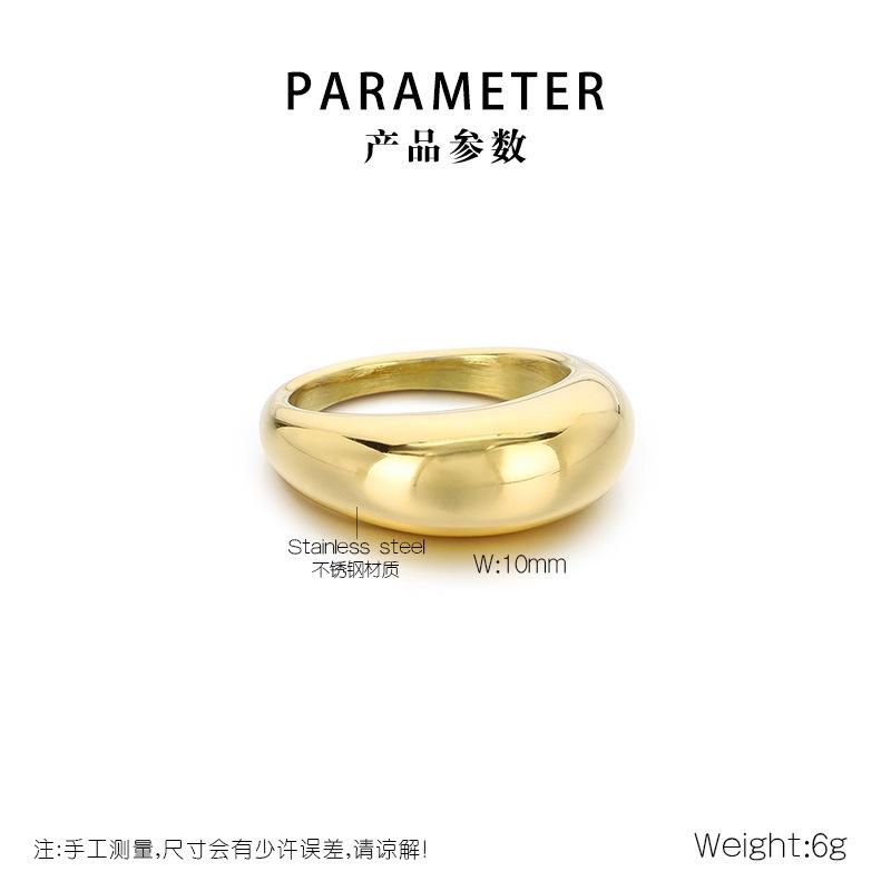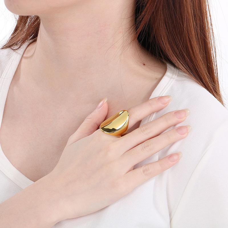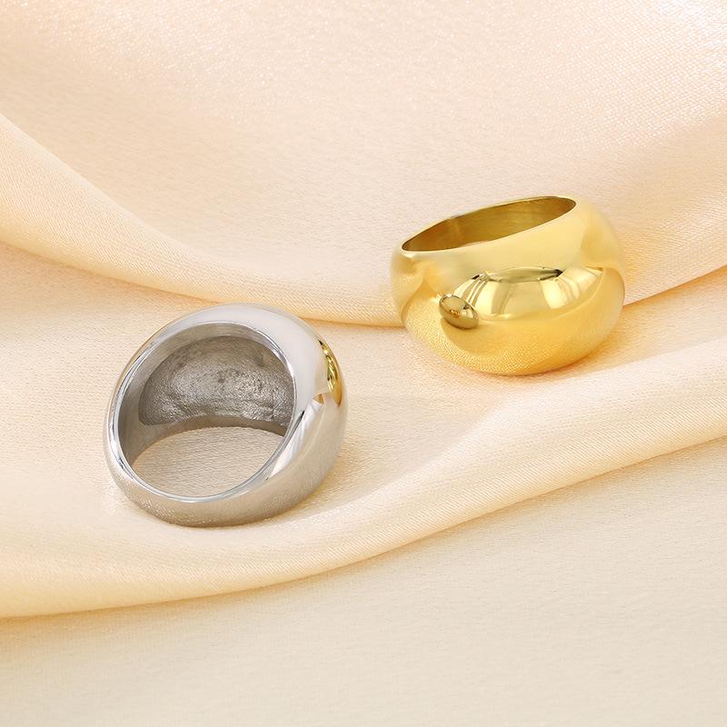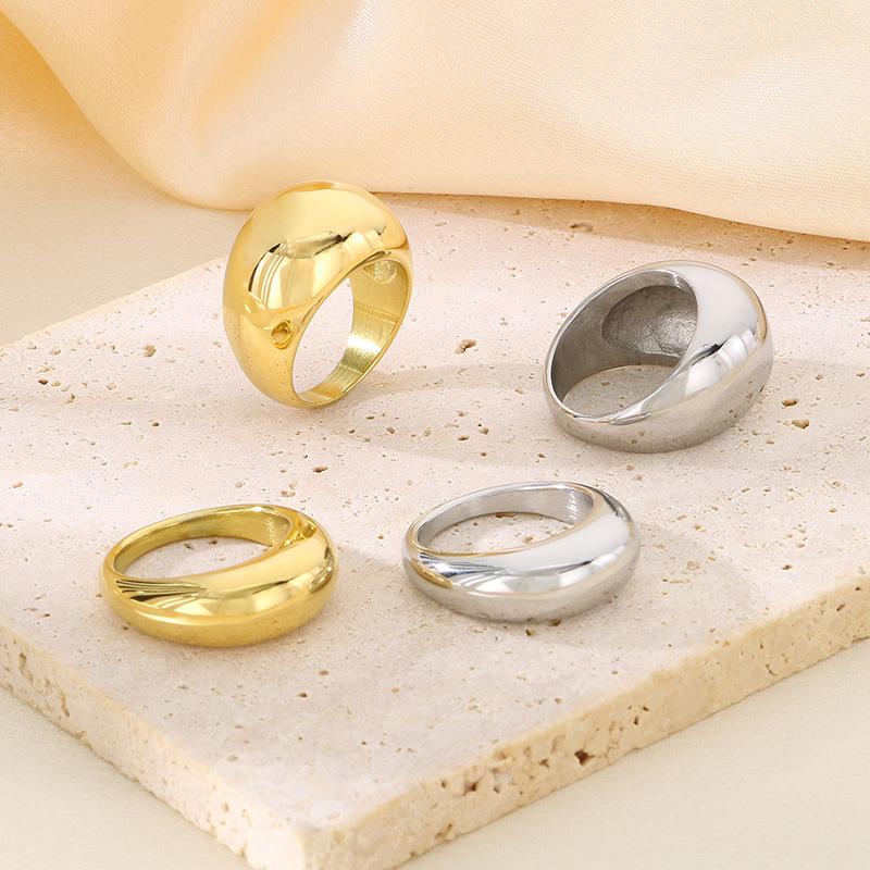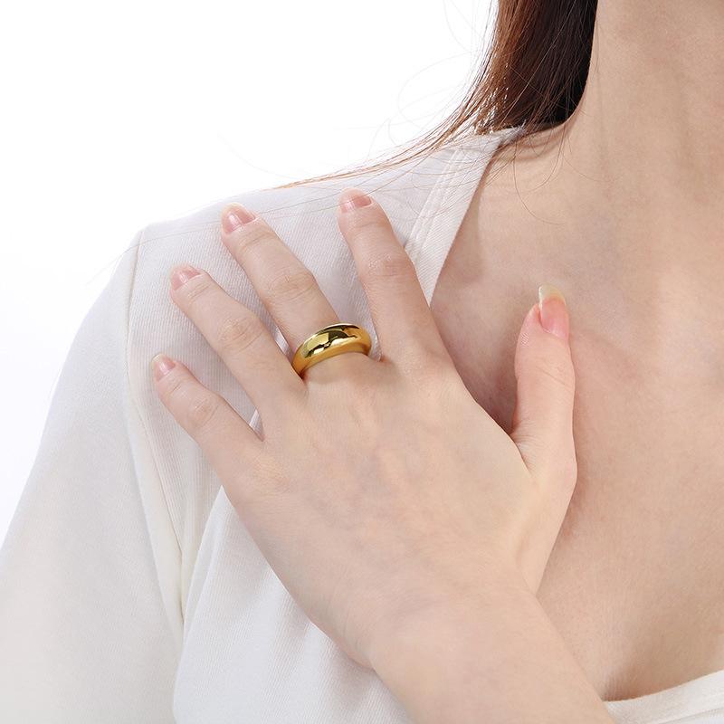 Anel Personalizado Moderno Dourado com Topo em Arco Polido Espelhado Gravável Anel Exagerado de Aço Titânio Banhado a Ouro 18K para Homens e Mulheres