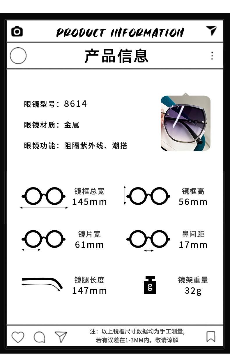 2024 Novo Estilo de Metal Óculos de Sol Femininos Internet Popular Street Photograph Grande Quadro Emagrecimento Anti-UV Óculos de Sol