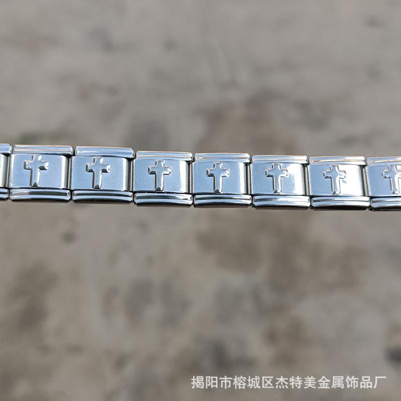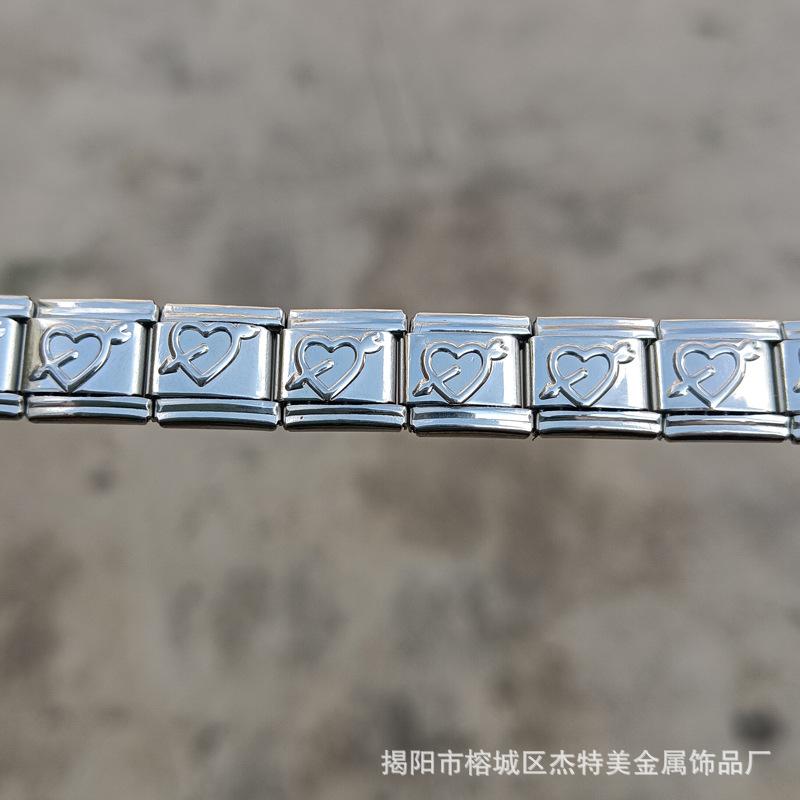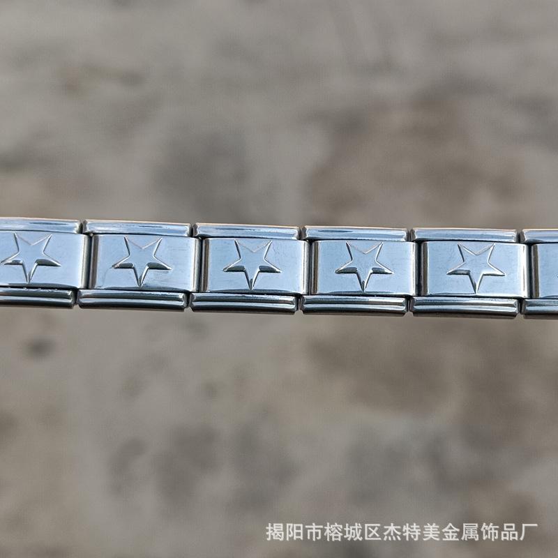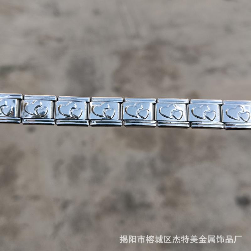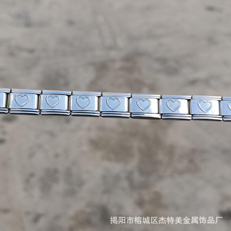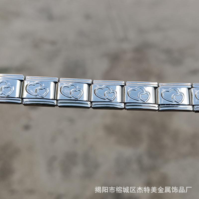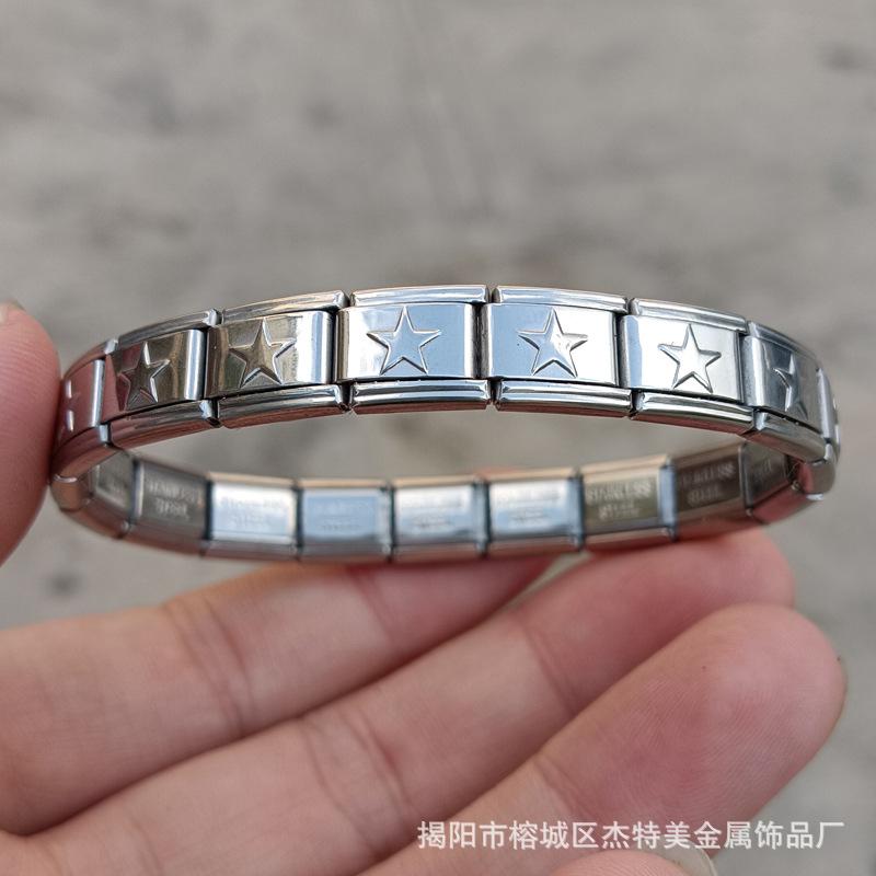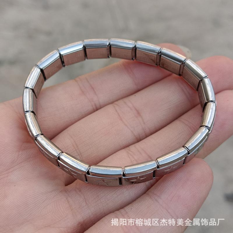 Jieyang em estoque Pulseira simples de venda quente transfronteiriça para meninos e meninas Pulseira de módulo italiano de aço inoxidável polido diy9mm