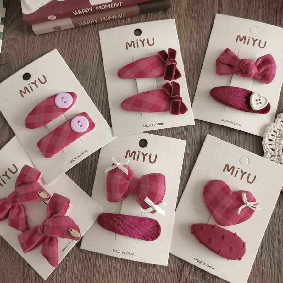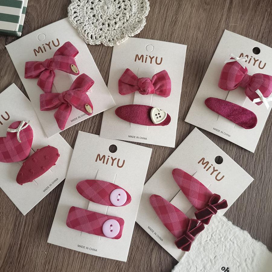 Grampo de cabelo estilo coreano, novo, rosa, doce, menina, coração, laço, grampo lateral, tecido combinado, acessórios para cabelo, grampo bb para meninas