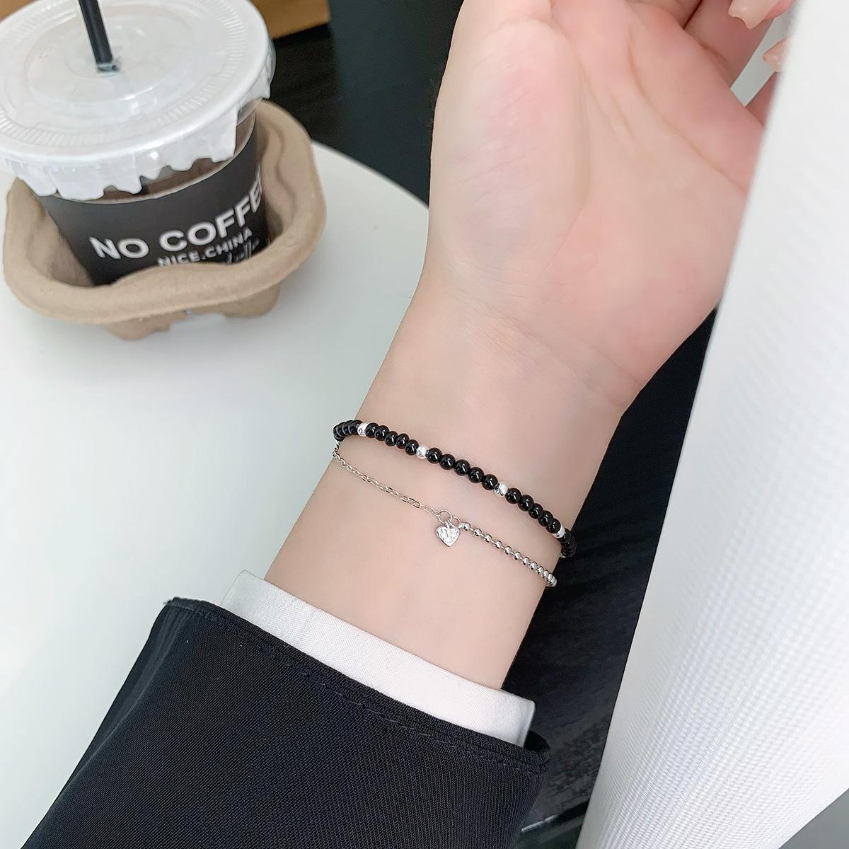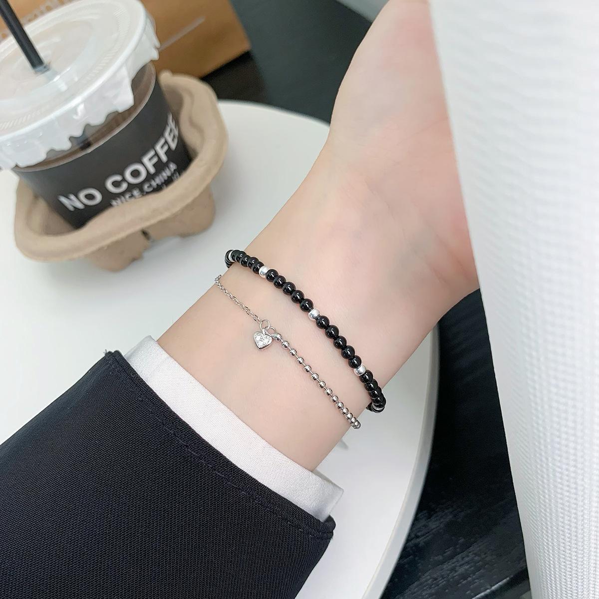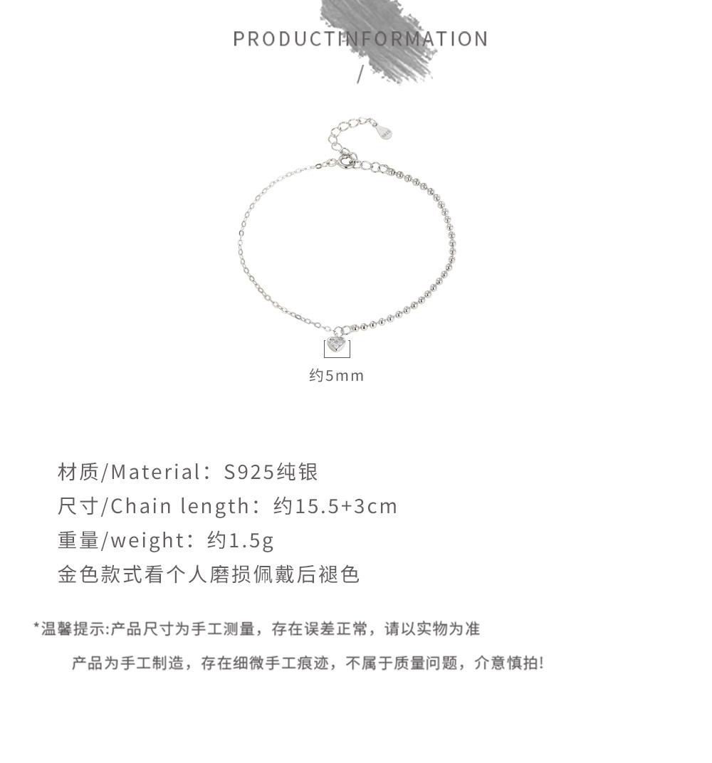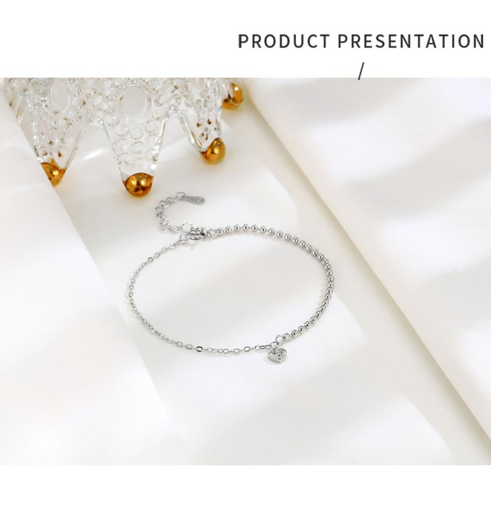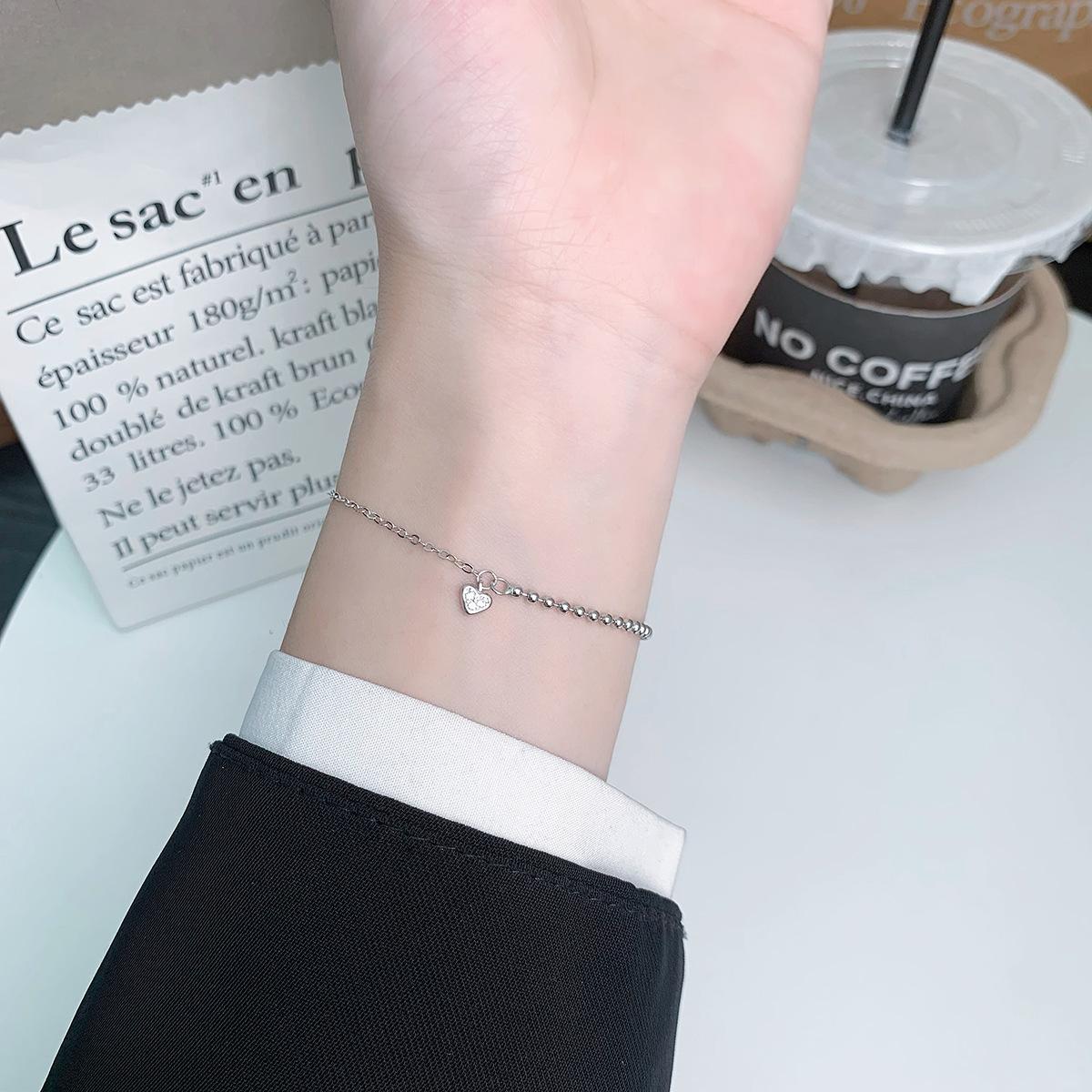 Compre Pulseira Versátil de Prata de Lei S925 Pequeno Coração Elegante Joia Nicho Simples Empilhada Contas de Bolas Coração de Pêssego Acessórios no atacado no Joom.pro
