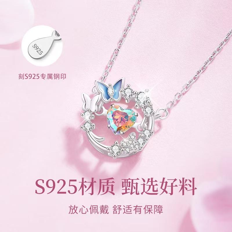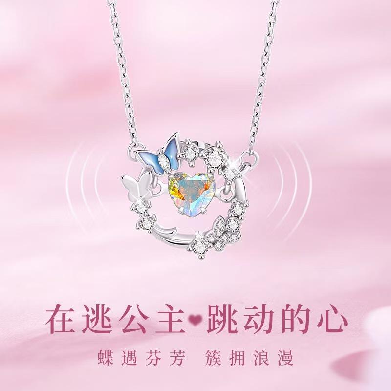 Compre Colar de Princesa de Fuga Feminino S925 Sterling Silver Love Butterfly Clavícula Cadeia Design de Nicho Presente de Sentido de Alta Qualidade para Namorada no atacado no Joom.pro
