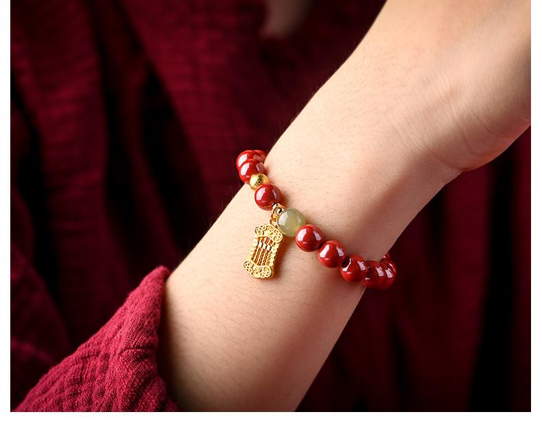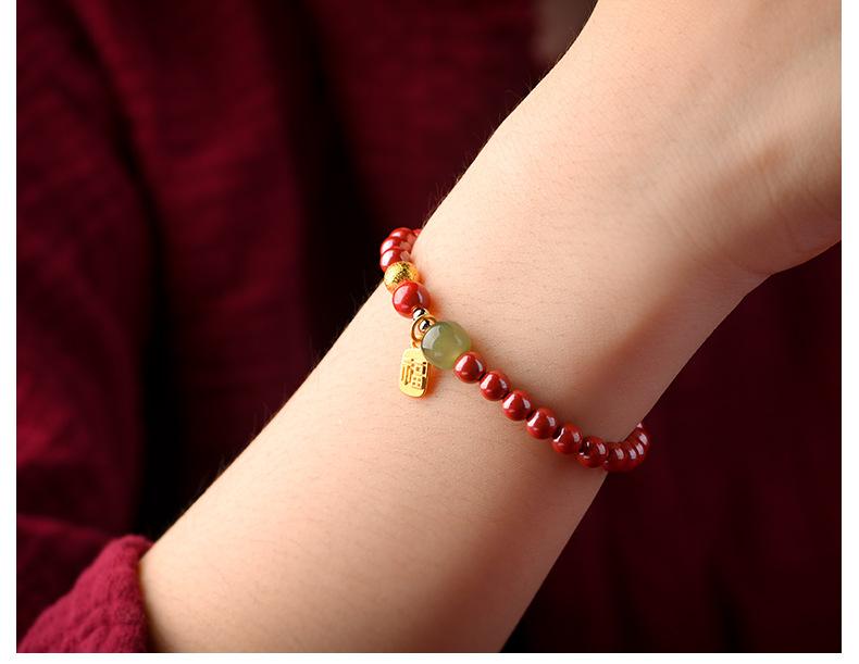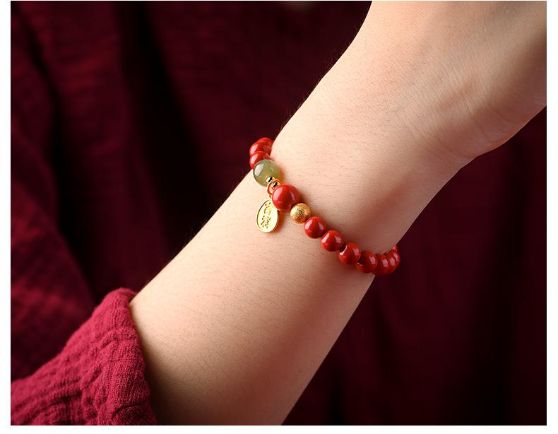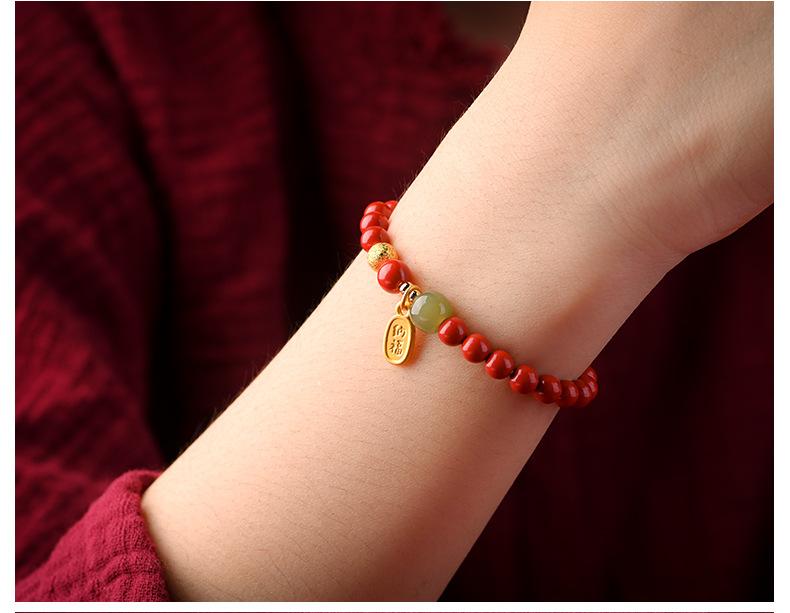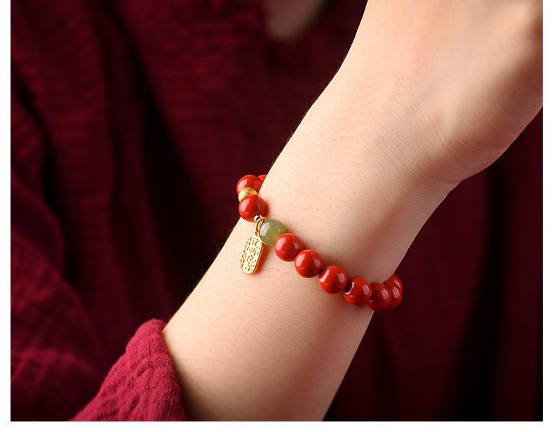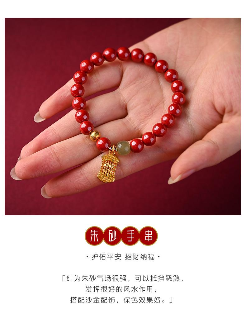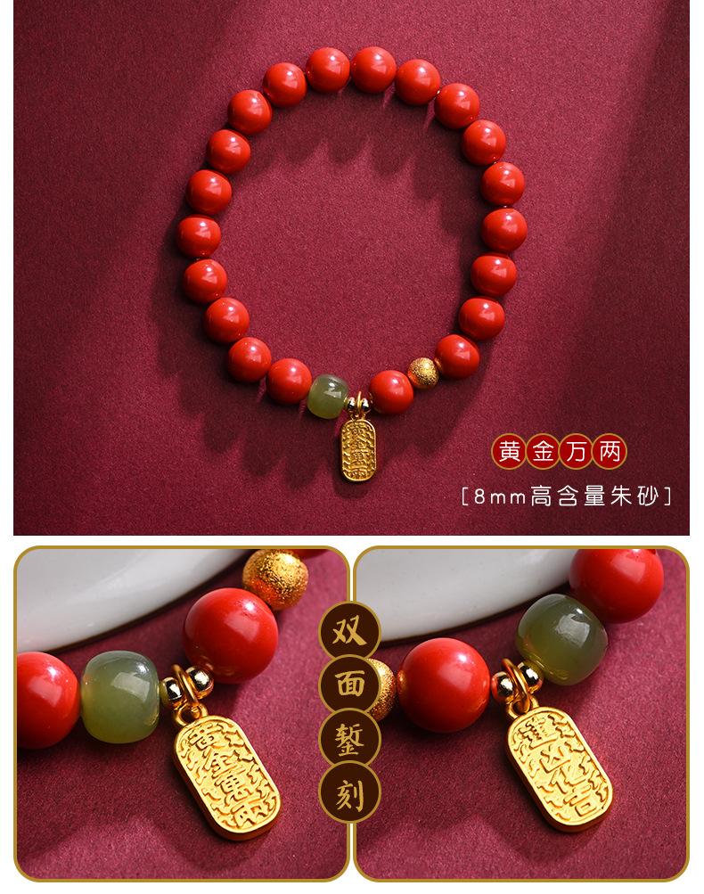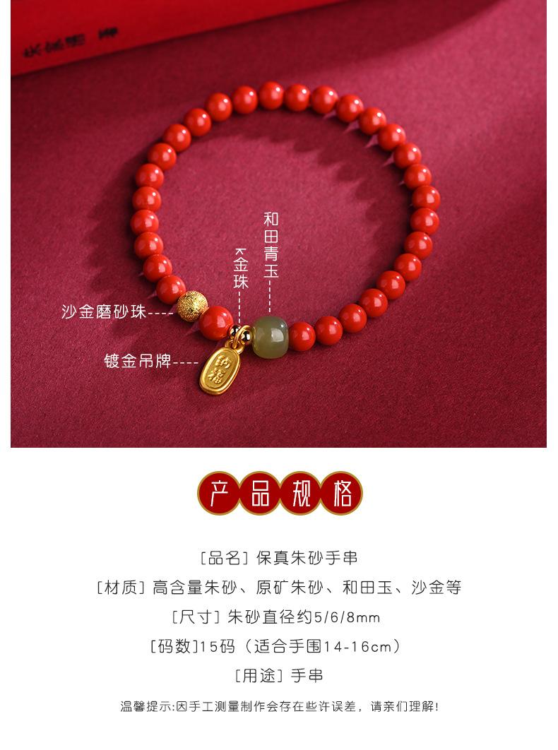 As pulseiras autênticas da série cinábrio são combinadas com areia dourada para boa retenção da cor. Você precisa prestar atenção à manutenção diária. O tamanho padrão é 15, adequado para pulsos com uma circunferência de 14-16cm. Para outros pulsos, entre em contato com o serviço de atendimento ao cliente para personalização.