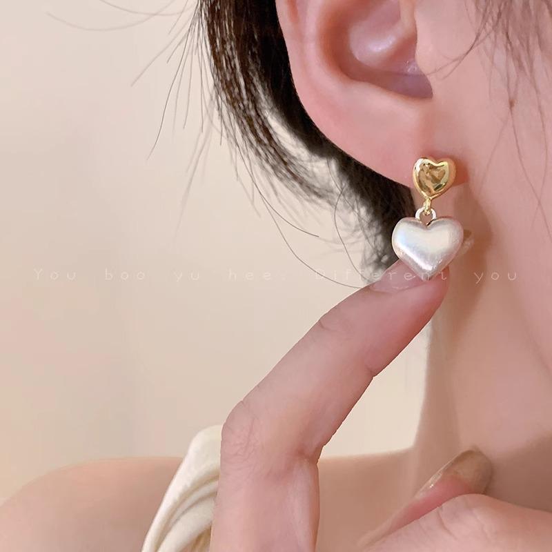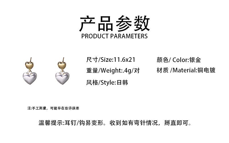 Estilo coreano simples ouro e prata contraste cor fosco desenho brincos de amor feminino nicho design doce todos os jogos brincos de alta qualidade