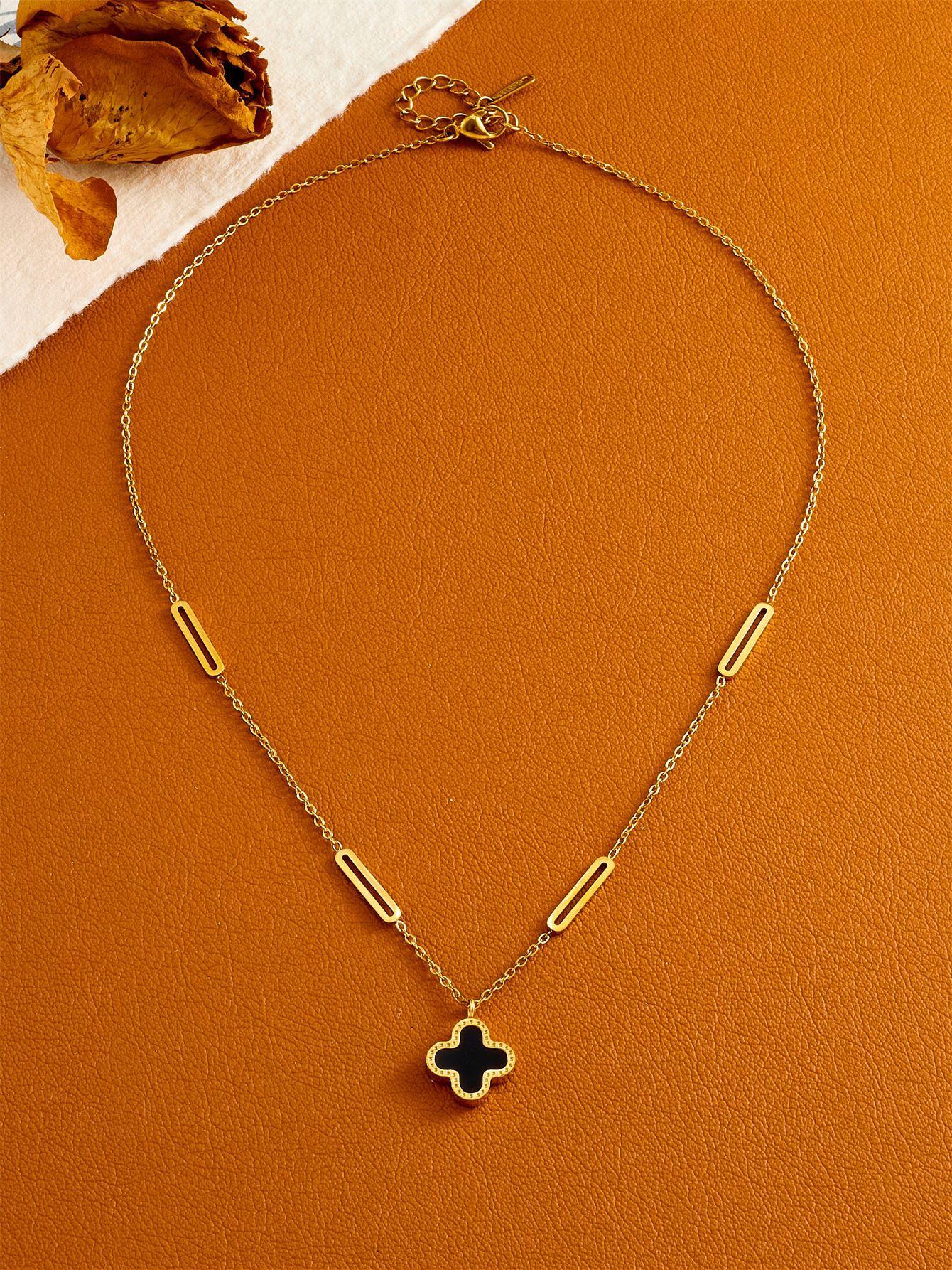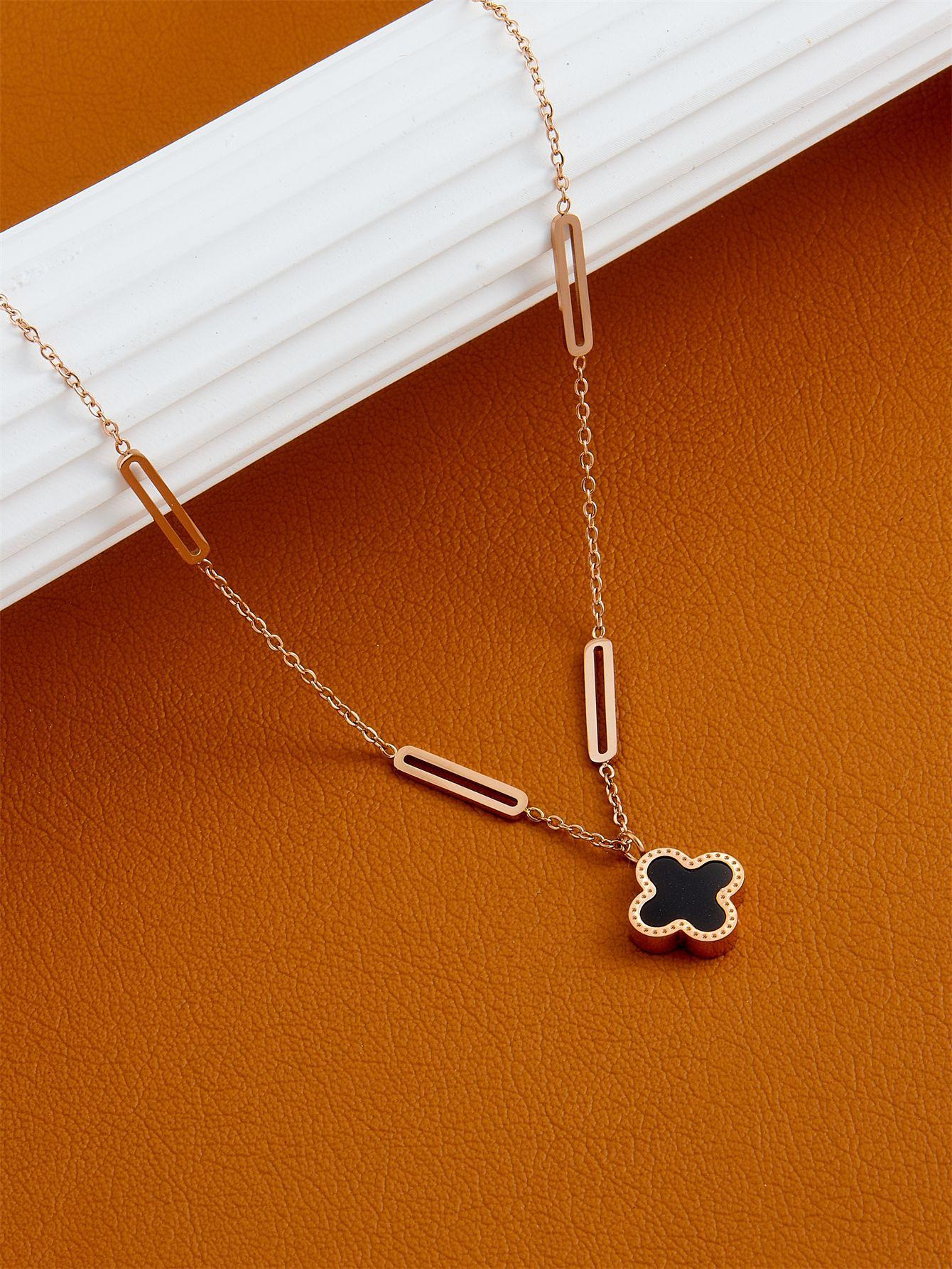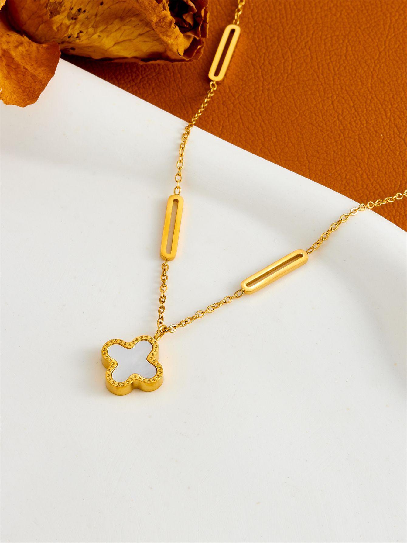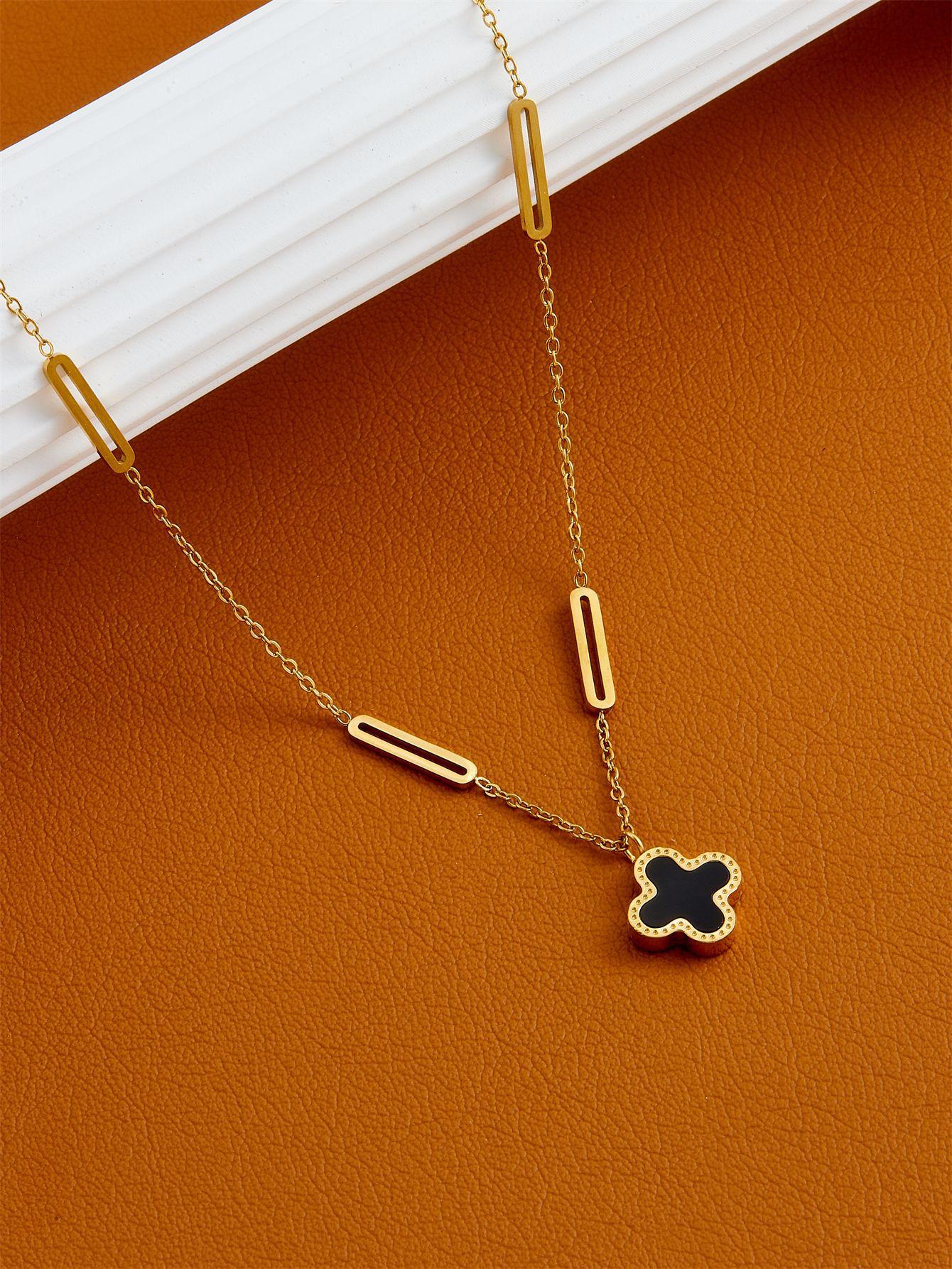 Compre Colar de aço de titânio de dupla face de trevo de quatro folhas feminino com pingente de trevo corrente de clavícula novo colar de luxo acessível design de nicho não no atacado no Joom.pro