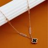 Colar de aço de titânio de dupla face de trevo de quatro folhas feminino com pingente de trevo corrente de clavícula novo colar de luxo acessível design de nicho não