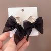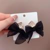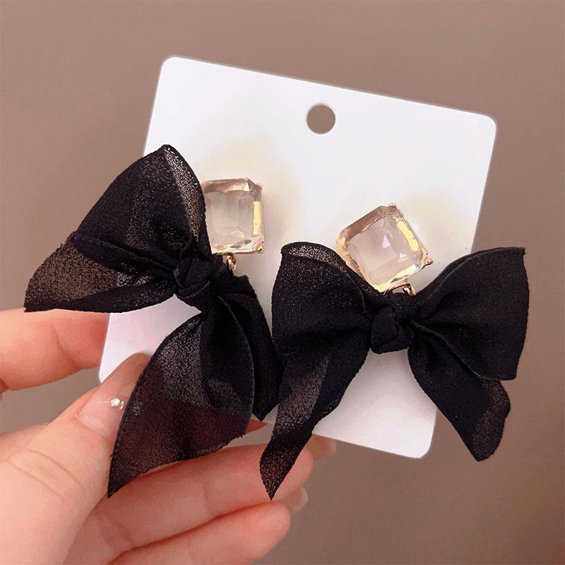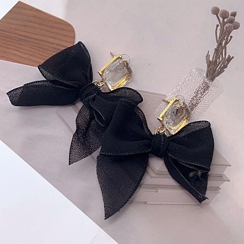 S925 Agulha de Prata Preto Arco Orelha Stud Fada Feminina Francês Hepburn Estilo Brincos Avançado Furos de Orelha Brincos de Prata Esterlina