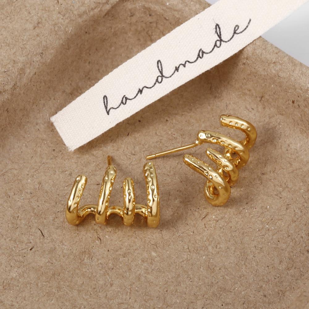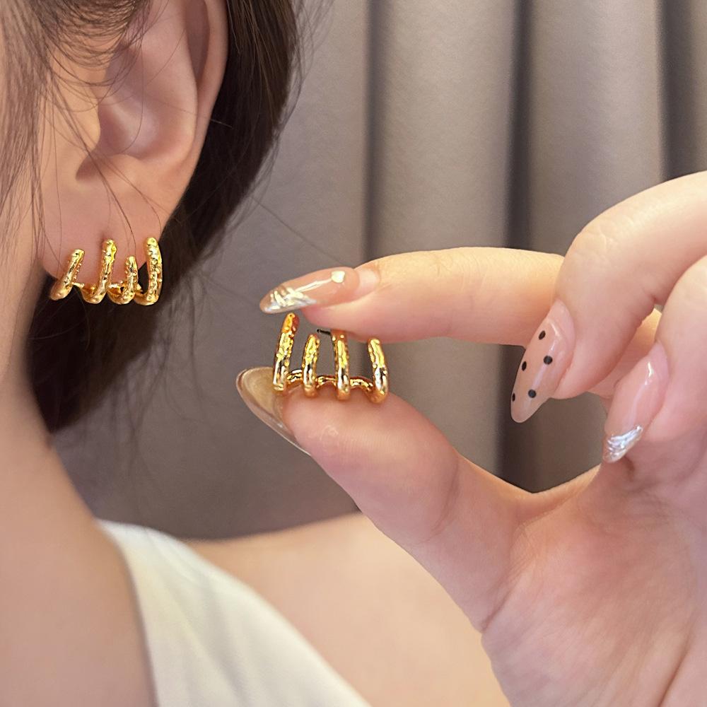 Compre Yyds Brincos de Design Exclusivo Simples Estilo Luxo Textura Brincos de Quatro Garras Estilo Frio Avançado Sense Joias para Orelhas no atacado no Joom.pro