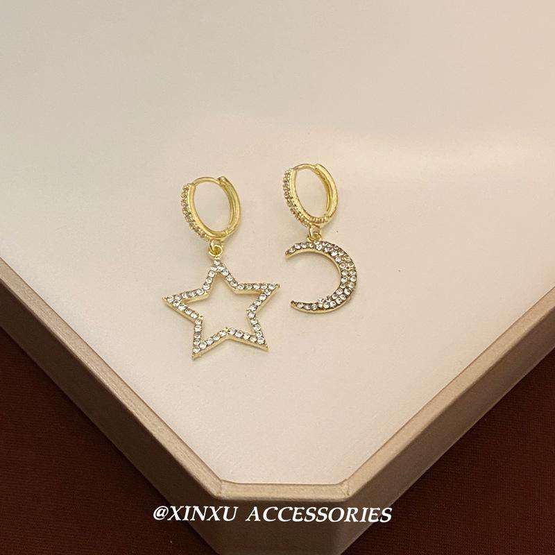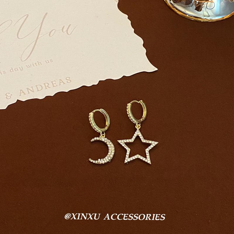 Compre Fivela de orelha irregular simples estrela da lua 2024 novo design nicho personalidade requintada tudo combina elegante fivela de orelha elegante no atacado no Joom.pro