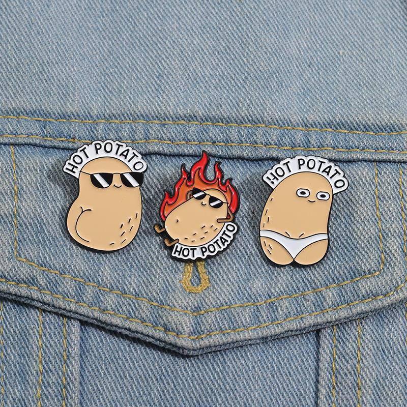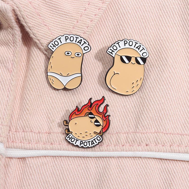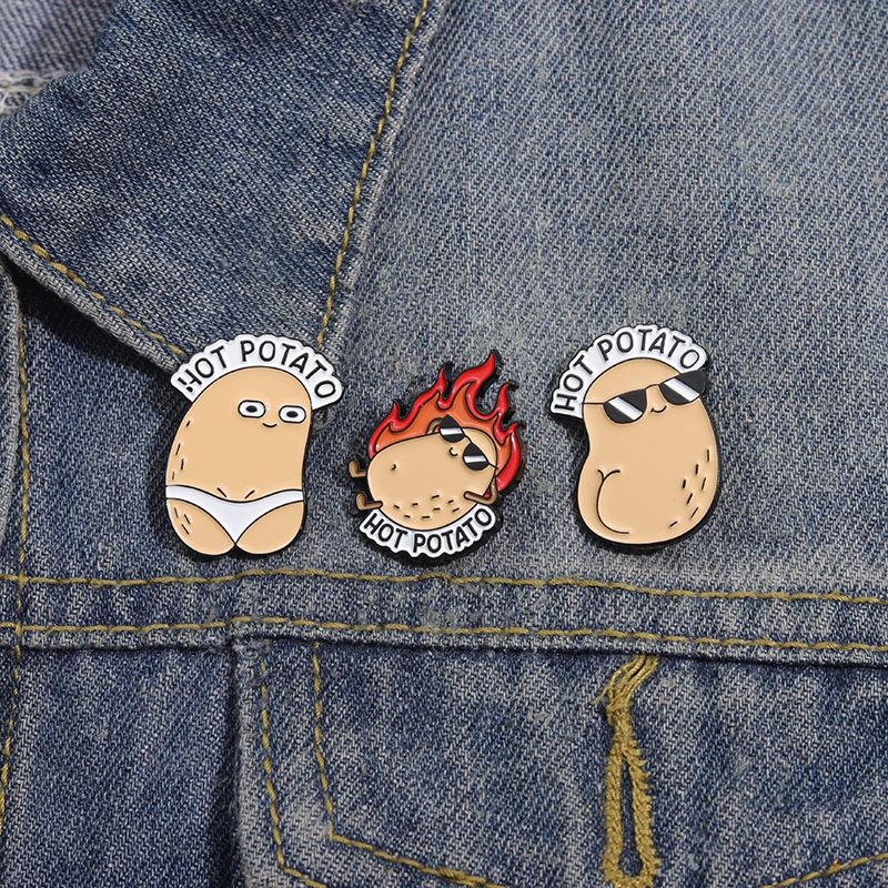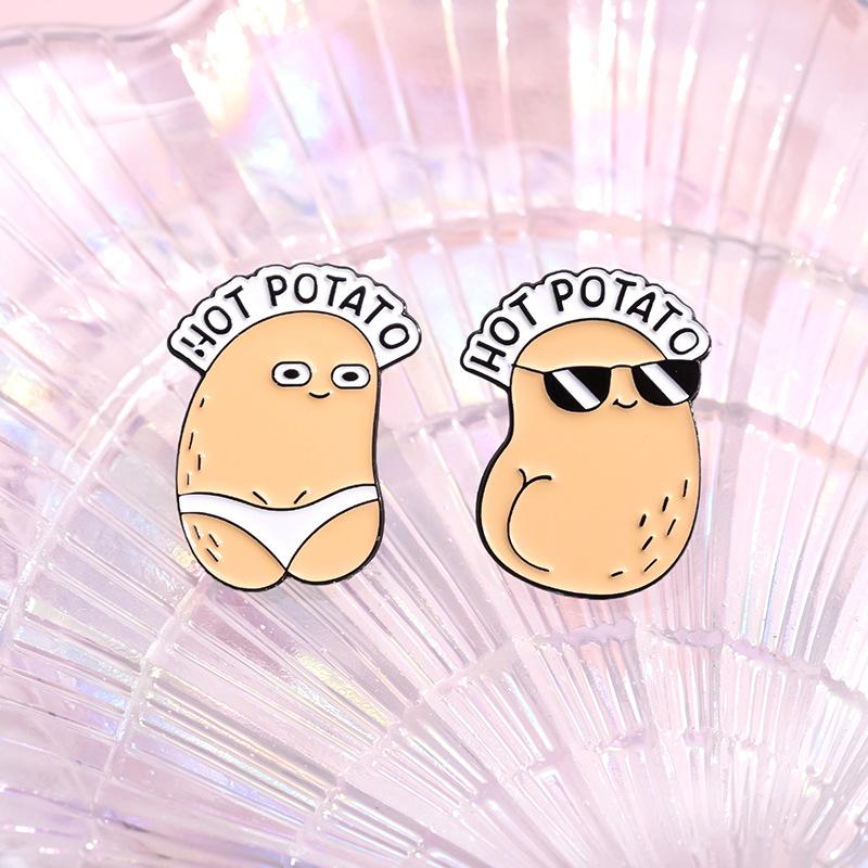 Compre Broche de Liga Esmaltado Criativo em Forma de Batata de Desenho Animado com Óculos de Sol Original Exquisito Pino Fixo Acessórios no atacado no Joom.pro