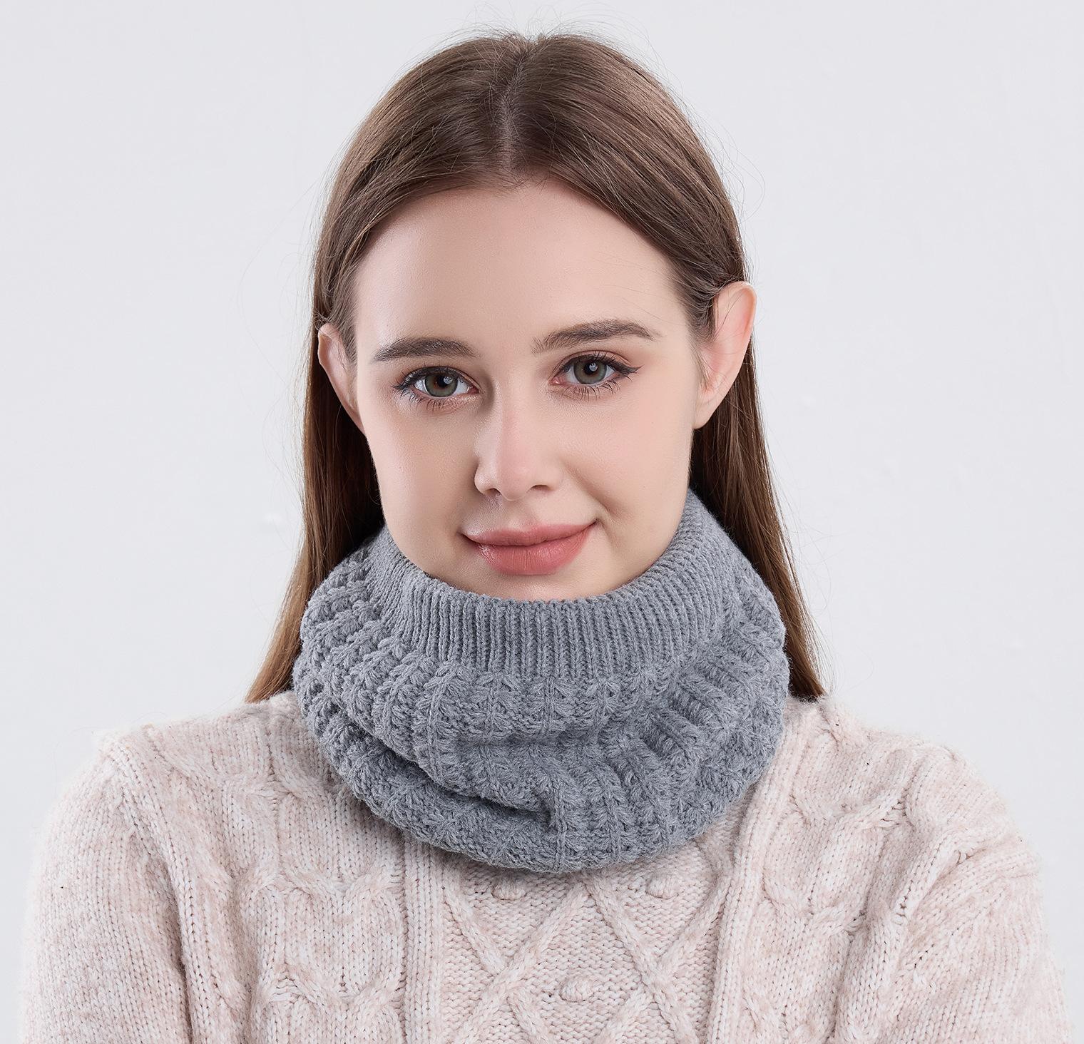 Cachecol masculino Inverno Novo Fleece-forrado Quente Pullover Neck Set Thickened Knitted Solid Color Scarf Cross-border Atacado