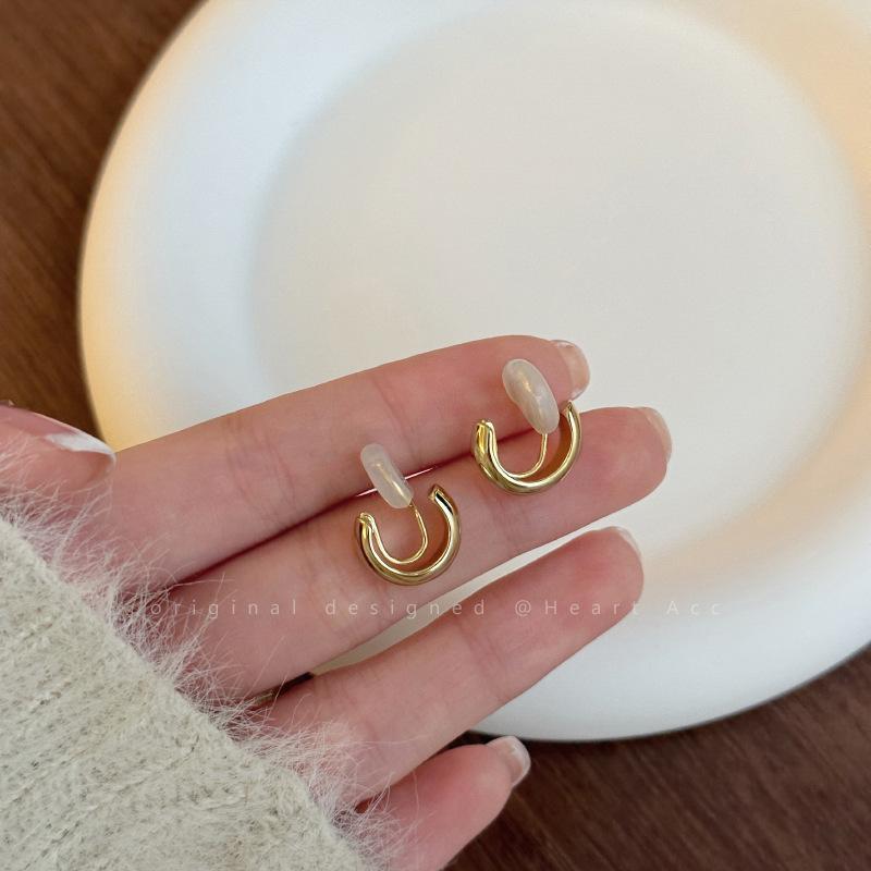 Gold glossy earrings and ear clips, Silver glossy earrings and ear clips