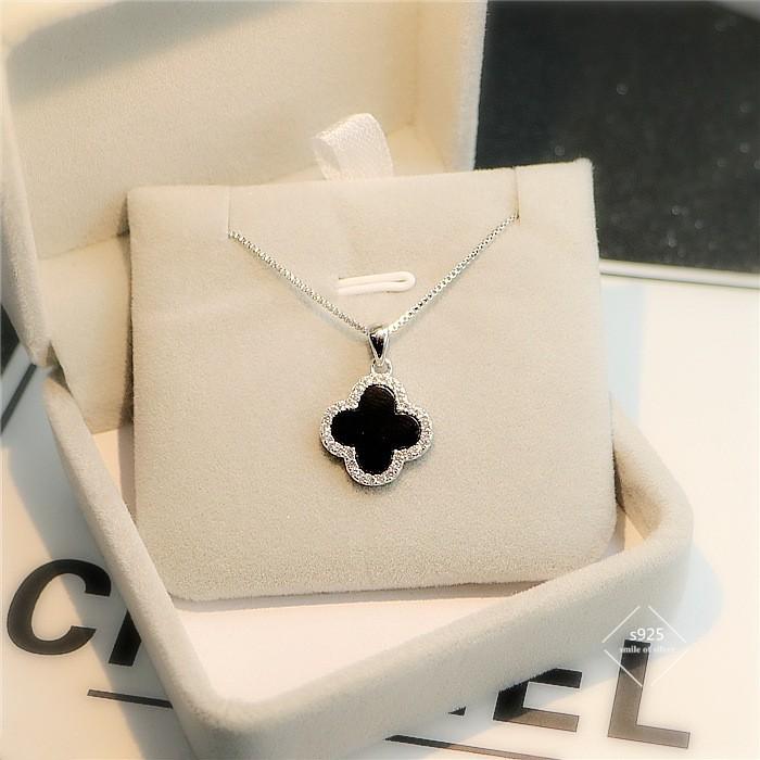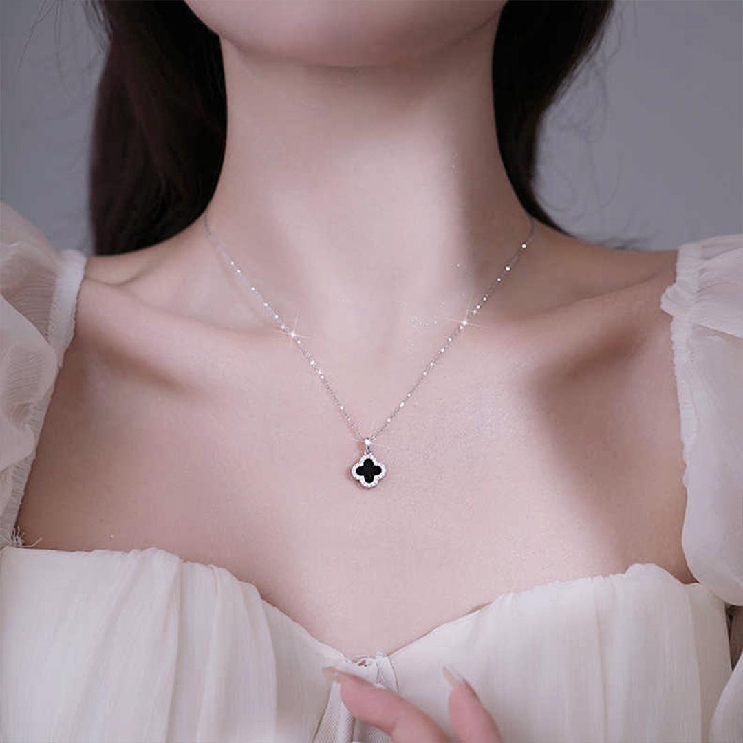 Compre Estilo japonês e coreano Internet Celebridade Dupla face Trevo de quatro folhas S925 Colar de prata esterlina Moda feminina elegante luz de luxo estilo frio Clavícula Cadeia na moda no atacado no Joom.pro