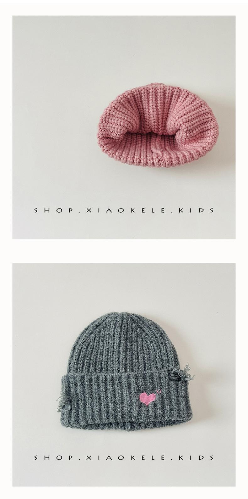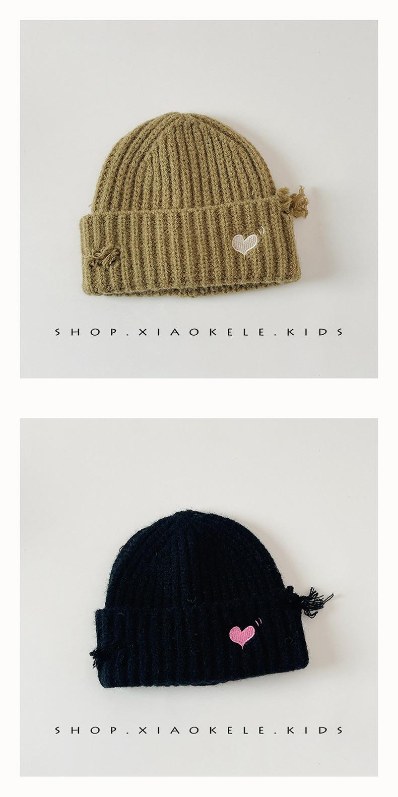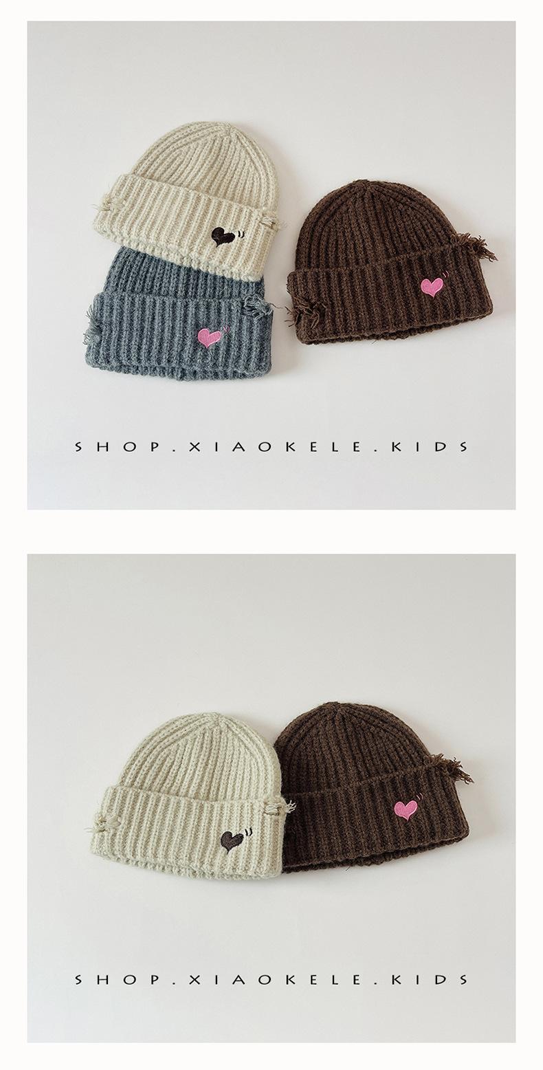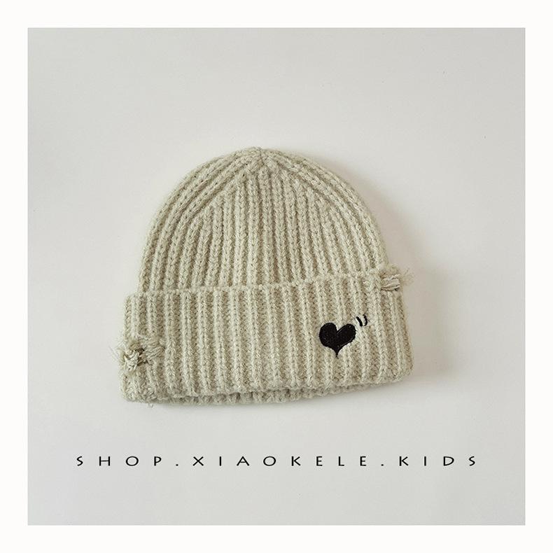 Gorro de lã infantil de outono e inverno, estilo coreano, bordado Old Love, gorro de proteção de orelha de malha para meninas, gorro quente para meninas