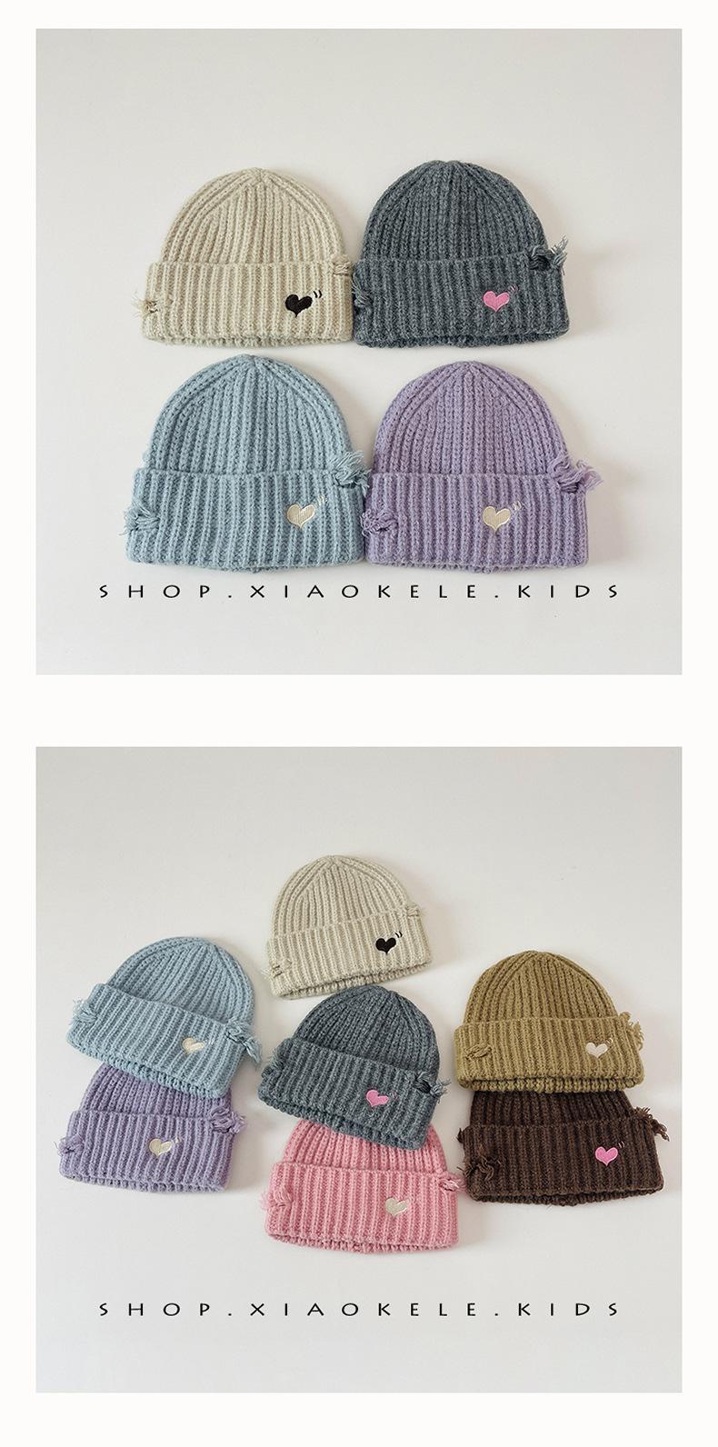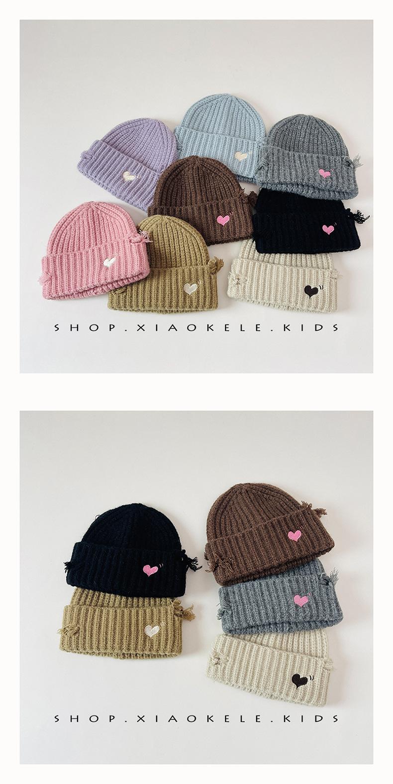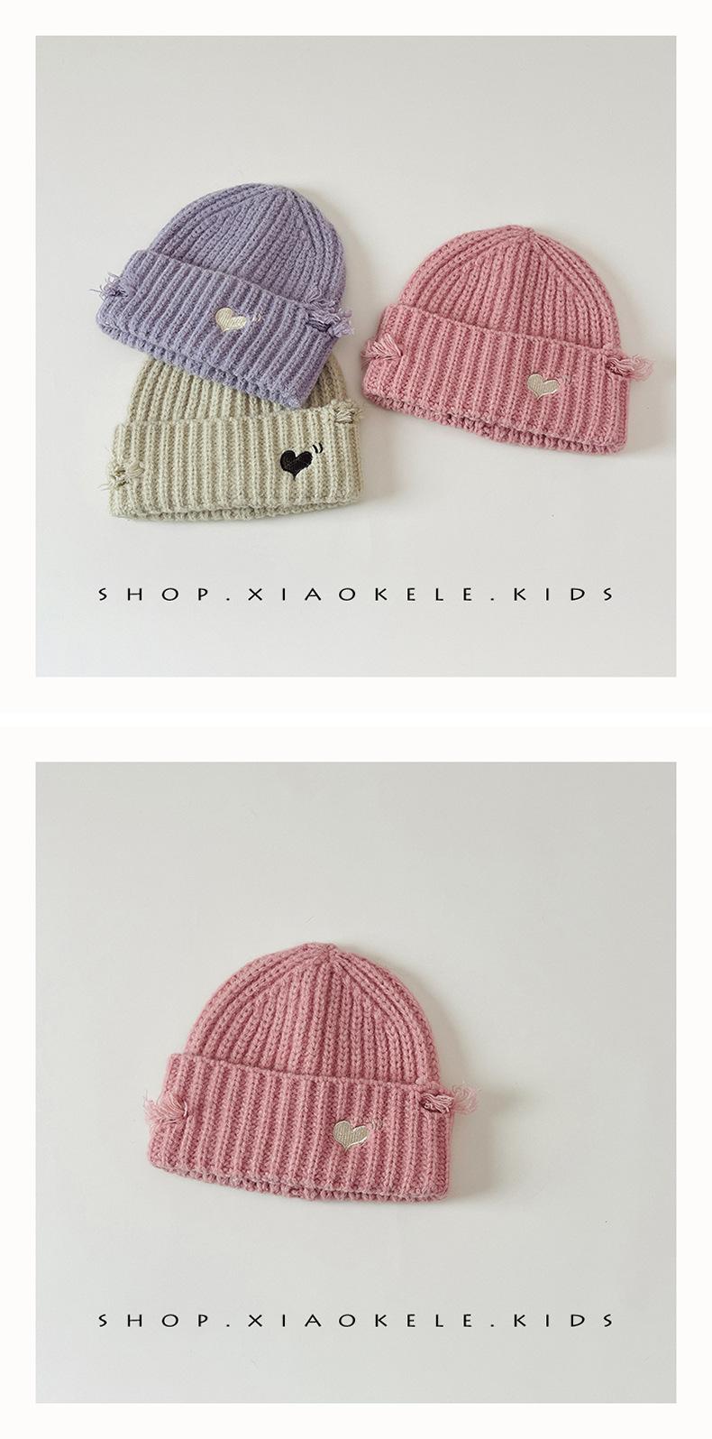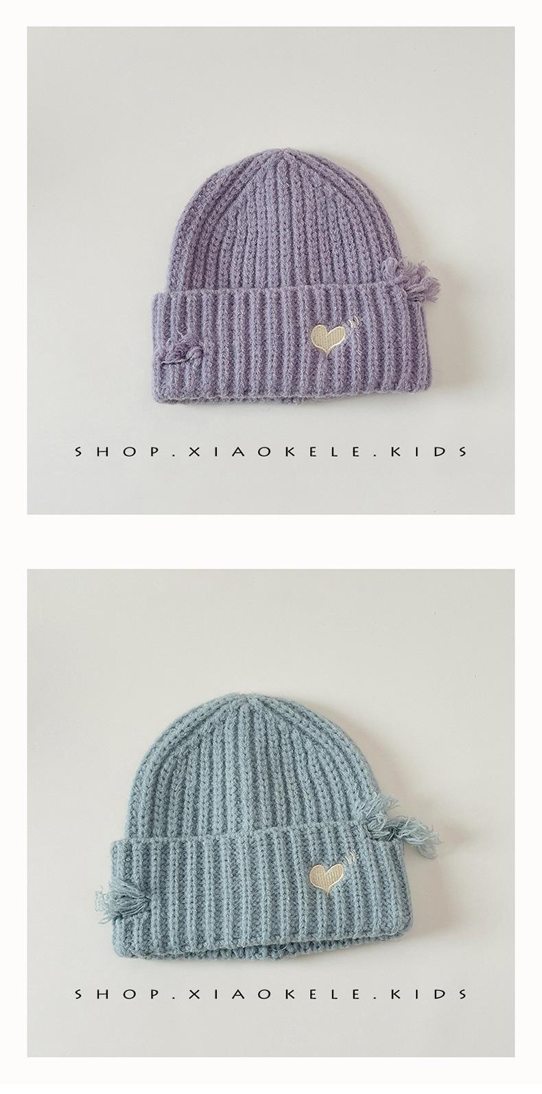 Gorro de lã infantil de outono e inverno, estilo coreano, bordado Old Love, gorro de proteção de orelha de malha para meninas, gorro quente para meninas