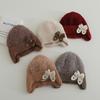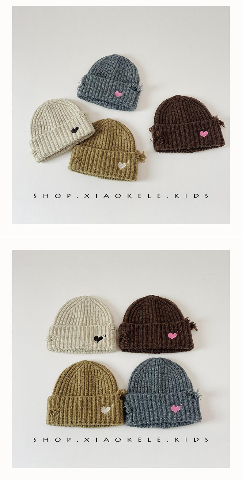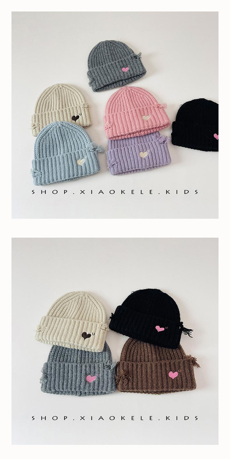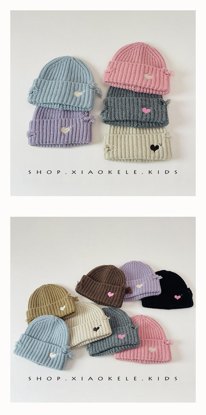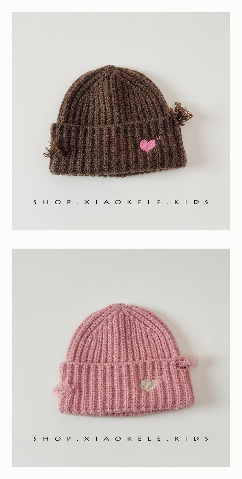 Gorro de lã infantil de outono e inverno, estilo coreano, bordado Old Love, gorro de proteção de orelha de malha para meninas, gorro quente para meninas