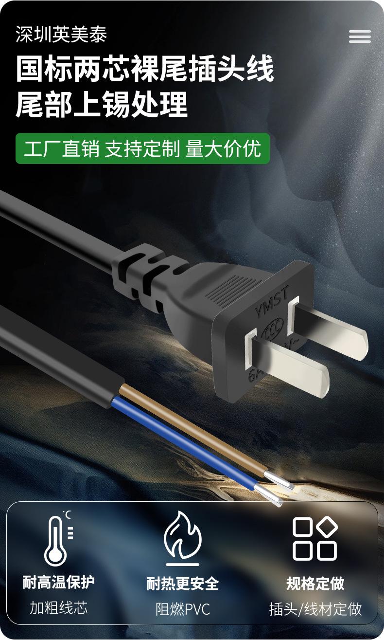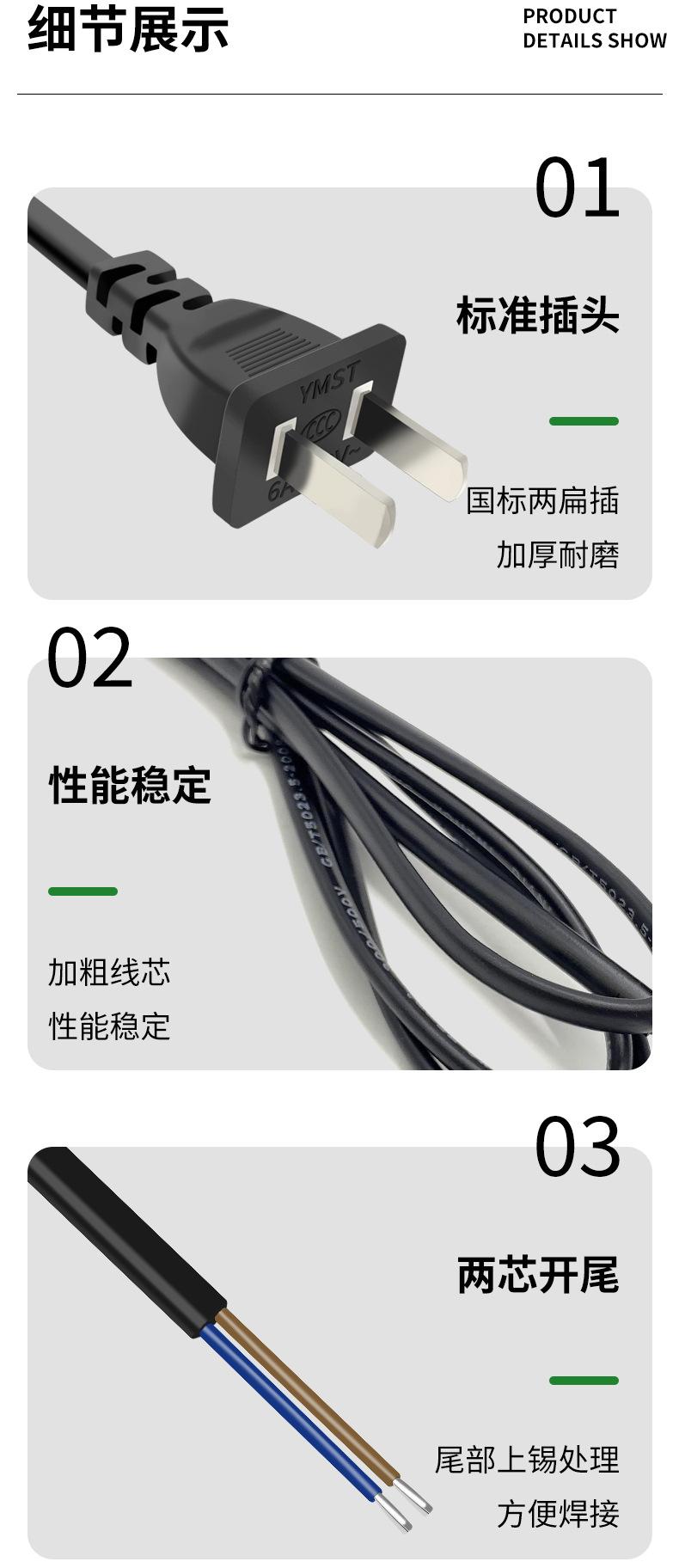 Direto da fábrica 1,5 metros 2,5 metros cabo de alimentação de dois / dois pinos com fio de plugue cabo de alimentação de dois núcleos
