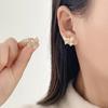 Gold three-grip zircon earrings-925 silver needle-real gold plated