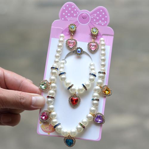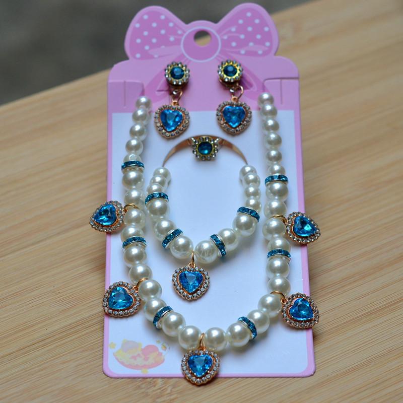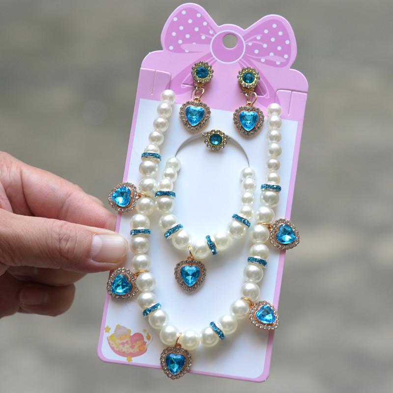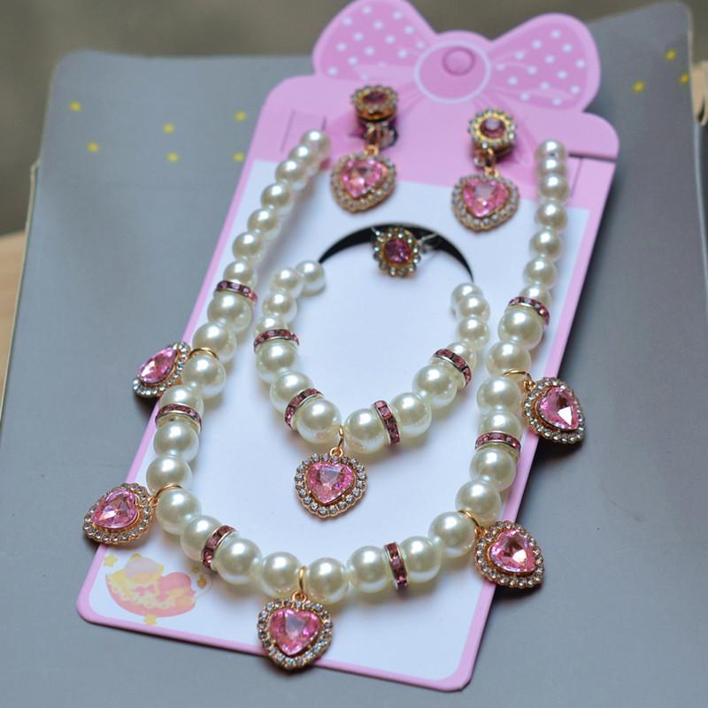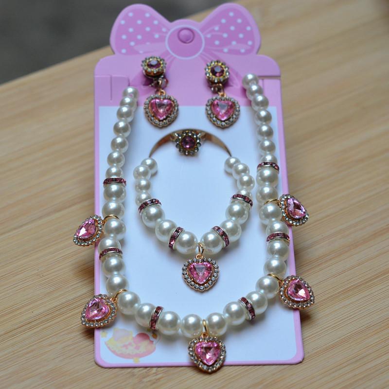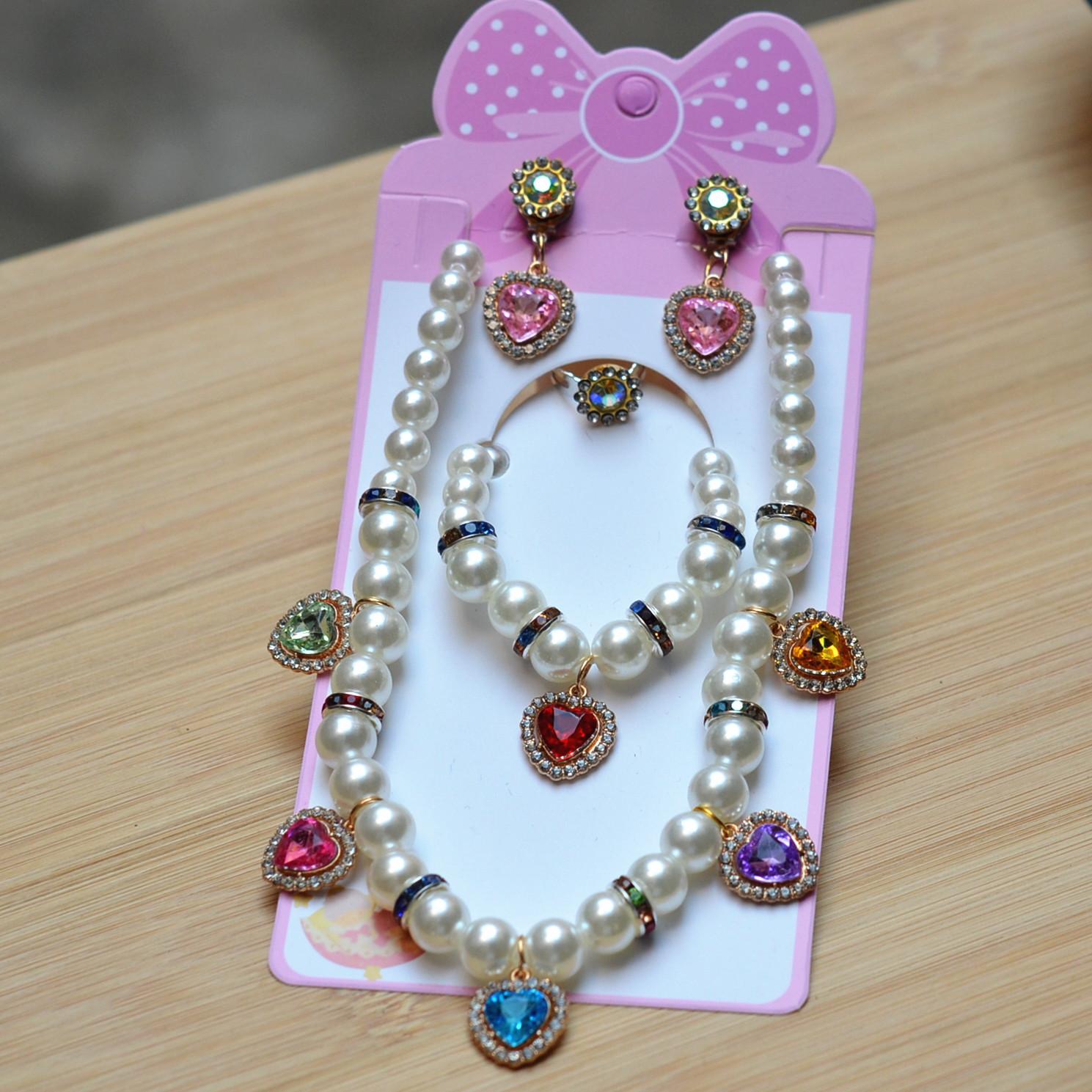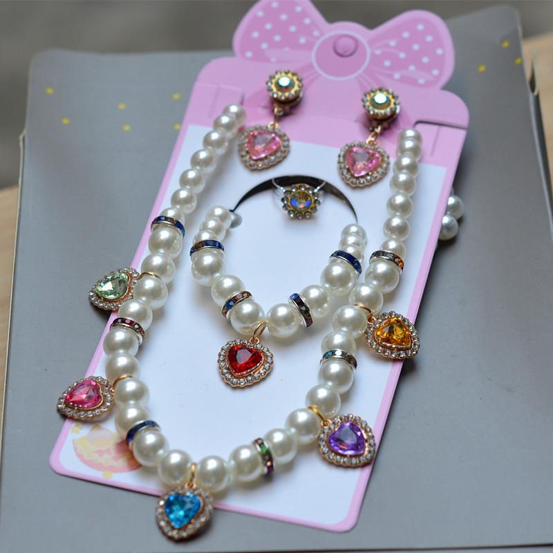 Meninas Crianças Bebê Menina Jóias Caixa de Presente Gem Colar Princesa Pérola Colar Pulseira Terno Presente Anel