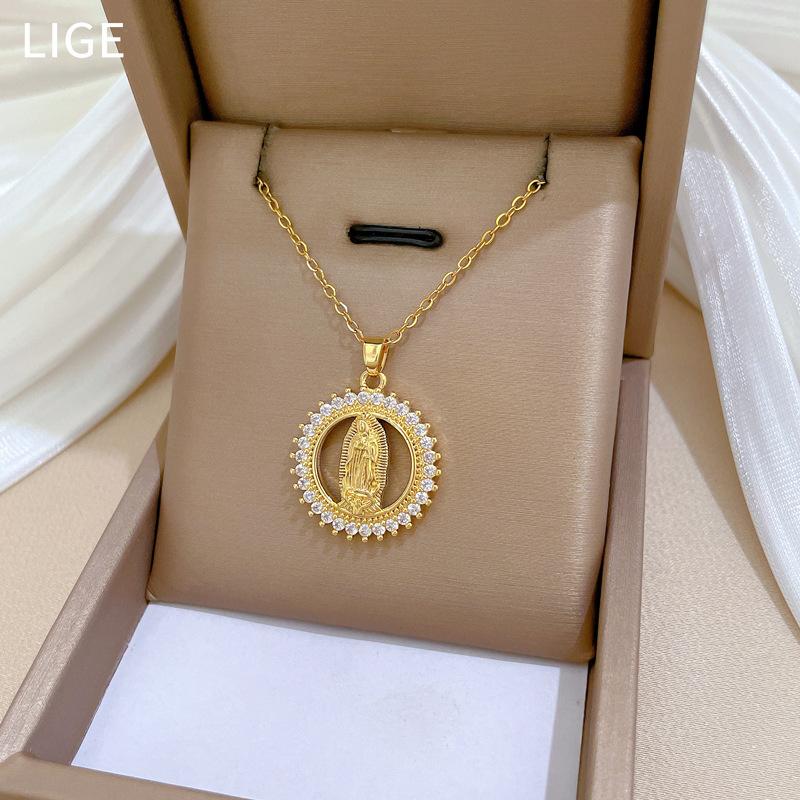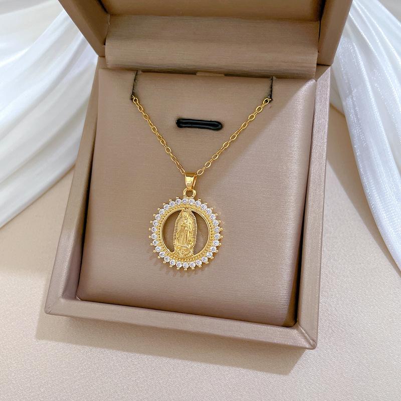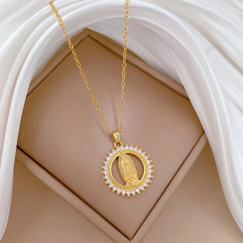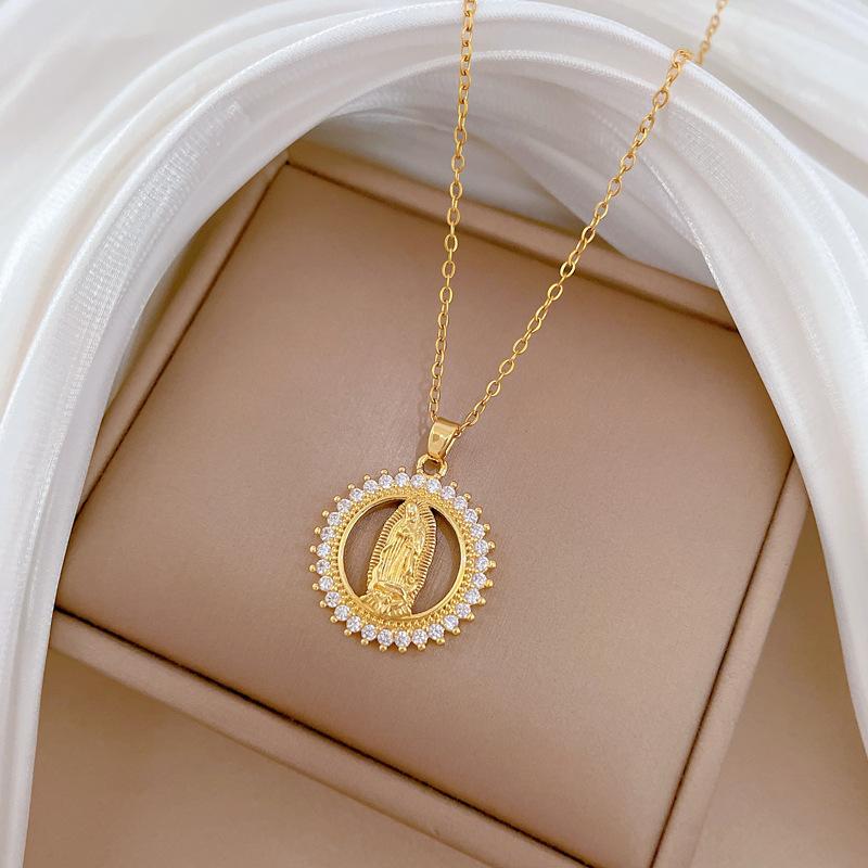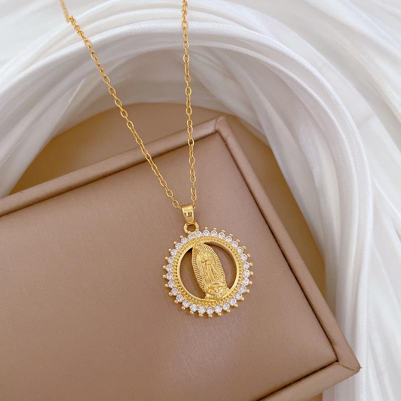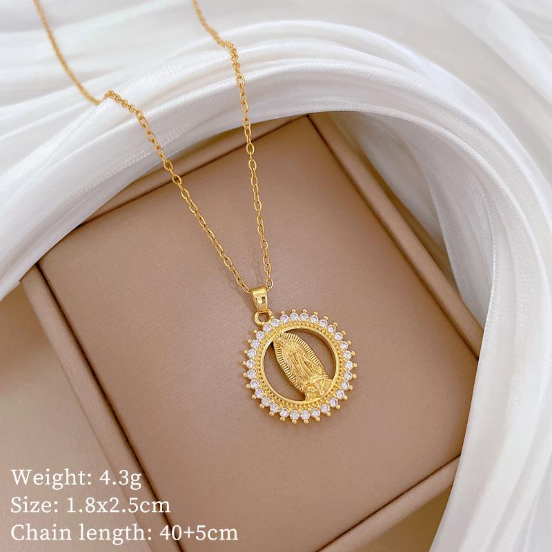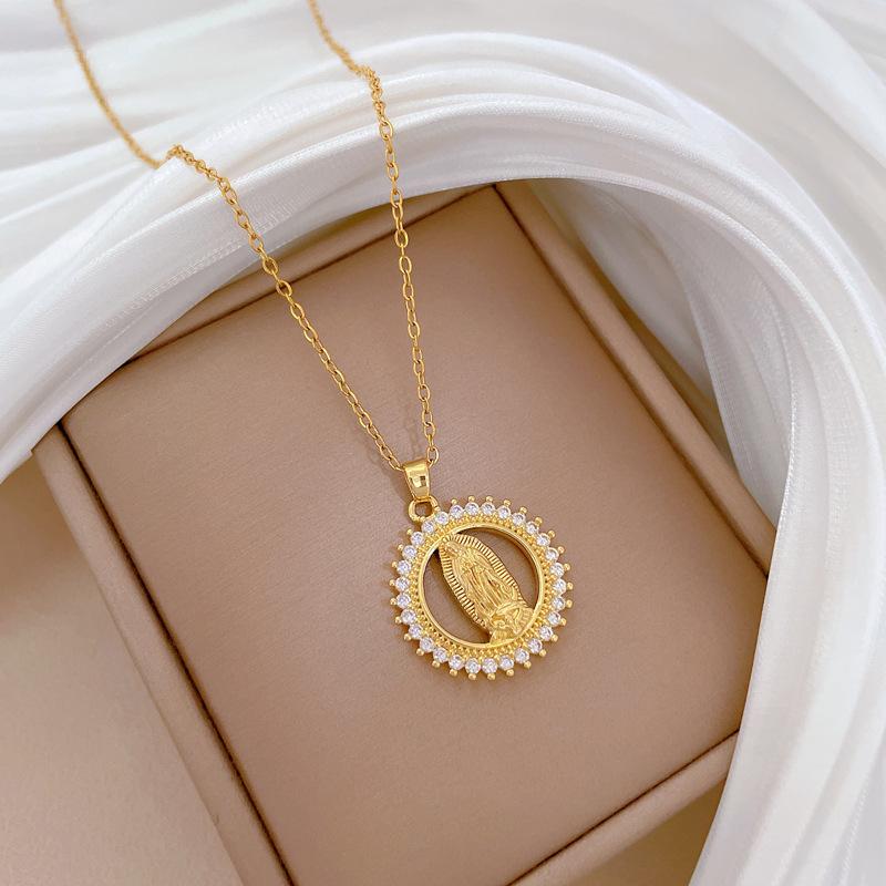 [Aço titânio] Anel Retratos Cheios de Diamante Luz Temperamento de Luxo Lindo Cheio de Colar de Diamantes Corrente de Clavícula Feminina All-match Corrente de Aço Titânio