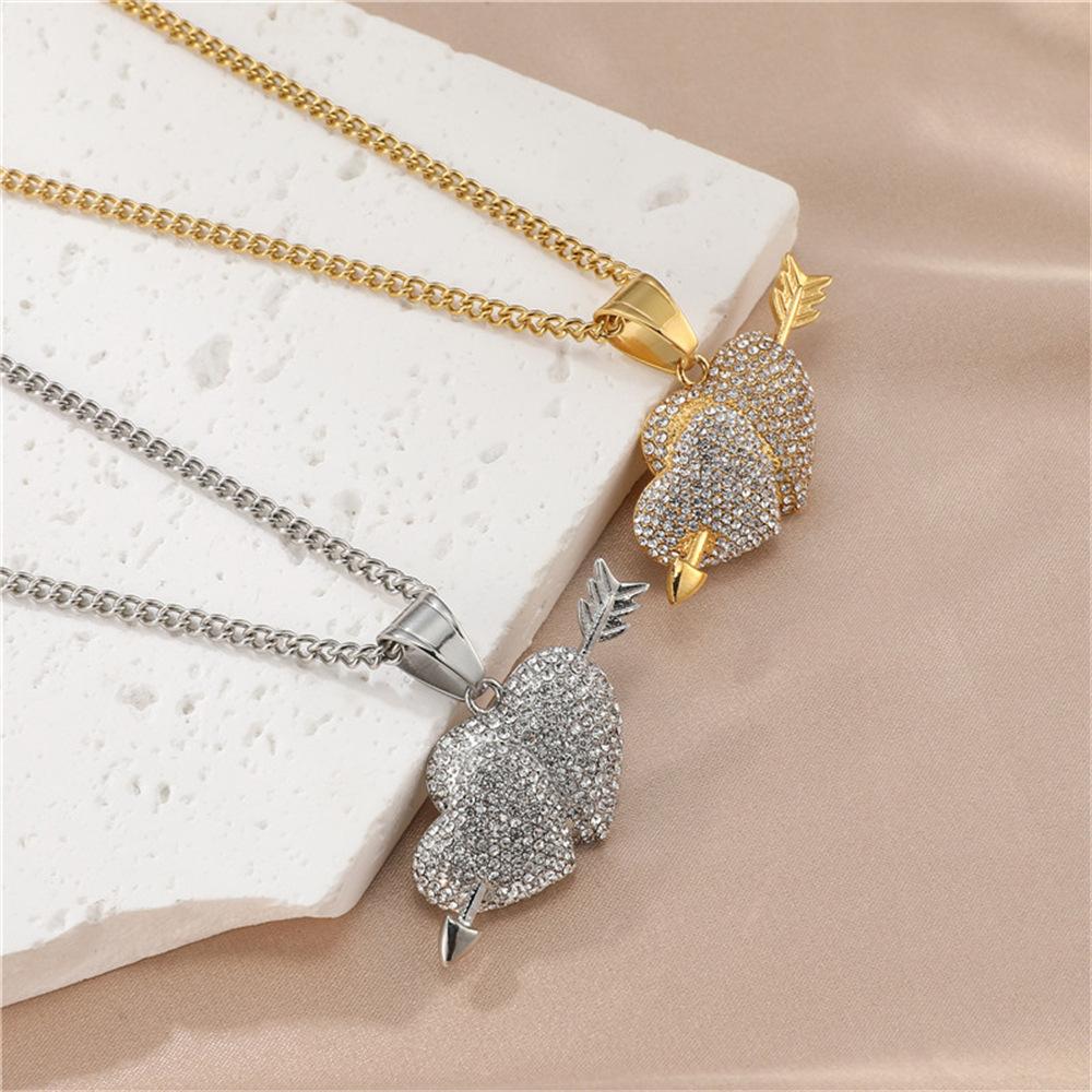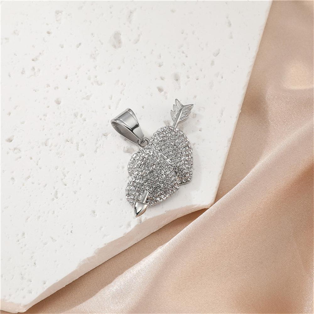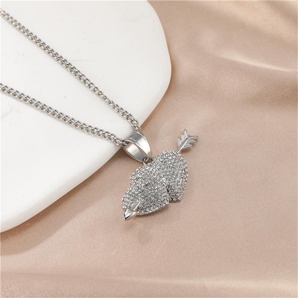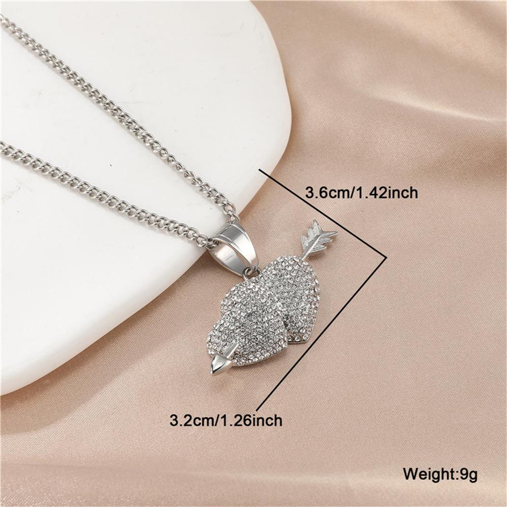 Europeu e americano explosões aço inoxidável broca completa uma flecha através do coração pingente colar cheio zircônio coração acessórios Europeu e americano jóias atacado