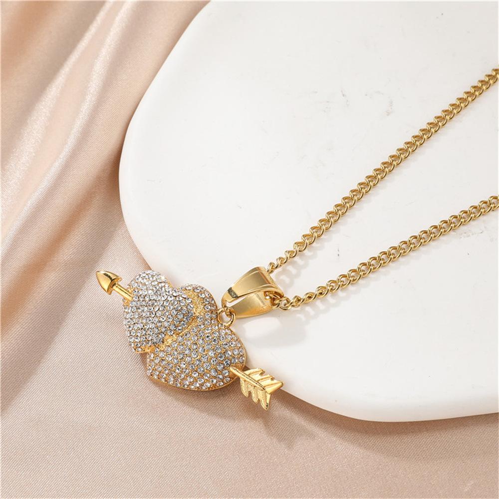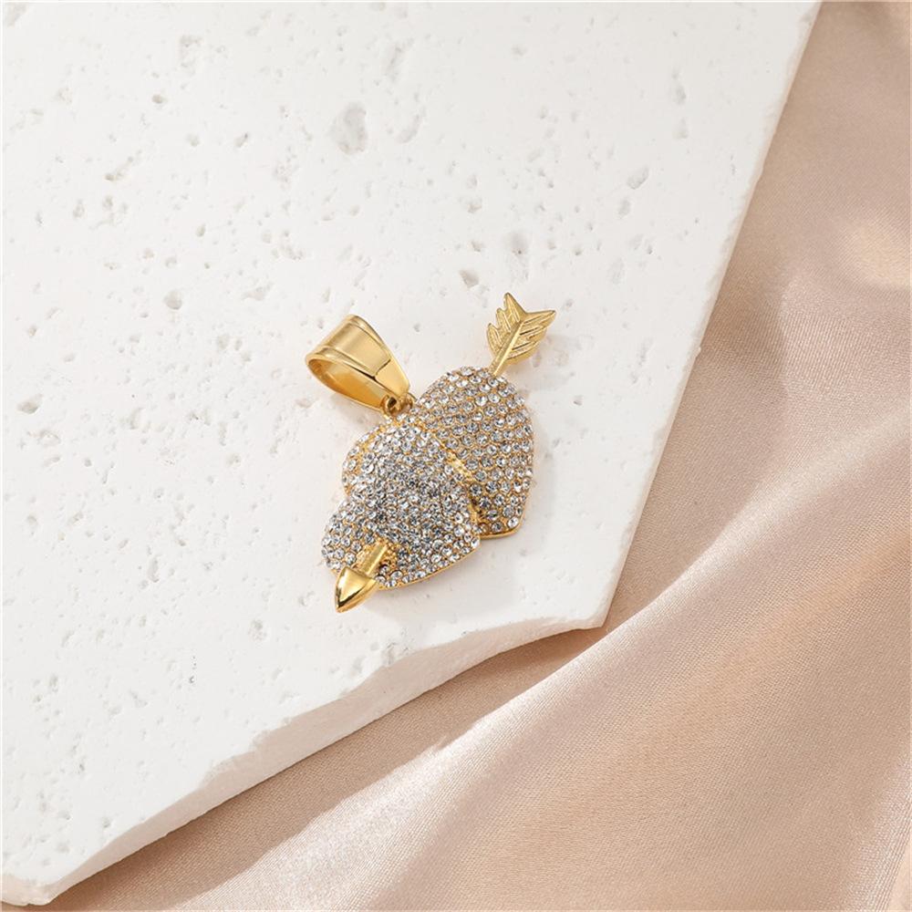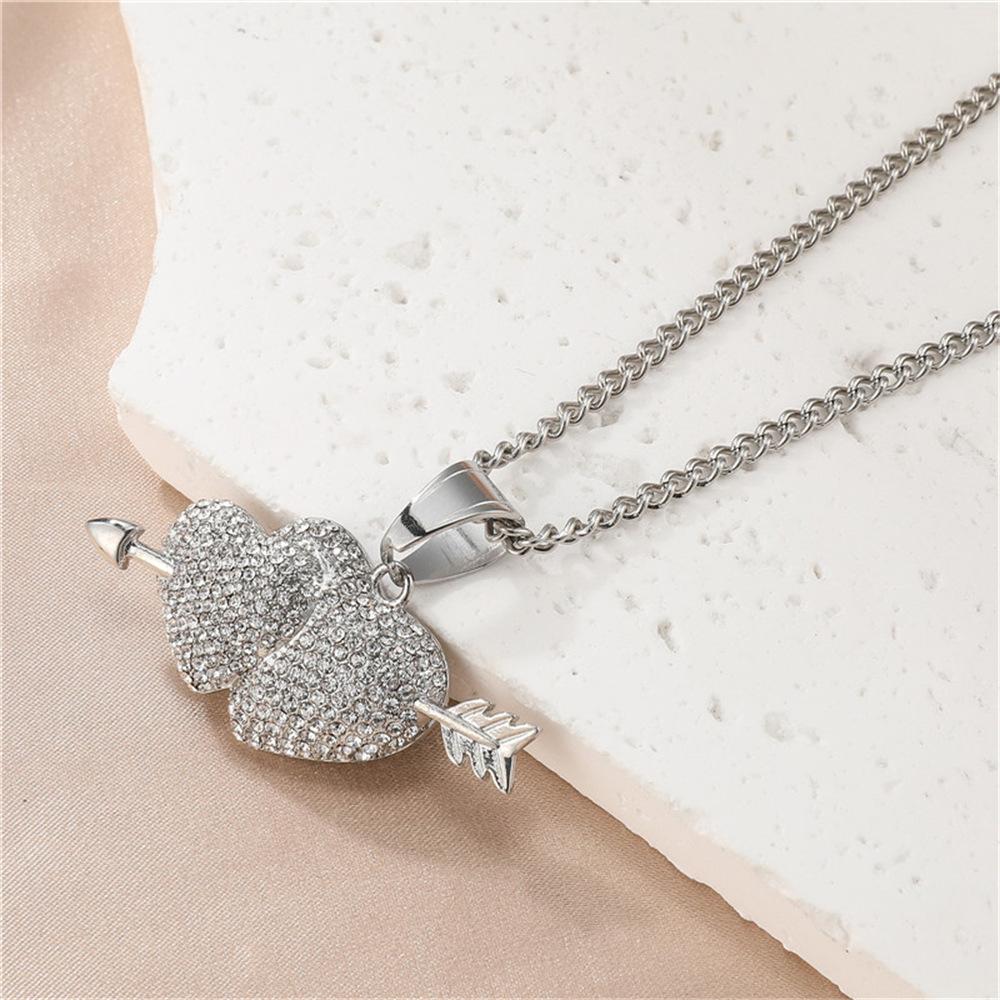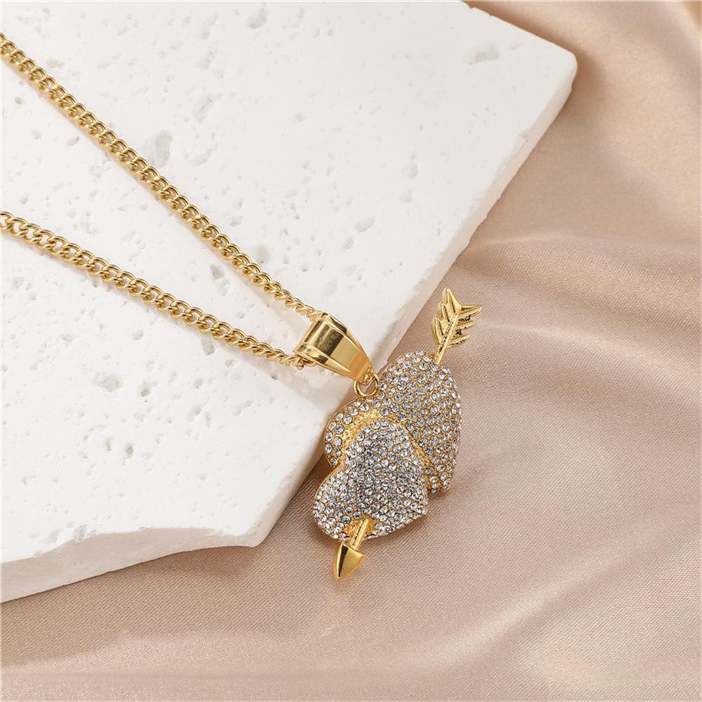 Europeu e americano explosões aço inoxidável broca completa uma flecha através do coração pingente colar cheio zircônio coração acessórios Europeu e americano jóias atacado