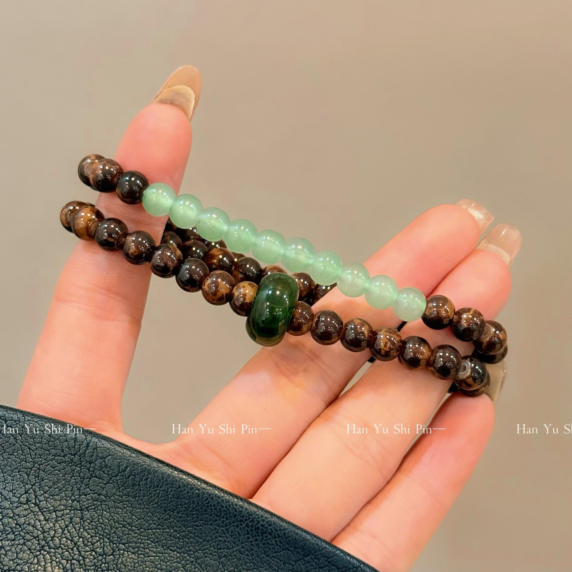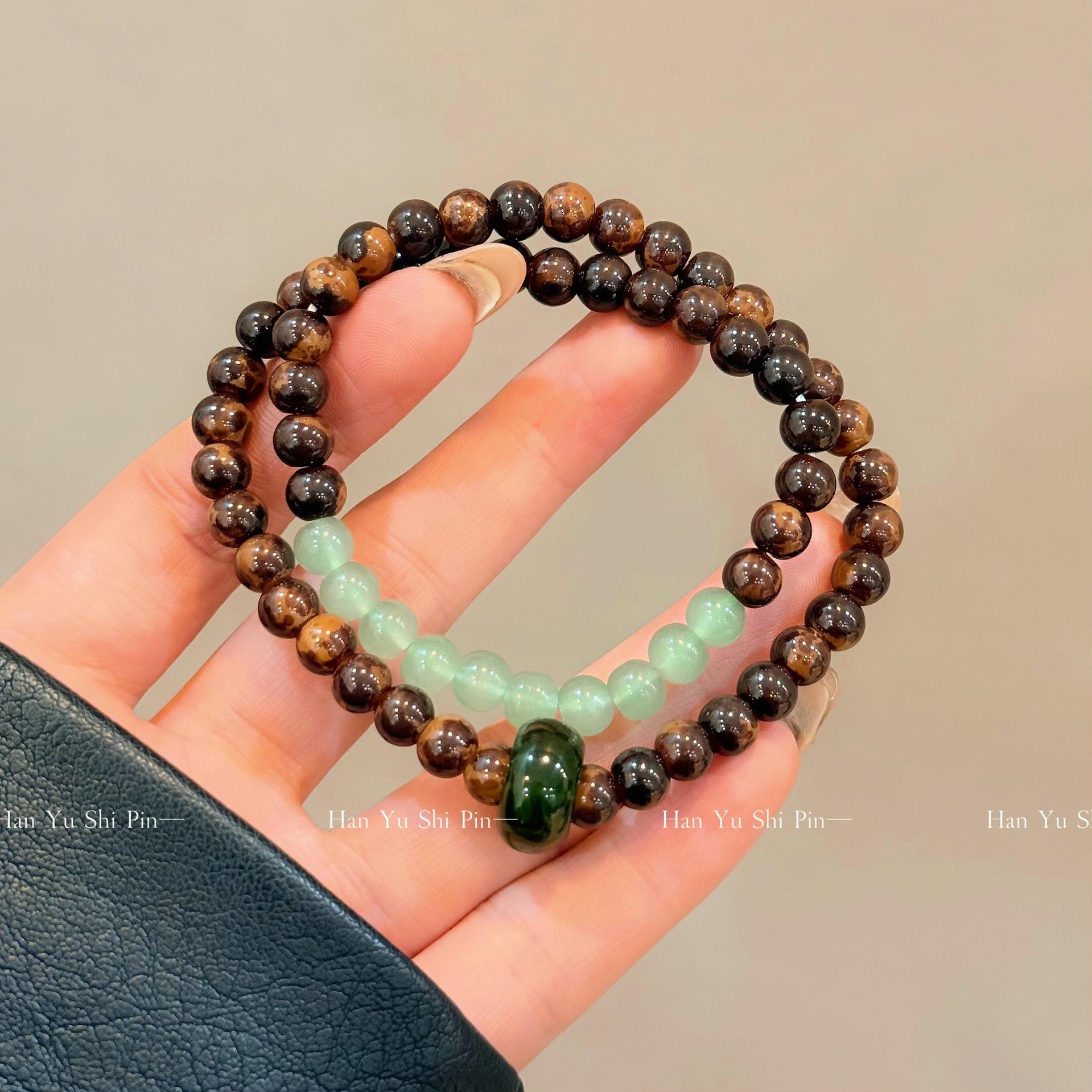 Nova Pulseira de Contas Empilhadas de Camada Dupla de Jade Hetian Imitado Estilo Chinês Retrô Nicho Sofisticado Versátil Zen Elástica